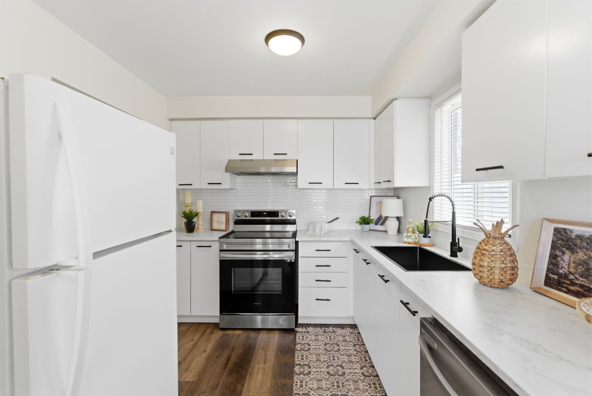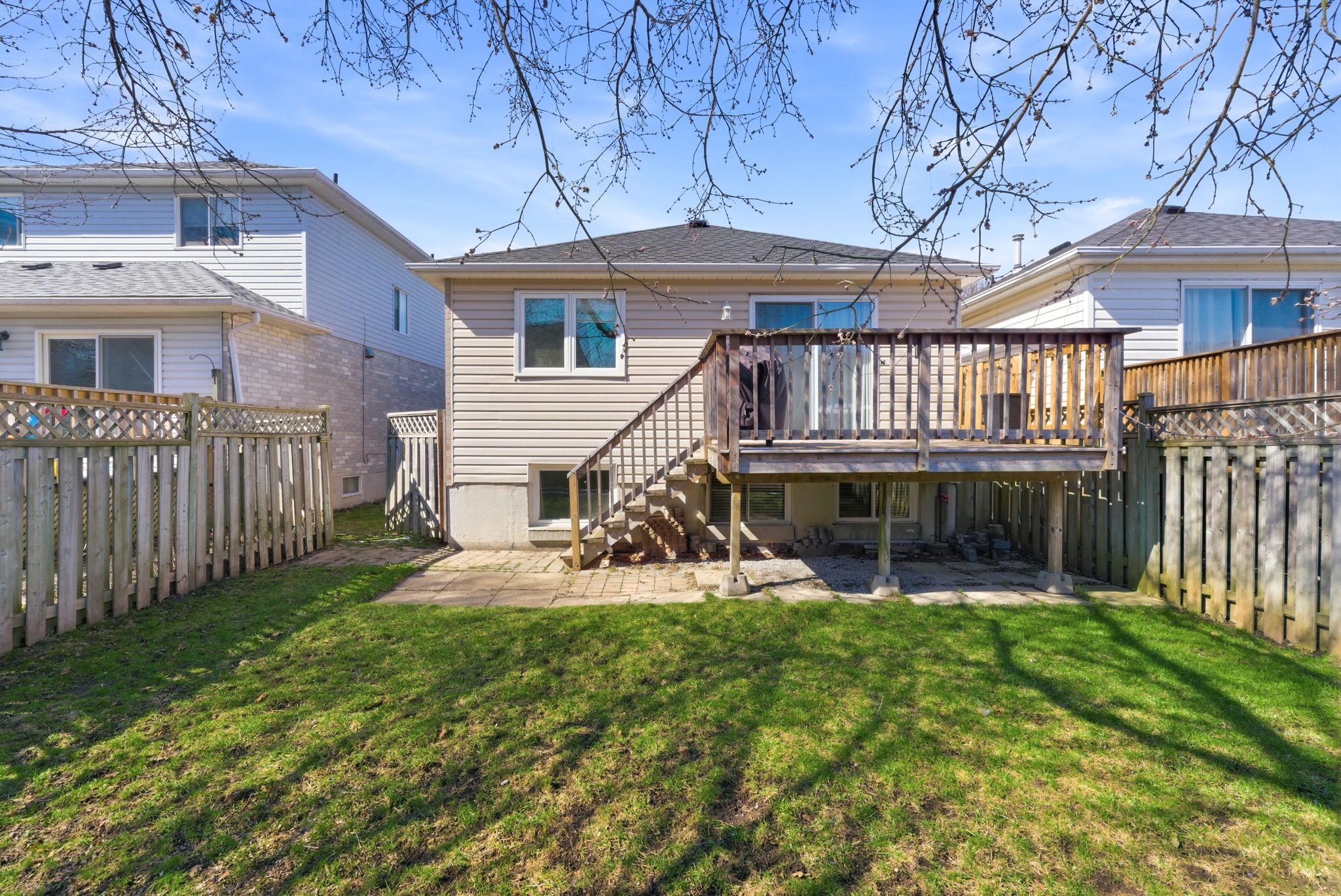 This newly renovated 3 bedroom home is perfect for first time buyers or downsizers. Located in a mature bowmanville neighbourhood, within walking distance to downtown and close to all amenities including shopping, transit, community centre, and highway access. Walk-in to a bright and open main floor layout with newer vinyl flooring throughout and large windows flooding the space with natural light. Featuring a spacious living room accentuated by potlights and wainscotting feature wall, with a walkout to a large deck and fully fenced backyard. The oversized primary bedroom is conveniently located on the main level, with a full 4-piece bath. The eat-in-kitchen provides space for a dining area overlooking the landscaped front yard. Fully finished basement features additional 4-piece bath, laundry, and a bright recreation room with pot lights and above grade windows to the backyard. Access to the garage from the main foyer. No sidewalk to maintain, and ample parking for 3 vehicles in the drive. Recent updates include: a/c (2025), front landscaping (2025), roof (2024), updated kitchen (2023), flooring in basement (2023), pot lights and smooth ceilings (2022).