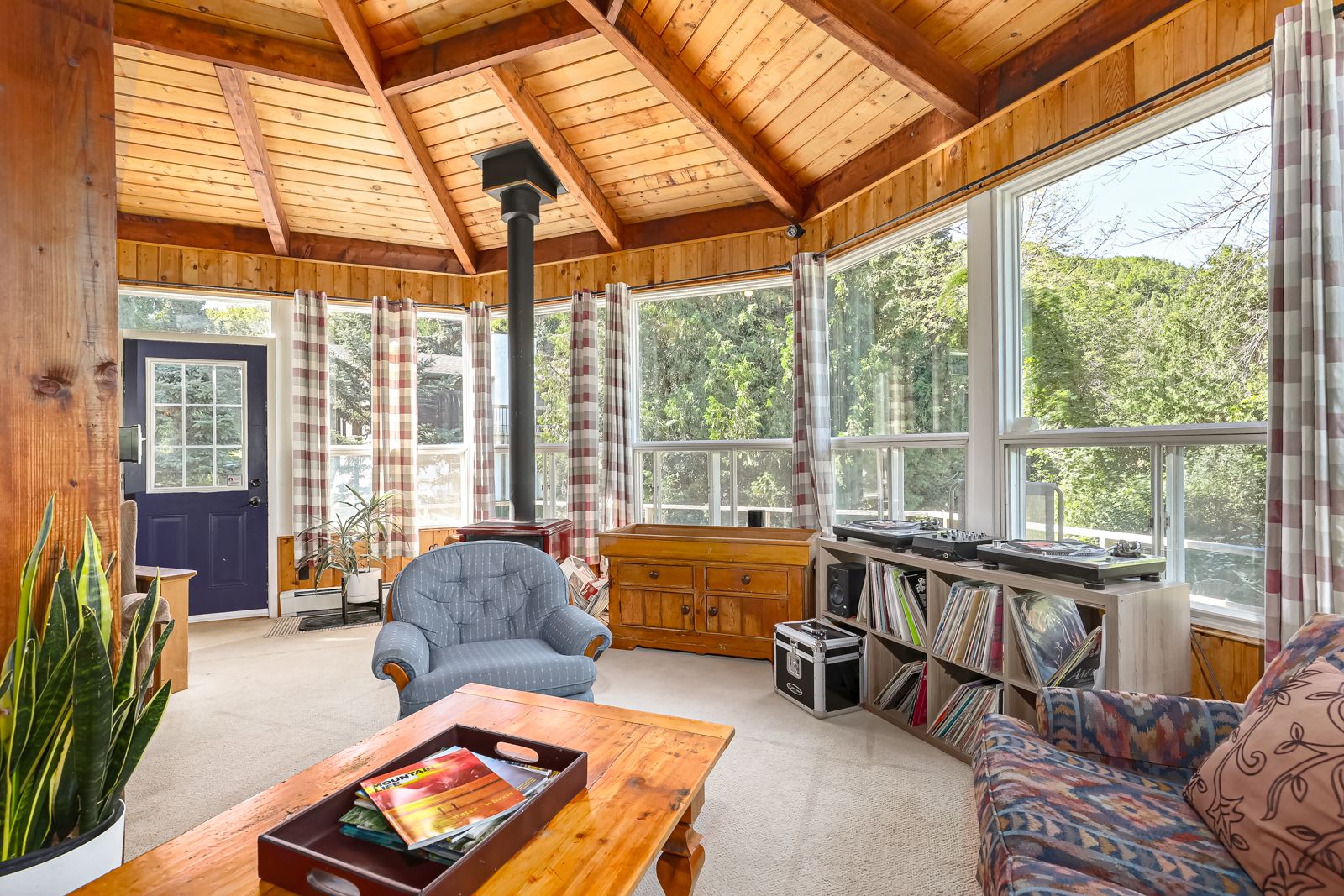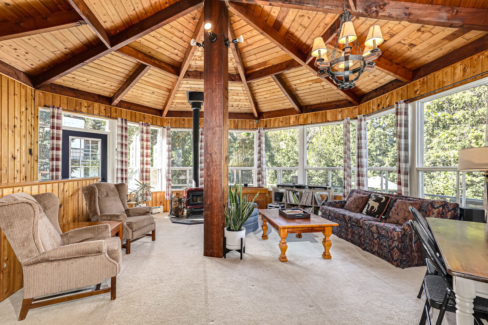 • Cozy woodburning stove for warmth after skiing on chilly days.