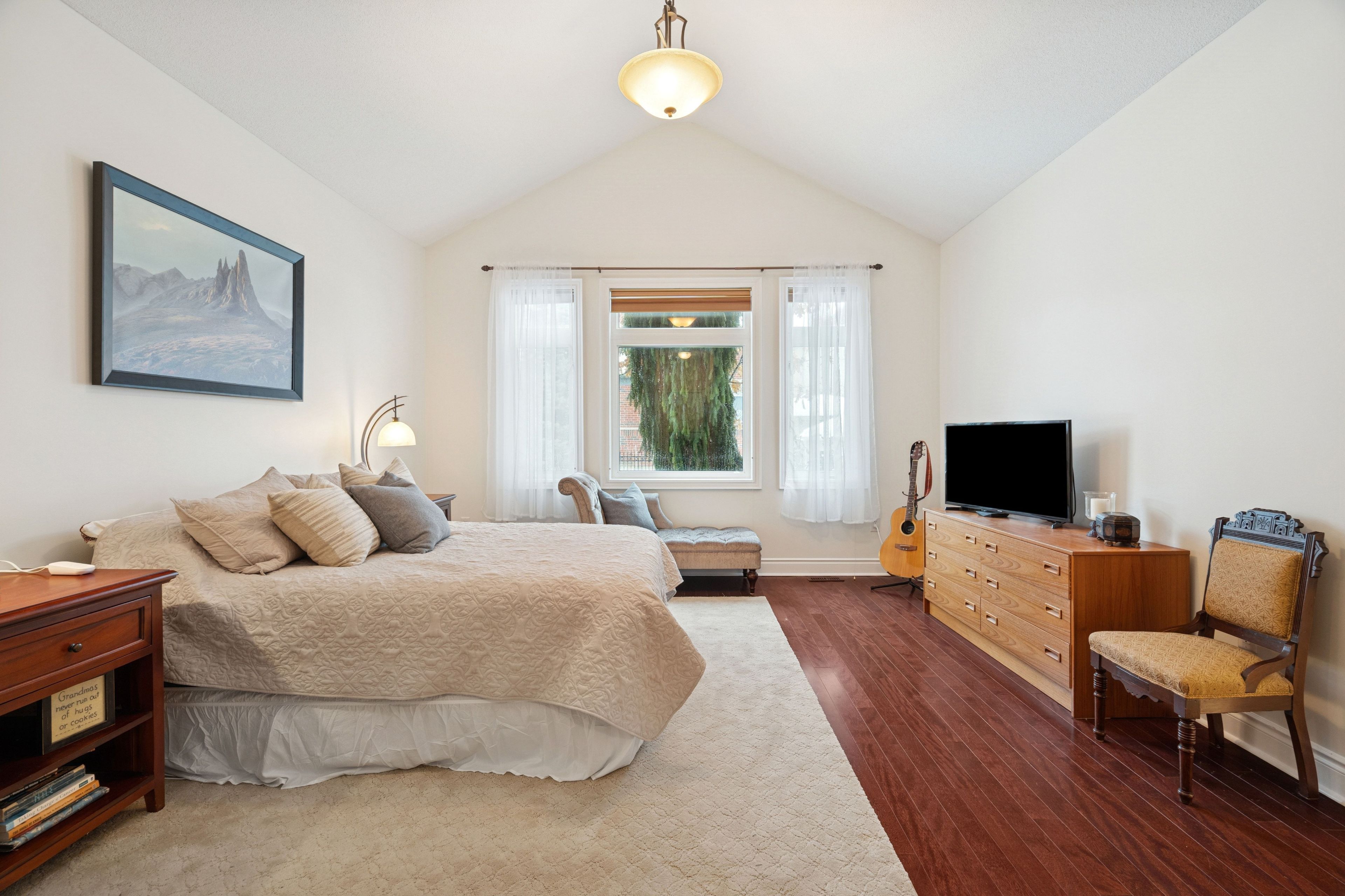 Welcome to this beautifully maintained detached bungaloft in the highly desirable streetsville glen community of brampton. Situated on an impressive 97. 77 x 114. 5 ft lot, this home offers approximately 2,800 sq ft above grade, a double car garage, and parking for up to 6 vehicles. Perfect for growing families who need both space and flexibility. From the moment you step inside, you are greeted by soaring ceilings, oversized windows, and rich hardwood flooring throughout the main living areas. The formal dining room and dedicated home office offer ideal spaces for hosting family dinners and working from home comfortably. The kitchen is designed for everyday family living, featuring granite countertops, abundant cabinetry, generous counter space, and a bright breakfast area with a walkout to the backyard. It overlooks the living room, where a stunning fireplace framed by large windows creates a warm and welcoming atmosphere. The main floor primary suite offers convenience and privacy, complete with hardwood flooring, two walk-in closets, and a 4-piece ensuite bathroom. Two additional bedrooms and a full 4-piece bathroom are also located on the main level, along with a main floor laundry room. Upstairs, the loft provides a private retreat with a spacious bedroom, vaulted ceiling, large window, and its own 4-piece bathroom. The basement includes a finished exercise room and extensive unfinished space ready for your personal touch. Outside, the expansive backyard offers exceptional space for kids to play, summer barbecues, or future landscaping dreams. Located in the sought-after streetsville glen neighbourhood, this home is close to parks, walking trails, schools, shopping, and major commuter routes. It offers the perfect balance of peaceful residential living and everyday convenience. If you are searching for a detached bungaloft in brampton with a main floor primary bedroom, large lot, and flexible layout for a growing family, this is a must-see.
