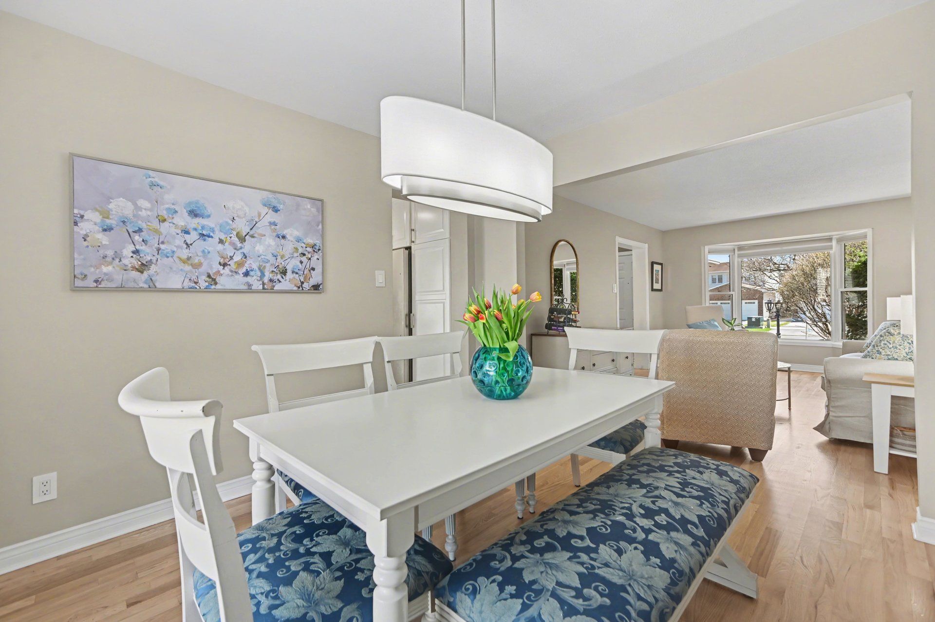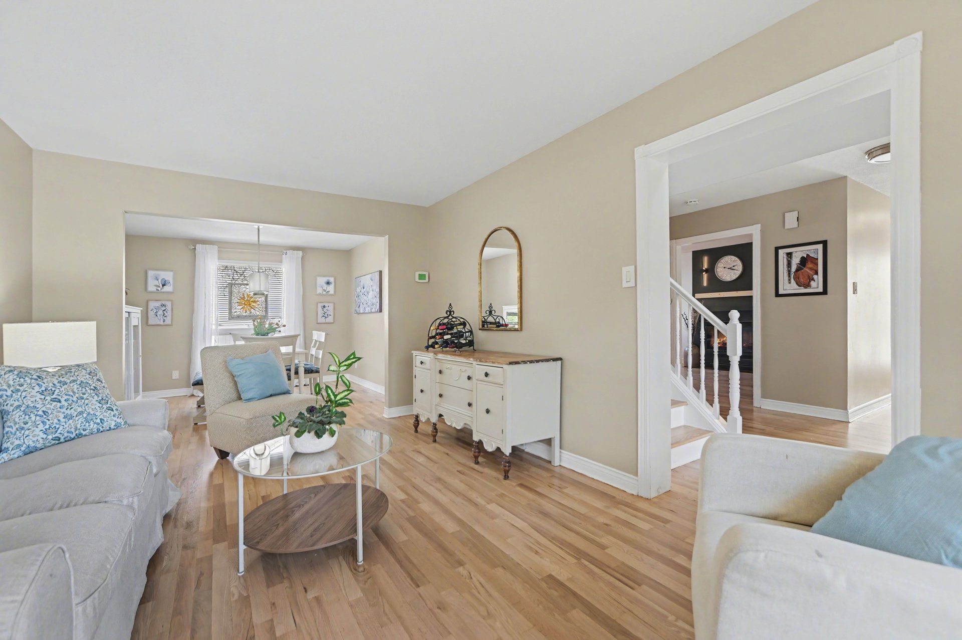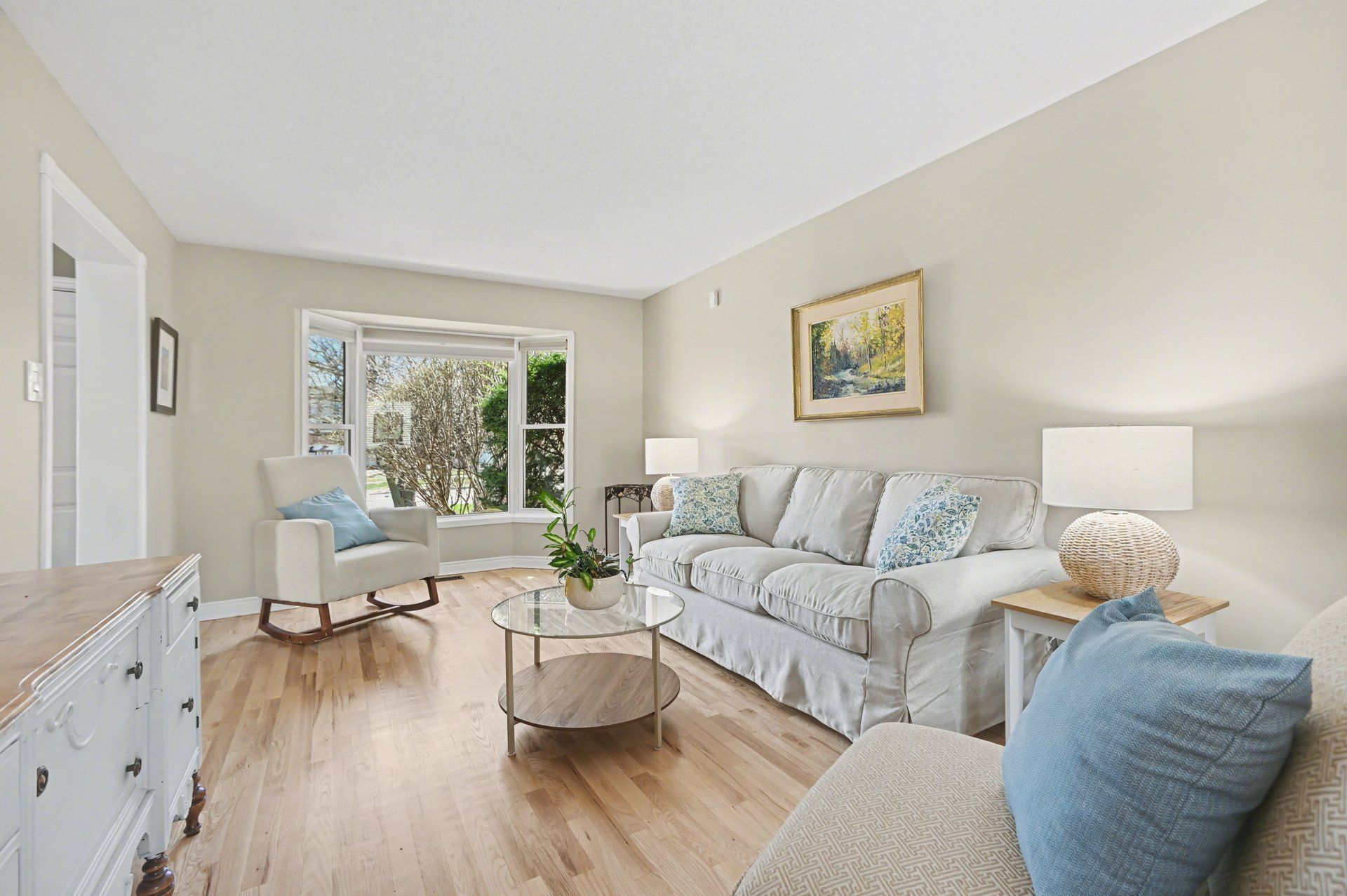 • Refinished hardwood floors and fresh neutral paint create a welcoming atmosphere.