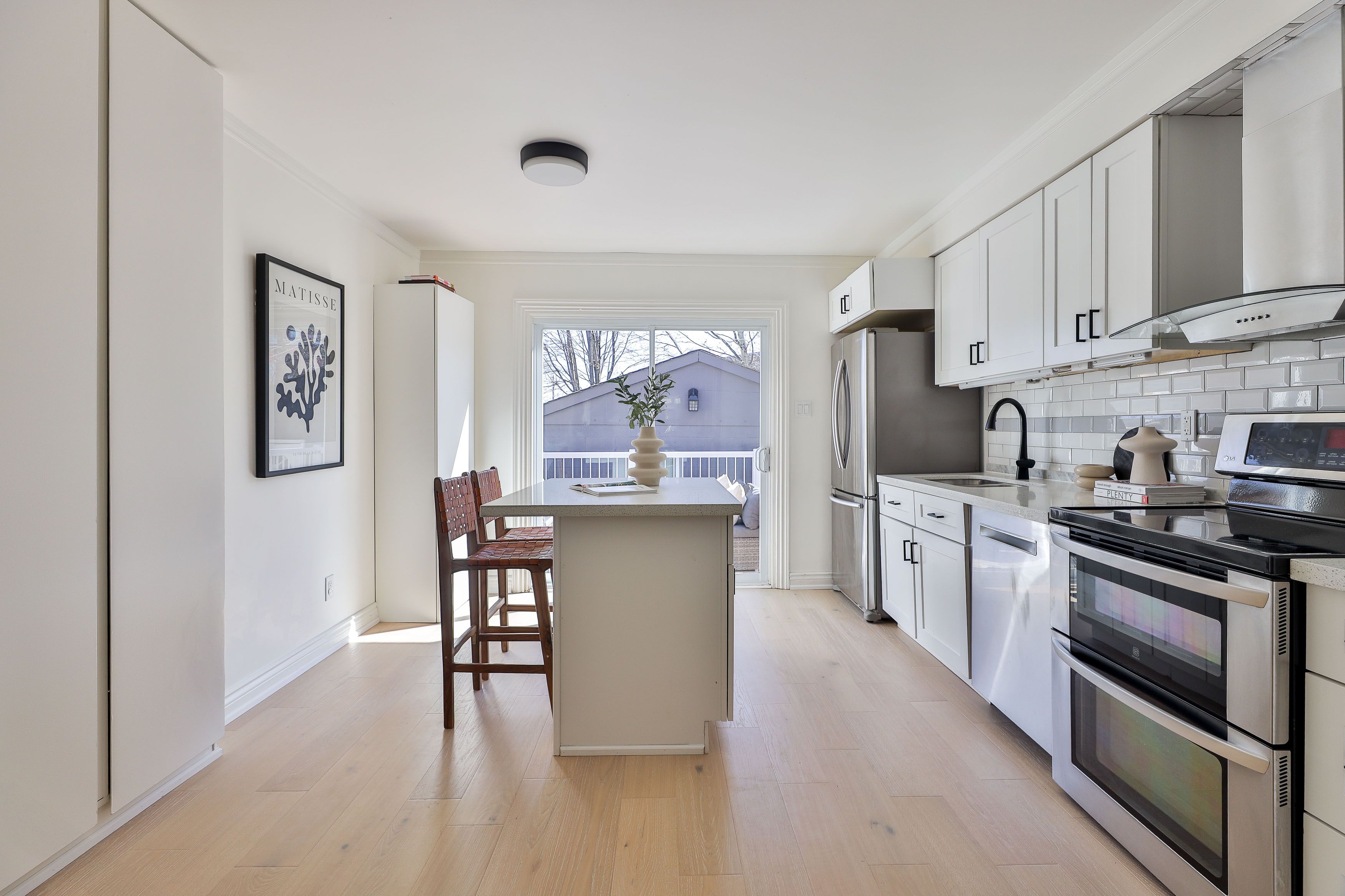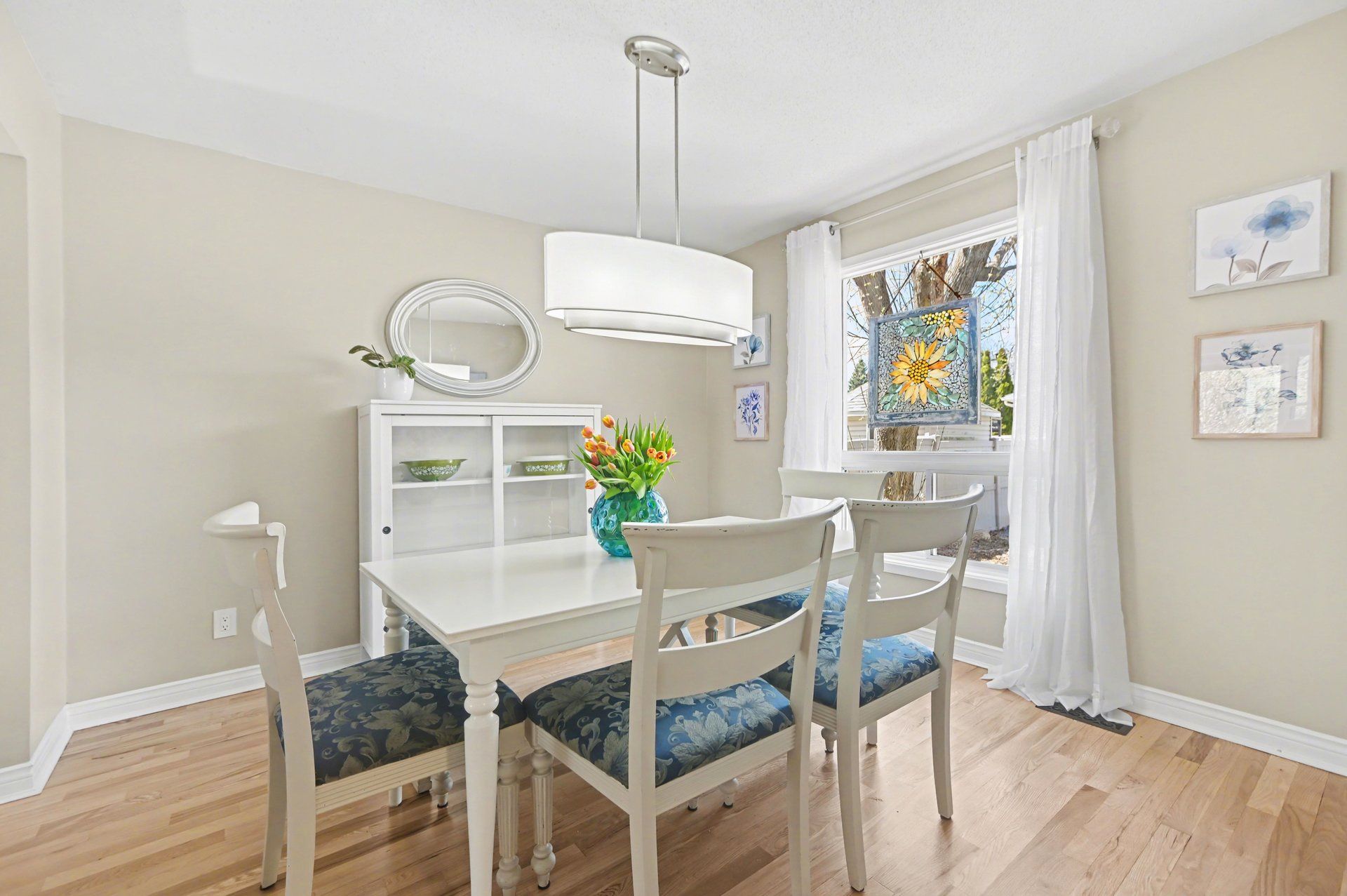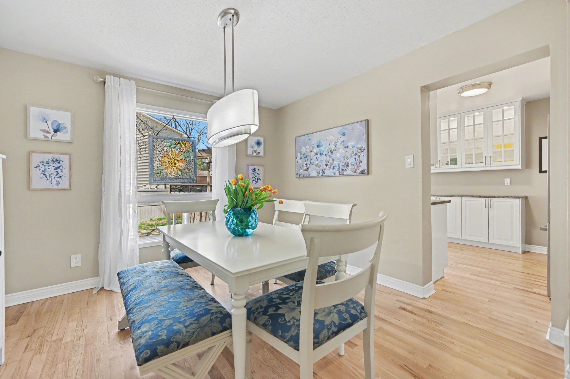 • Refinished hardwood floors and fresh neutral paint create a welcoming atmosphere.
