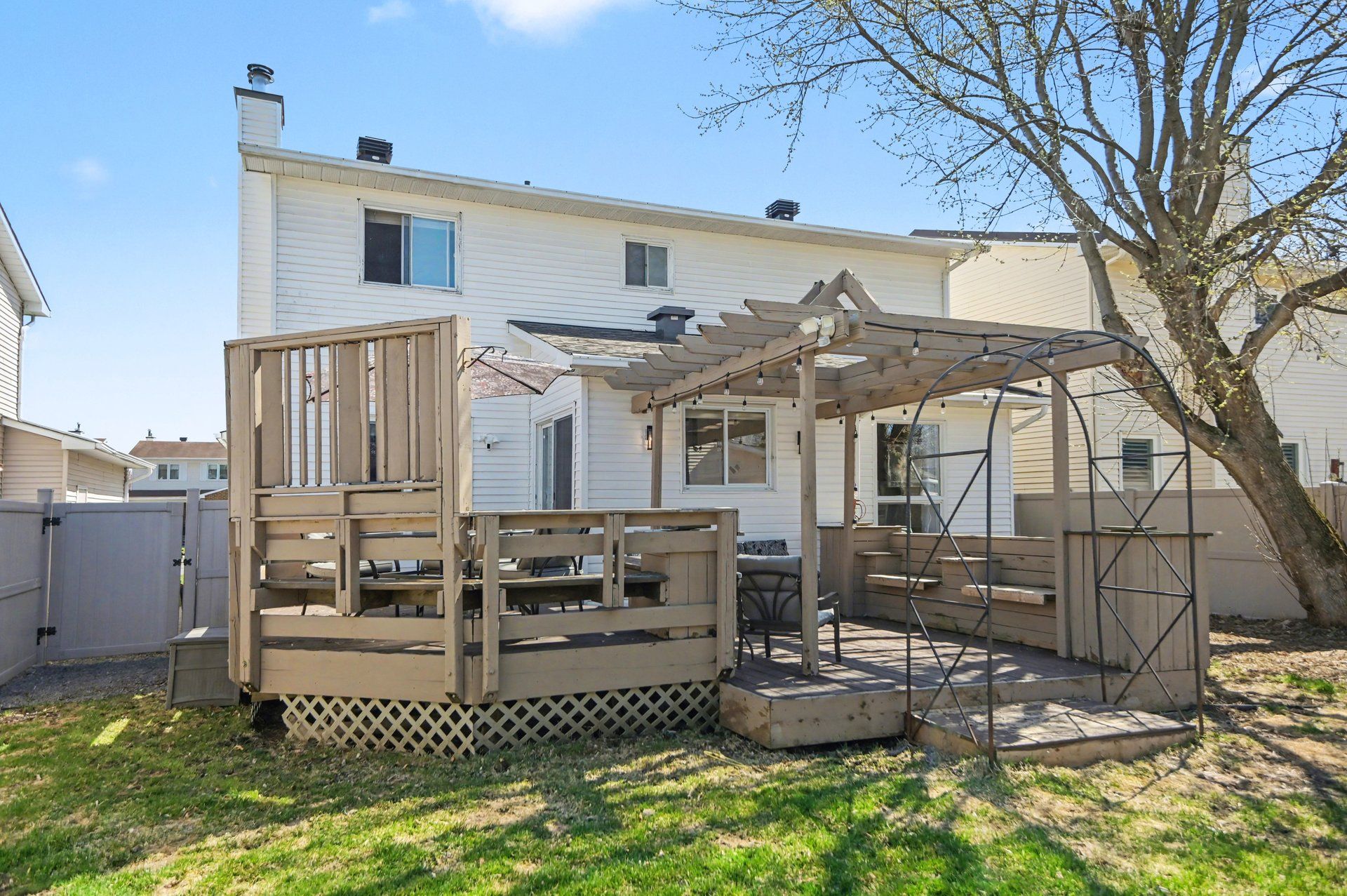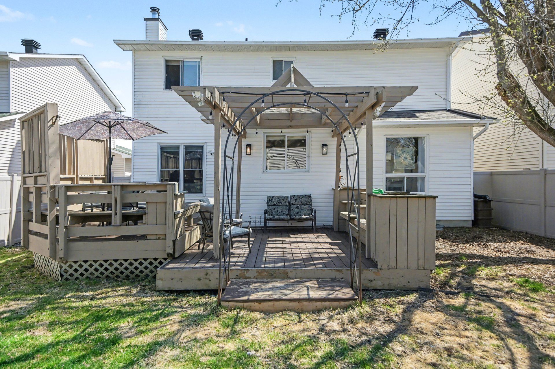 • Private backyard with a two-tier deck perfect for summer BBQs.