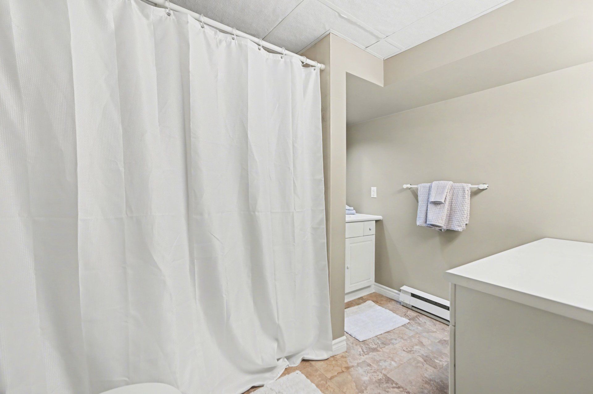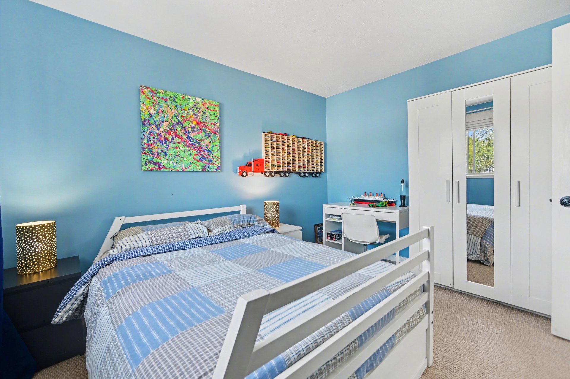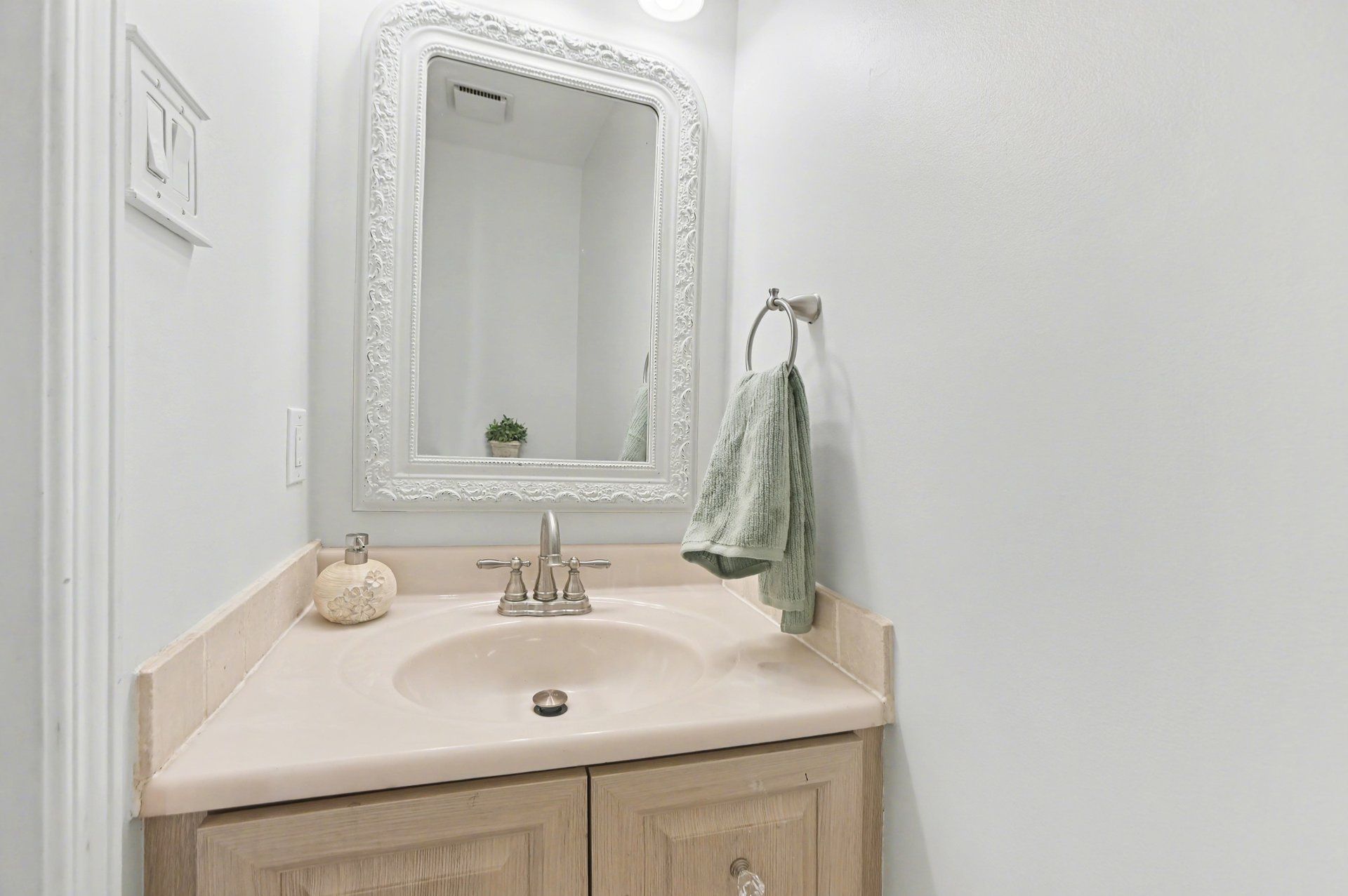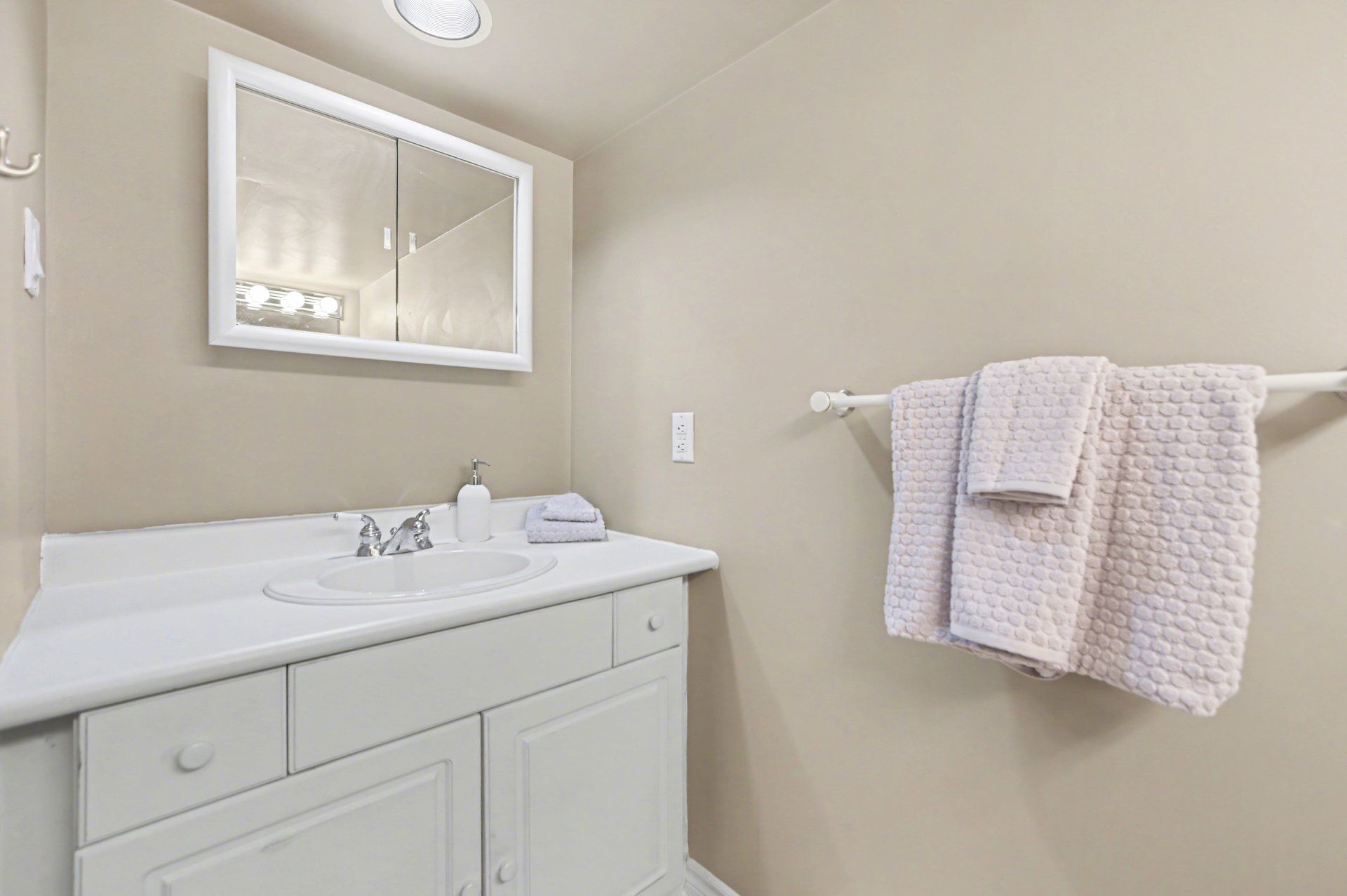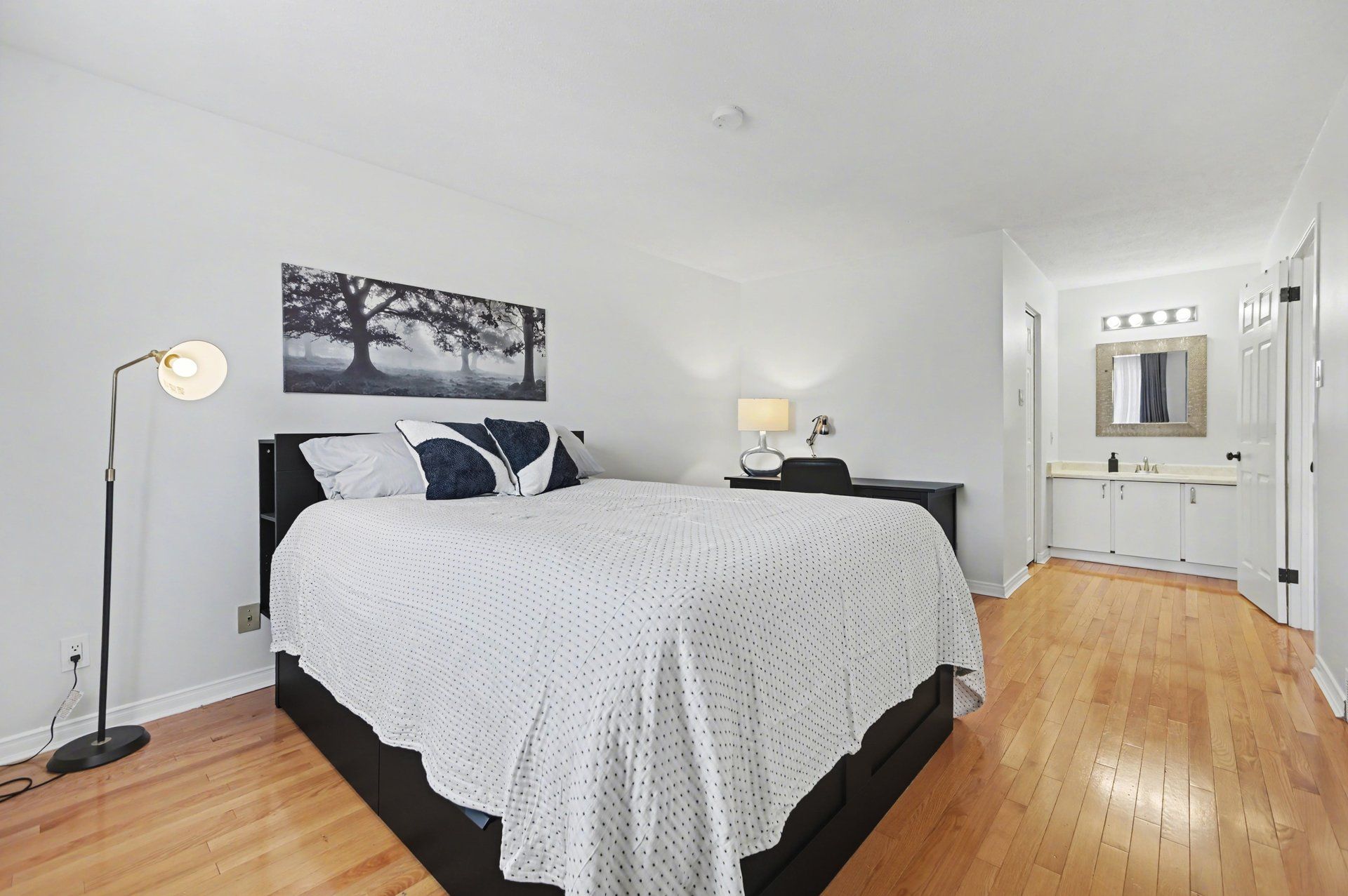 • Large master bedroom with vanity, sink, and walk-in closet for convenience.