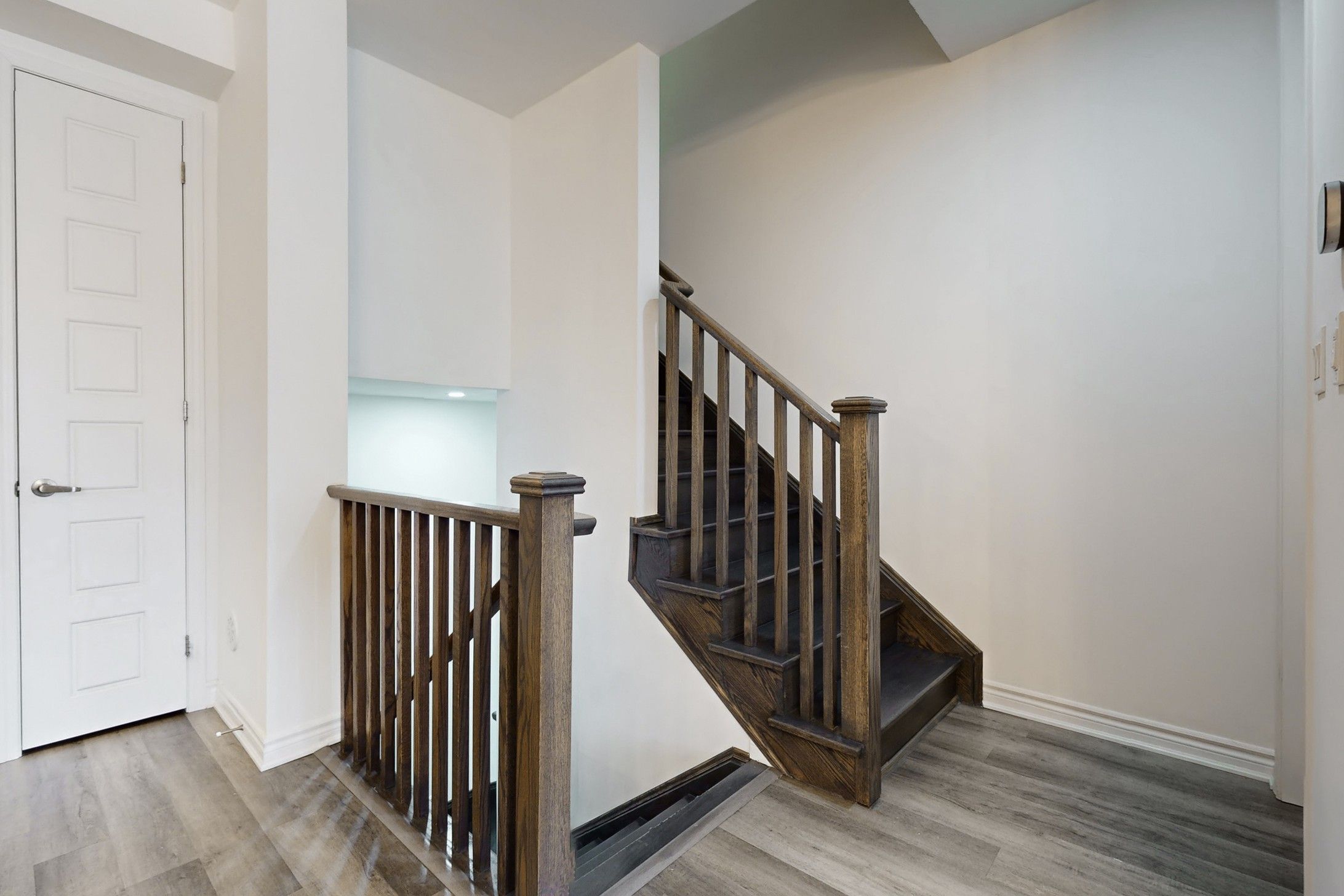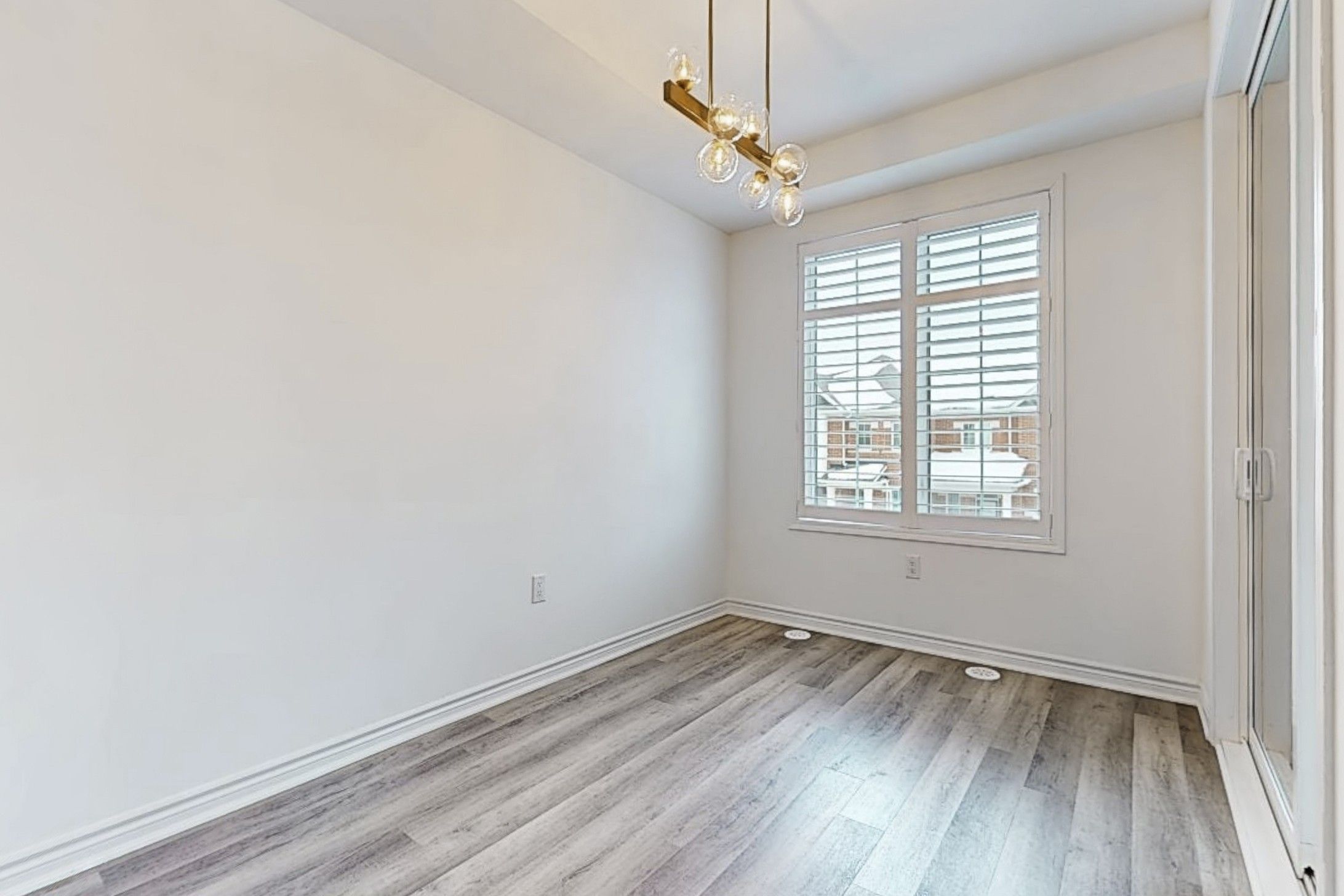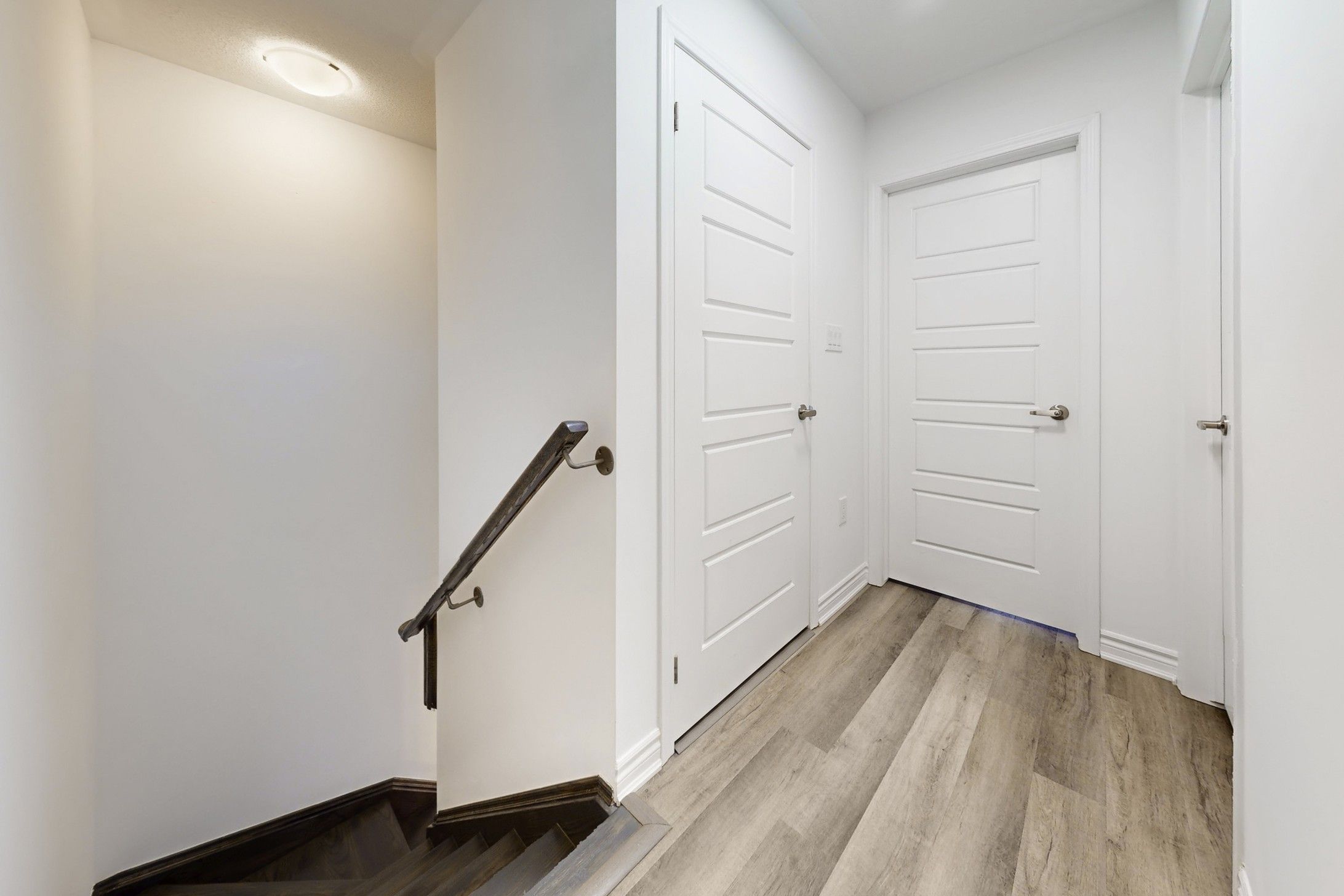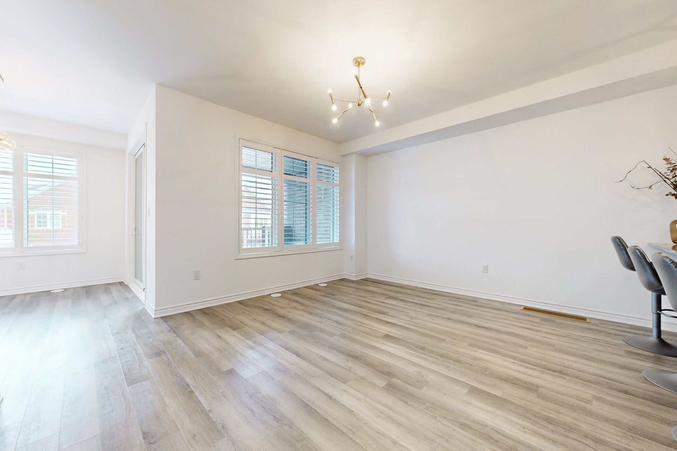 Experience unparalleled luxury in this executive townhouse. This fully freehold townhouse with an all-brick and stone elevation, has great curb appeal. Offering 2 bedrooms, 2. 5 baths, and an oversized 1-car garage, deep driveway with no sidewalk & parking for two cars in the driveway, this property exudes sophistication and style. From the welcoming foyer with upgraded ceramic tiles, a coat closet to the open-concept second level, every detail has been carefully crafted. The modern kitchen features upgraded cabinets, granite countertops, backsplash, breakfast bar, pendant lights and stainless steel appliances, ideal for culinary enthusiasts. Entertain effortlessly in the spacious open concept family room. Separate dining room which opens onto a covered balcony with a gas line for bbq hookup, perfect for outdoor dining or morning coffee. Upstairs, the lavish primary suite features a large walk-in closet, 4pc full ensuite bathroom and walk-out to a balcony. The second suite has a large walk-in closet and 3pc ensuite bathroom. Laundry conveniently located on the 3rd floor with upgraded full size machines. This home is upgraded throughout with tall bathroom vanities, stone counters, ceramic tiles, modern laminate floors, modern light fixtures and built-in storage cabinets. Access door from house to garage and smart auto garage door opener installed. Ideally located near amenities, schools, library, shopping, parks and easy access to hwy 401. Don't miss the chance to make this exceptional home your own.