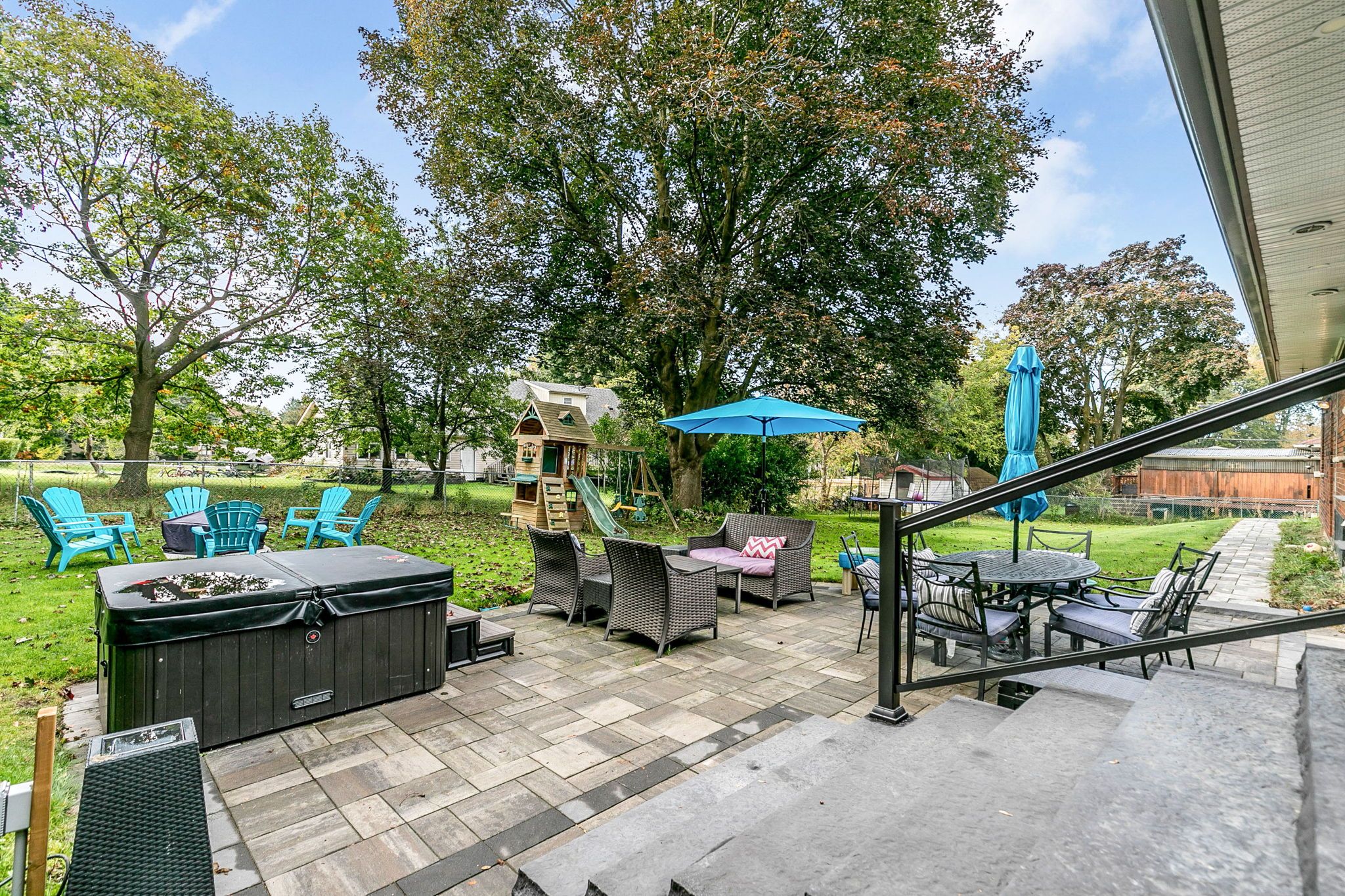 Stunning fully renovated custom bungalow in eg's most prestigious sharon community! Welcome to this one-of-a-kind, fully renovated custom bungalow situated on a premium 122' x 123' landscaped, pool-sized lot. With over 3,000 sq ft of beautifully finished living space and $250k+ in recent upgrades, this home offers the perfect blend of luxury, comfort, and functionality. Step inside through the charming covered porch into a spacious foyer that opens into the heart of the home. The show-stopping kitchen features a massive 7-foot quartz island, sleek countertops, gas stove, double oven and a stylish beverage centre-seamlessly connecting to a generous formal dining room designed to host the entire family. The inviting living room impresses with vaulted ceilings, pot lights, a cozy gas fireplace, and oversized front-facing windows that flood the space with natural light. The main floor is finished with wide plank hardwood flooring and upgraded trim throughout! The fully finished basement with separate entrance offers incredible versatility, featuring a guest bedroom, full bathroom, office, gym, recreation room, and ample storage-all complemented by bright above-grade windows. Step outside to your private backyard oasis, complete with custom hardscaping and a hot tub, perfect for relaxing or entertaining. Unbeatable location-just steps to scenic trails, multiple parks, recreation centre, go train, top-rated schools, and convenient connections to both highways 400 & 404. New primary bathroom '18. New kitchen reno '17. New windows '17. New roof '17. New flooring '17. New s/s appliances '17. New washer & dryer. New eaves, soffits, fascia '17. New custom interlock '22. New asphalt driveway '25. Huge driveway w no sidewalk. Seperate entrance to basement.