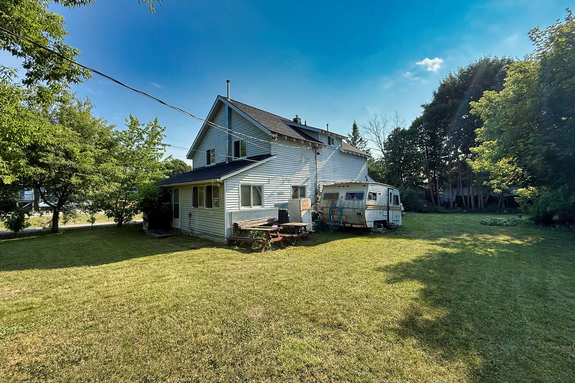 • Oversized lot with two road entrances and ample parking.