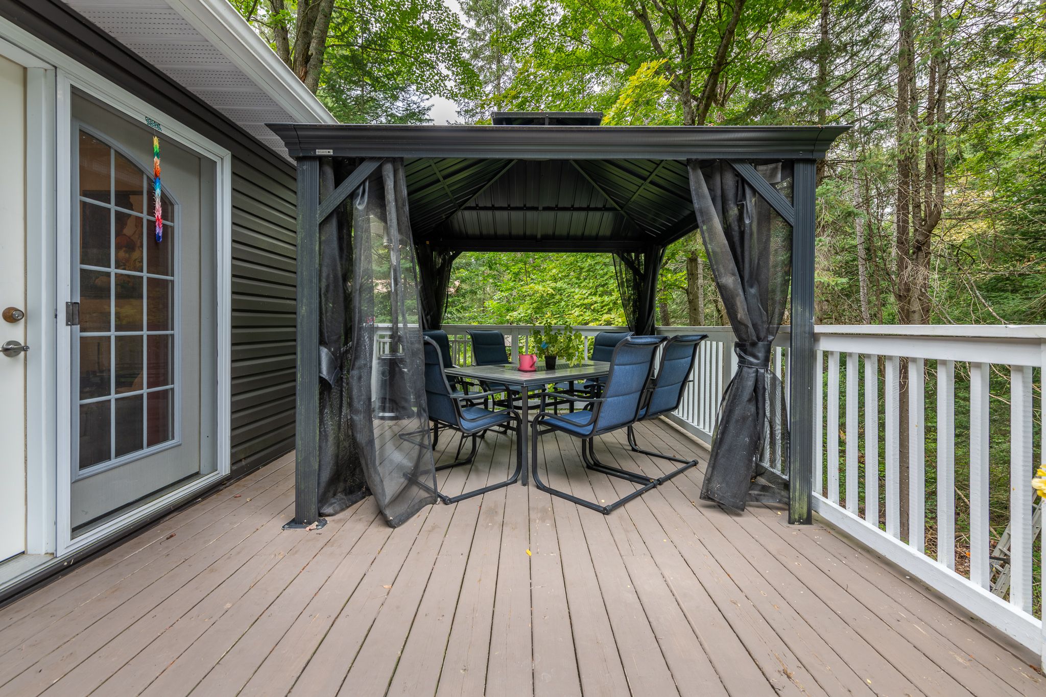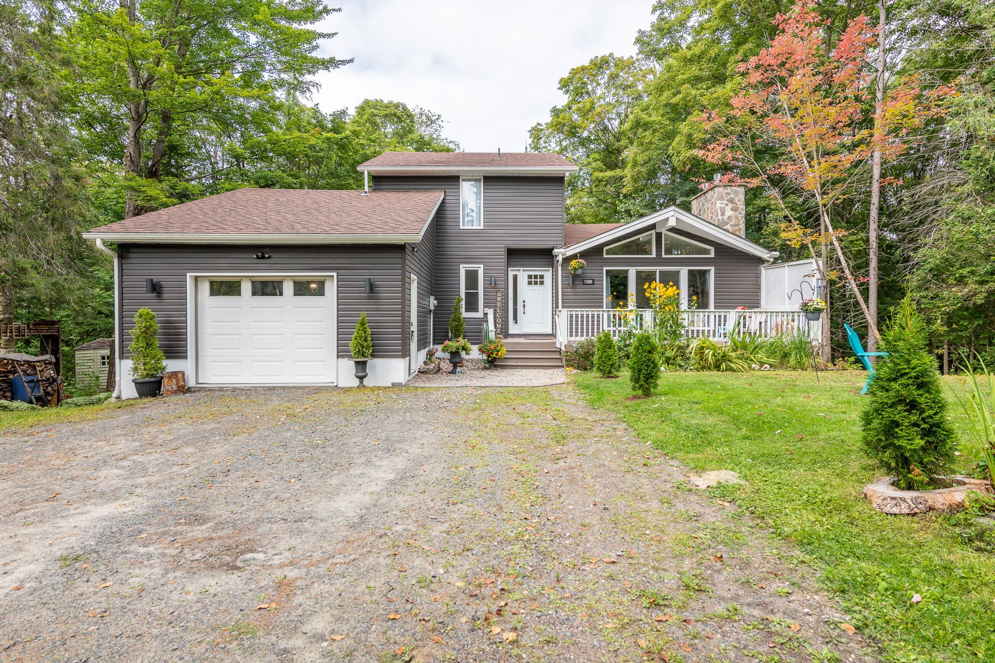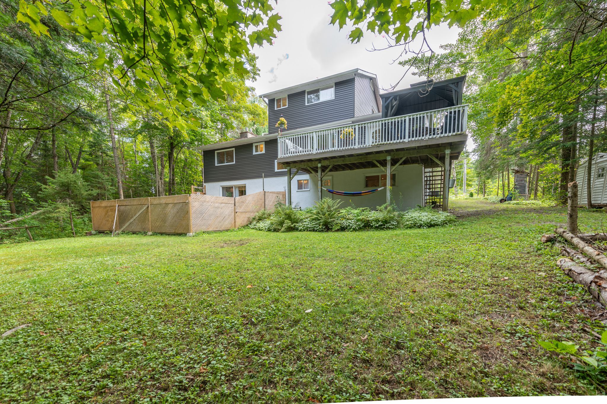 Sought after sunlit and spacious 4 bedroom plus den, 3+1 bathroom is an ideal residence in the heart of hidden valley community. Ski to the hill or stroll to the fabulous 300'+ beachfront on prestigious pen lake with a private park featuring beach volleyball, bathroom, picnic tables, space to play or lounge as part of your membership in the hidden valley property owners association. Great interior design with large sunlit primary rooms. The sunlit living room has vaulted ceilings, muskoka stone gas fireplace and sliding patio doors to front deck. Hardwood flooring in beautiful country size kitchen including newer up to the minute white cabinetry with glass doors, eat at counter, large window with forest views over your very private back yard. Lovely hardwood floors continue into the dining and sitting room with french style doors to large rear deck ideal for barbequing, entertaining featuring an included gazebo. Main level primary bedroom with 3 piece ensuite is privately positioned in the residence away from other living spaces. 2nd level features 2 bright and spacious bedrooms and 4 pc bath. Lower level has a large family room with a gas fireplace and a fun party room with a potential wet bar and large patio door to another rear deck and patio. 1 bedroom plus den and an up to date 4 pc bathroom walk out door to the rear yard completes the lower level. Recreational residence is a pleasure to view with many upgrades including the septic bed was updated in 2018 (rated for 3 bdrms), gas furnace new in 2024, new electrical panel & some newer windows. The home boasts maintenance free vinyl siding, absolute private rear yard with level space for kids, gardens, potential for swimming pool, set back nicely from the street, attached single car garage. Located in one of the best areas for year round active living with bike trails, ski hill, beach, resorts, restaurants, golf all within walking distance or a short drive. Only 10 minutes to downtown huntsville.