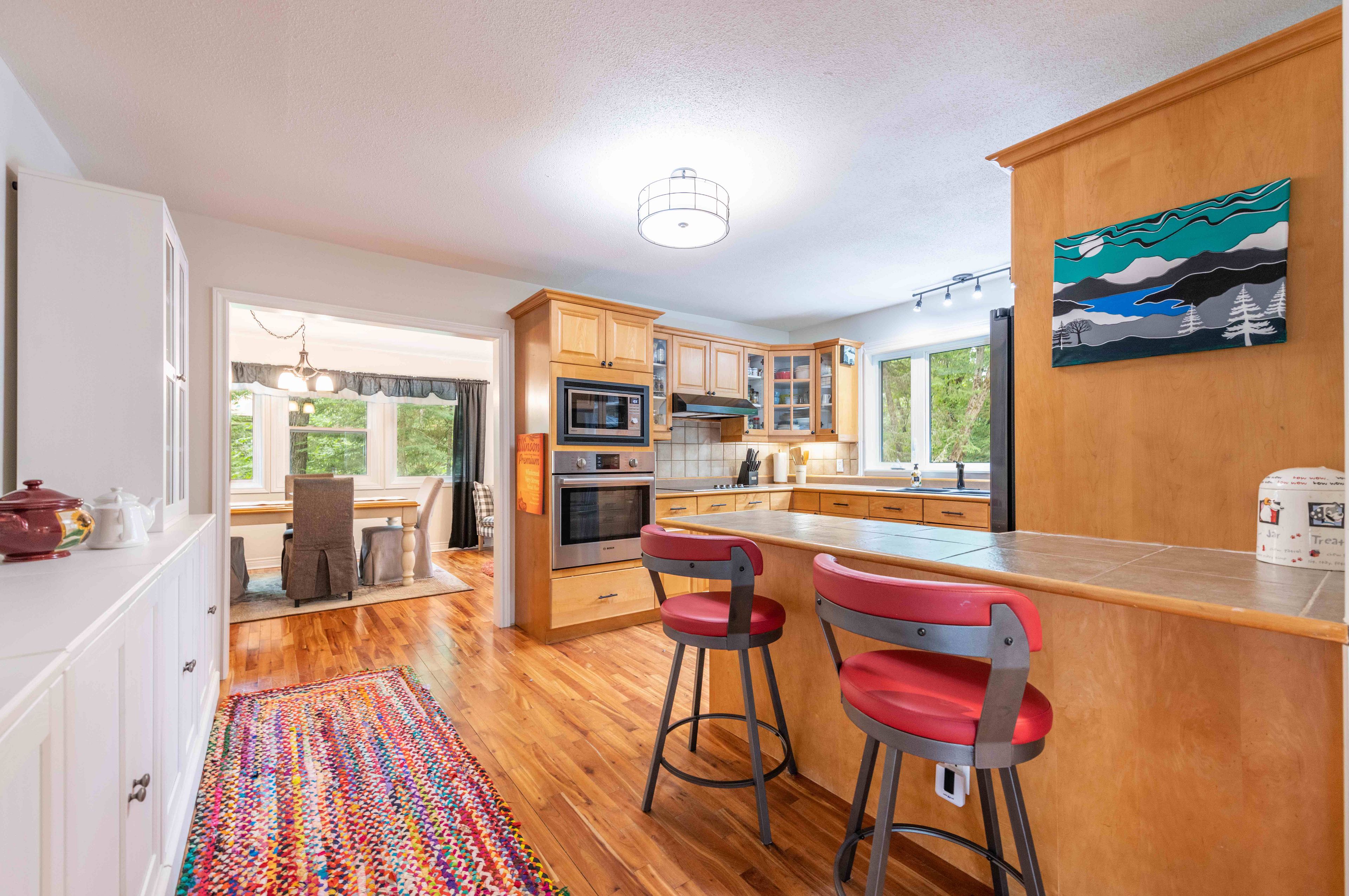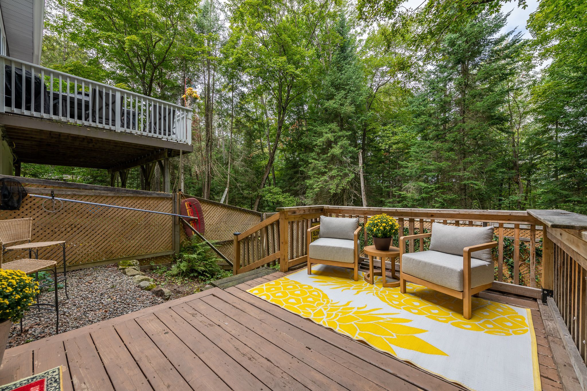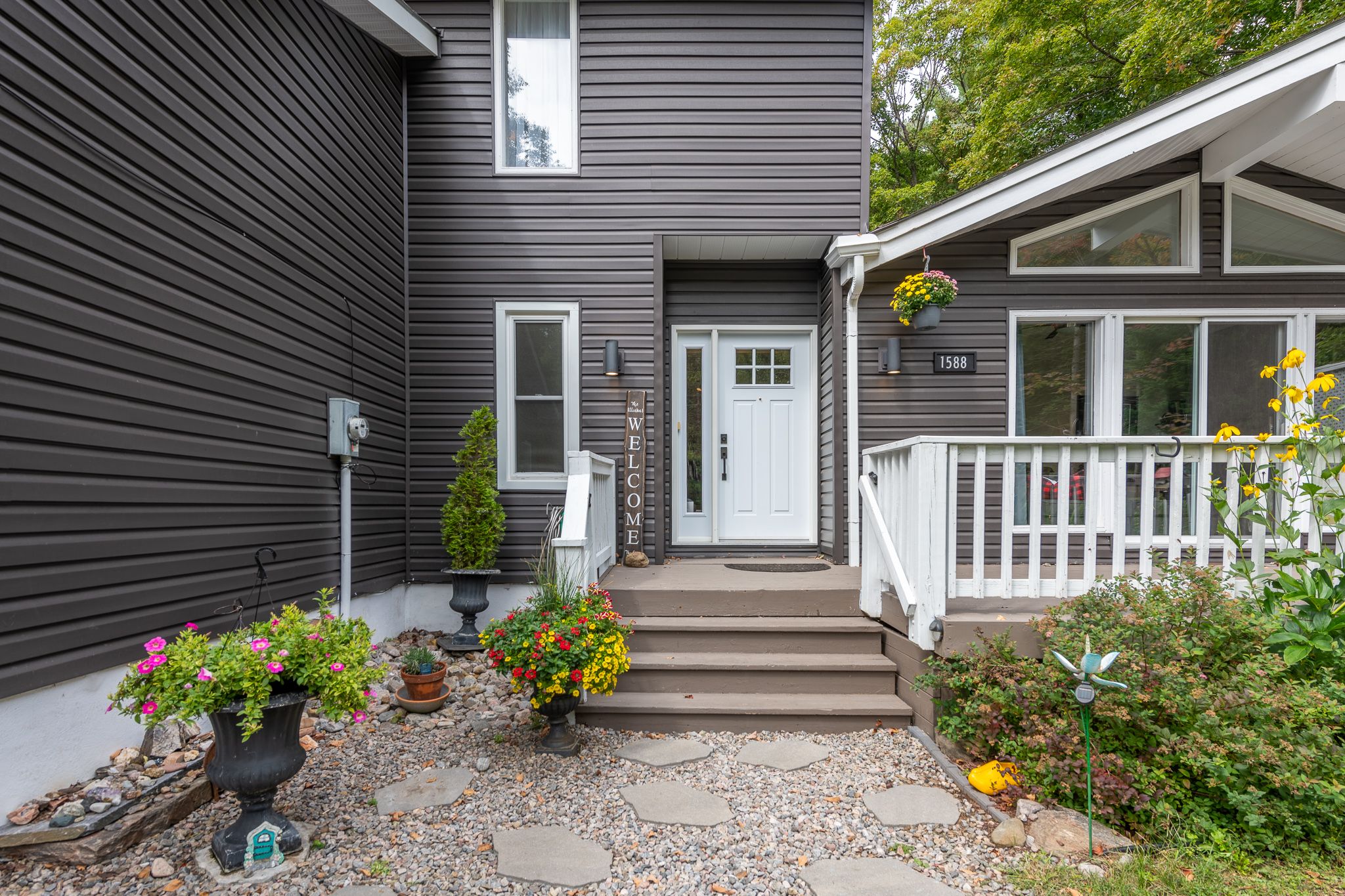 Sought after sunlit and spacious 4 bedroom plus den, 3+1 bathroom is an ideal residence in the heart of hidden valley community. Ski to the hill or stroll to the fabulous 300'+ beachfront on prestigious pen lake with a private park featuring beach volleyball, bathroom, picnic tables, space to play or lounge as part of your membership in the hidden valley property owners association. Great interior design with large sunlit primary rooms. The sunlit living room has vaulted ceilings, muskoka stone gas fireplace and sliding patio doors to front deck. Hardwood flooring in beautiful country size kitchen including newer up to the minute white cabinetry with glass doors, eat at counter, large window with forest views over your very private back yard. Lovely hardwood floors continue into the dining and sitting room with french style doors to large rear deck ideal for barbequing, entertaining featuring an included gazebo. Main level primary bedroom with 3 piece ensuite is privately positioned in the residence away from other living spaces. 2nd level features 2 bright and spacious bedrooms and 4 pc bath. Lower level has a large family room with a gas fireplace and a fun party room with a potential wet bar and large patio door to another rear deck and patio. 1 bedroom plus den and an up to date 4 pc bathroom walk out door to the rear yard completes the lower level. Recreational residence is a pleasure to view with many upgrades including the septic bed was updated in 2018 (rated for 3 bdrms), gas furnace new in 2024, new electrical panel & some newer windows. The home boasts maintenance free vinyl siding, absolute private rear yard with level space for kids, gardens, potential for swimming pool, set back nicely from the street, attached single car garage. Located in one of the best areas for year round active living with bike trails, ski hill, beach, resorts, restaurants, golf all within walking distance or a short drive. Only 10 minutes to downtown huntsville.