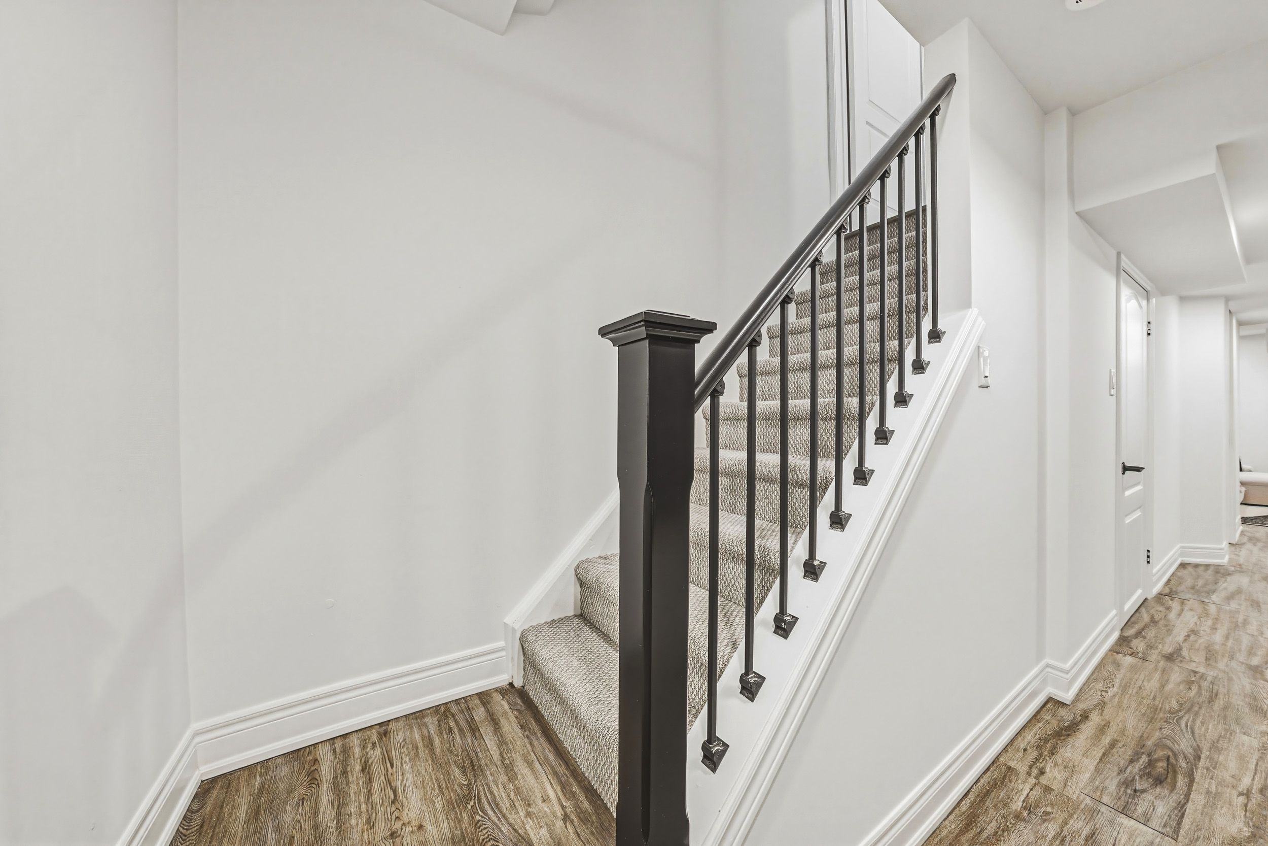 Welcome to this fully renovated end-unit condo townhouse in one of mississauga's most desirable communities. Thoughtfully updated throughout, this home offers a true turnkey lifestyle with modern finishes and exceptional value at this price point. The house features wide-plank luxury vinyl flooring (2026), new pot lights, and a bright, open-concept layout that flows seamlessly from the living to dining space. A sleek electric fireplace creates a warm focal point, while large windows bring in natural light throughout. The kitchen has been upgraded with modern cabinetry, stainless steel appliances, a samsung induction stove (2026), and a functional layout that connects seamlessly to the breakfast area with walk-out to a private outdoor space-perfect for everyday living. Upstairs, the fully renovated bathroom (2026) showcases clean, contemporary finishes, while the capped and refinished staircase (2026) adds a custom touch rarely found in this segment. The finished basement provides valuable additional living space-ideal for a rec room, home office, gym, or guest area-giving this home the flexibility today's buyers are looking for. Major upgrades include a high-efficiency furnace and a/c (2025), updated lighting throughout, fresh paint (2026), new baseboards, door hardware, and professionally cleaned ductwork (2026). Additional features include a new garage door (2021), new front door with lockset (2023). Turnkey homes with this level of upgrades, finished basement, and end-unit exposure are rarely offered at this price point-making this an exceptional opportunity for buyers looking for value without compromise.
