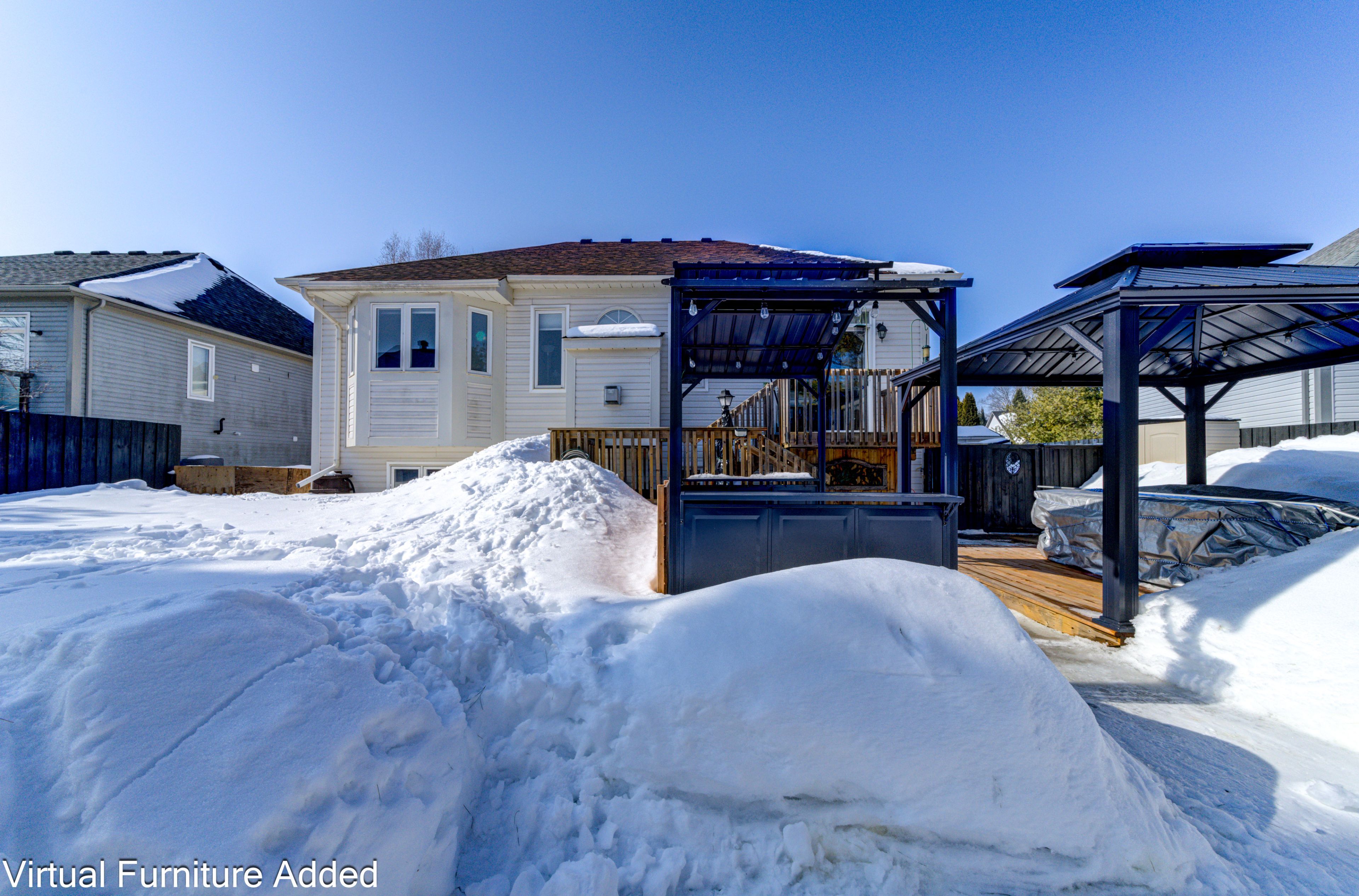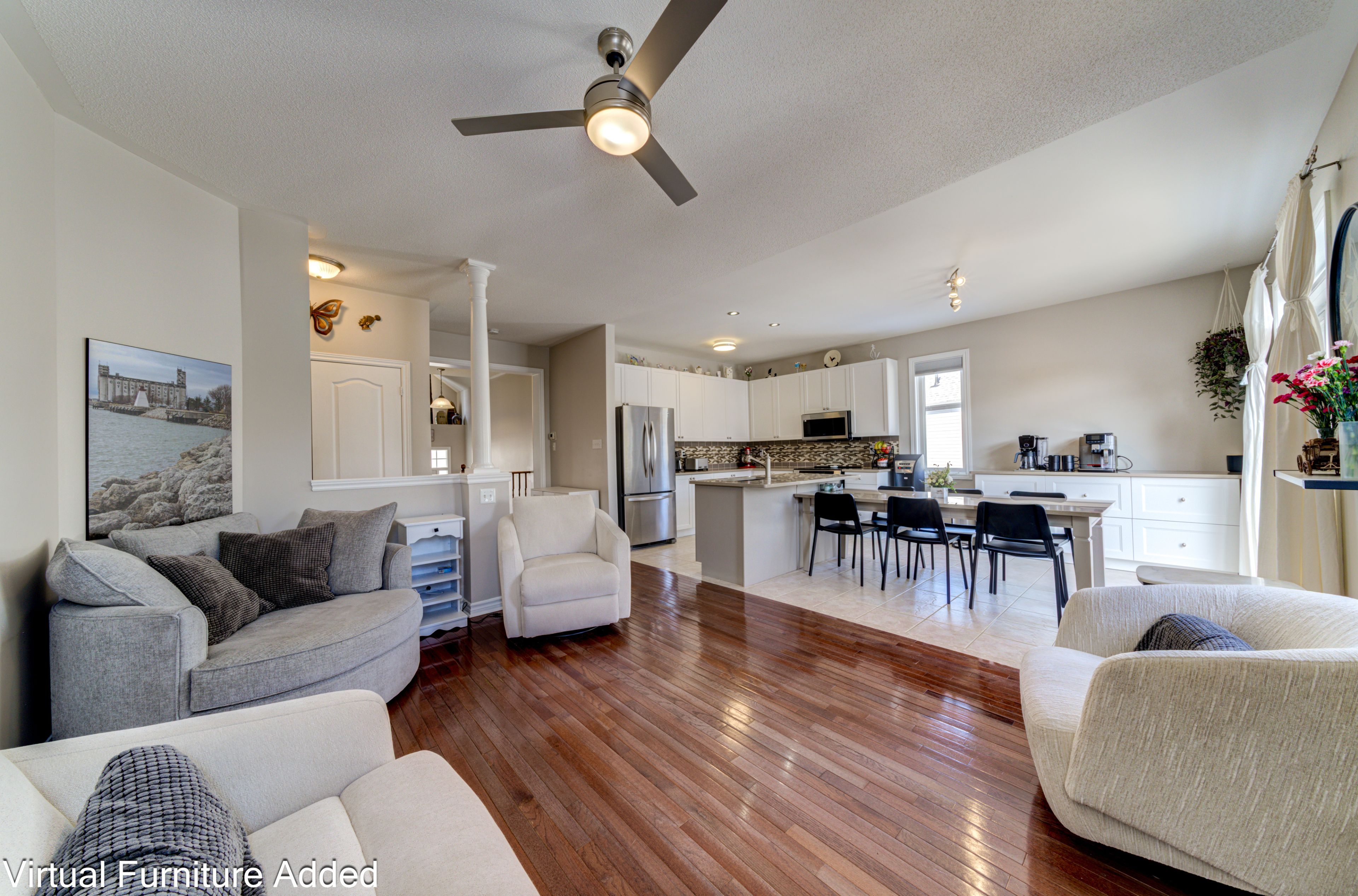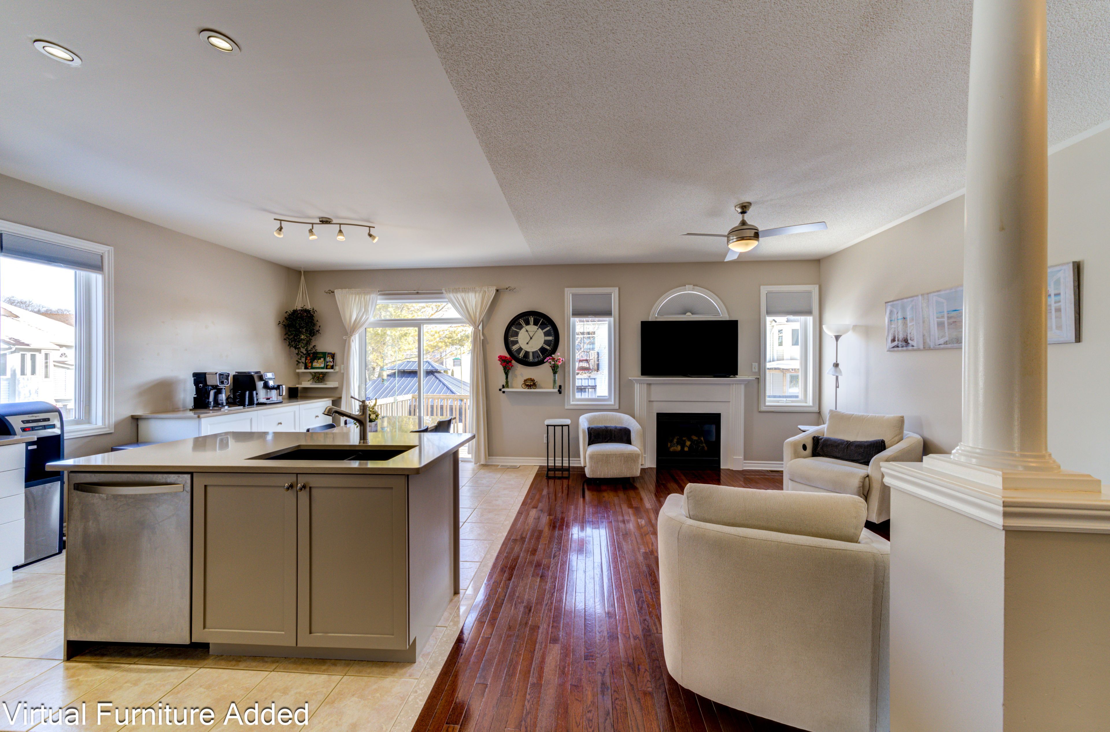 Bright and airy 4 bedroom, 3 bathroom raised bungalow set on a 60 ft lot, offering 9 ft ceilings on both the main and lower levels and a professionally finished basement. This solidly built home features a renovated kitchen with upgraded cabinetry, centre island, coffee bar, and sliding doors with walkout to lovely decking and a beautifully fenced backyard, ideal for entertaining or relaxing outdoors. The spacious main floor primary suite includes a walk-in closet and ensuite bath, while the living room showcases hardwood flooring and a cozy gas fireplace. Main floor laundry adds everyday convenience. Downstairs, the finished lower level offers two additional bedrooms and a generous recreation room complete with a second gas fireplace, creating excellent space for family or guests. Additional highlights include updated bathrooms, inside entry from the double car garage with a large storage loft, window coverings, and six appliances included. Situated on a quiet street within walking distance to the beach, trails, shopping, and the community centre and ymca, this home offers comfort, space, and an exceptional location all in one. Come see what it's all about.