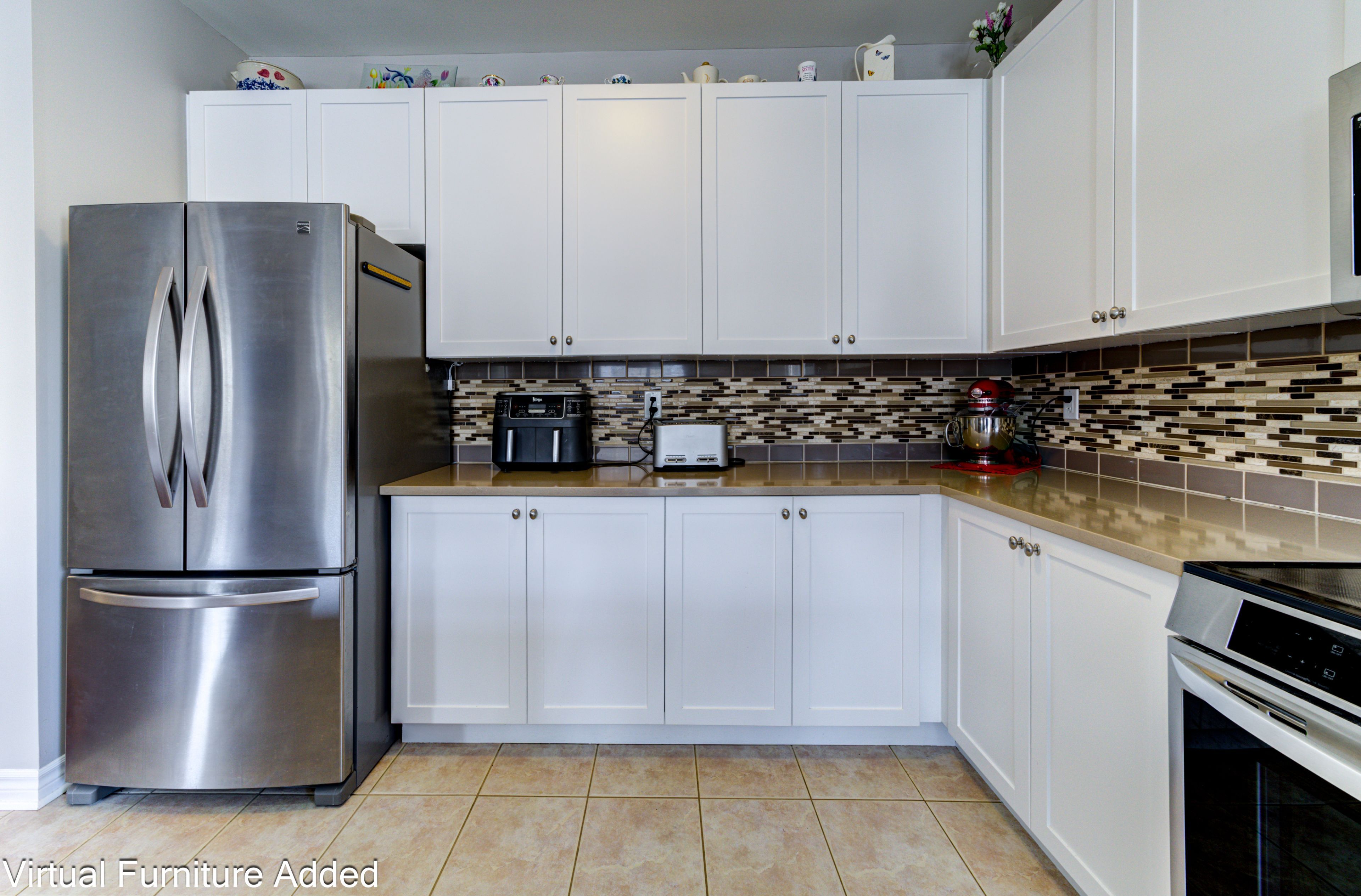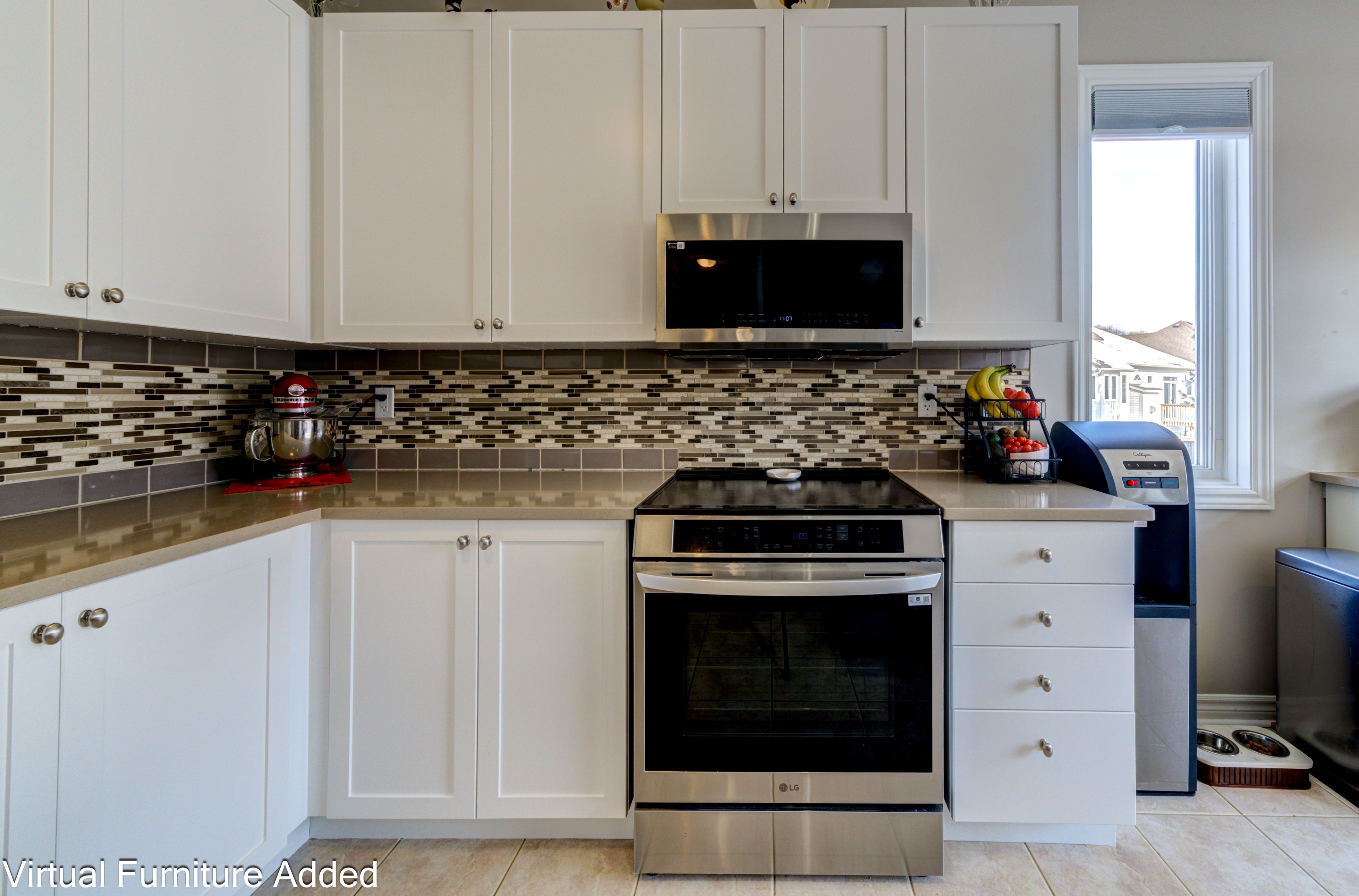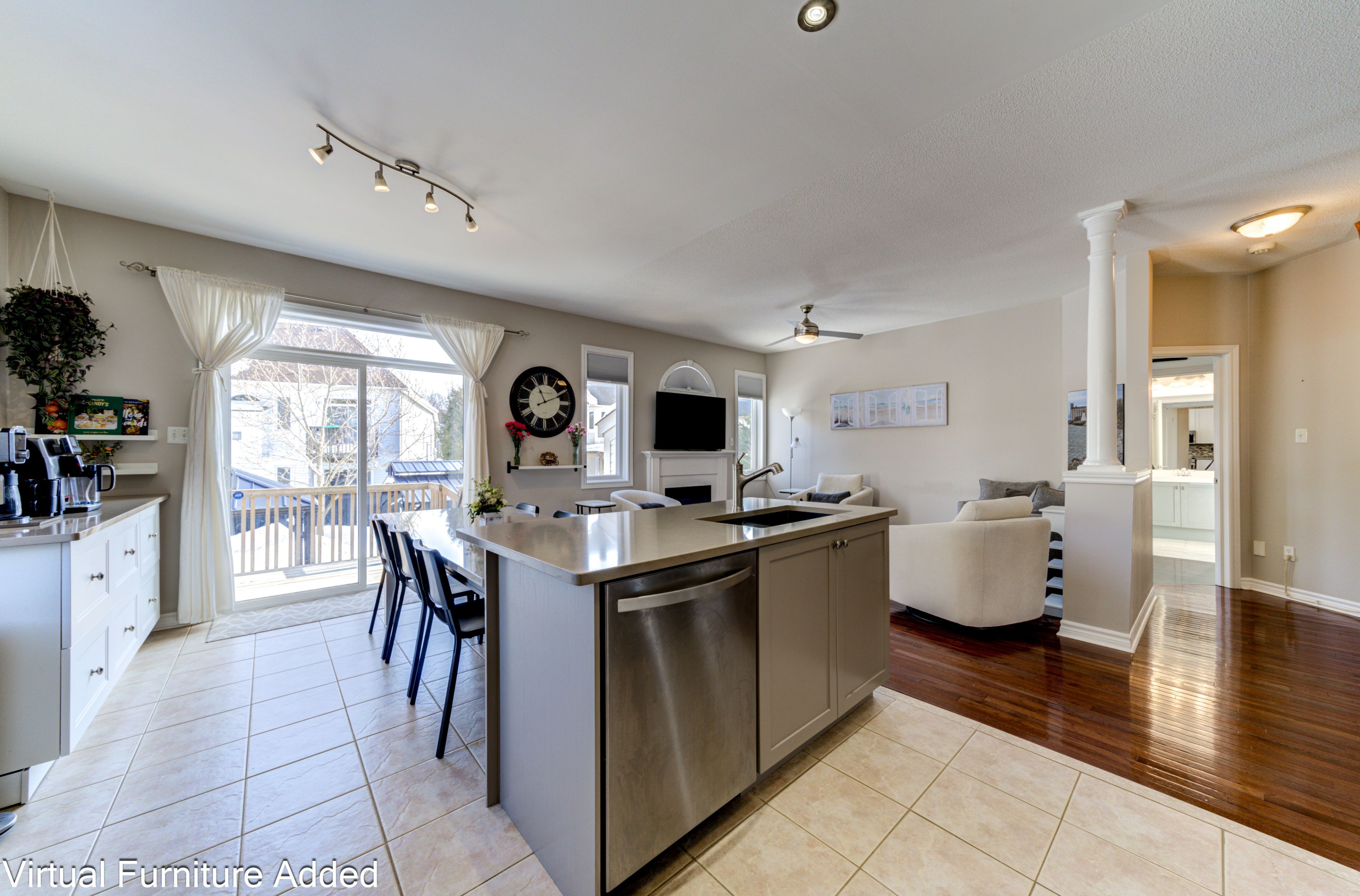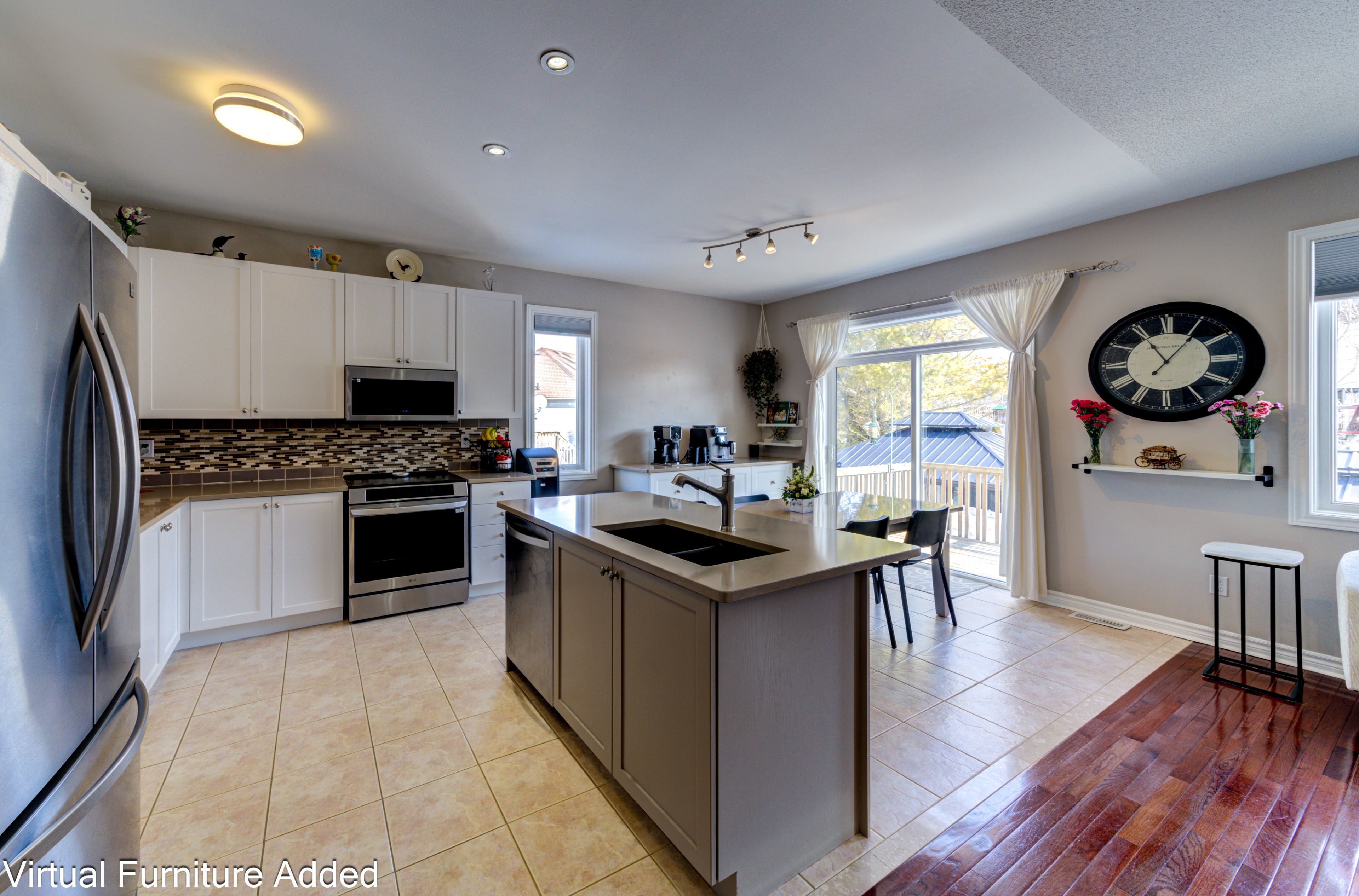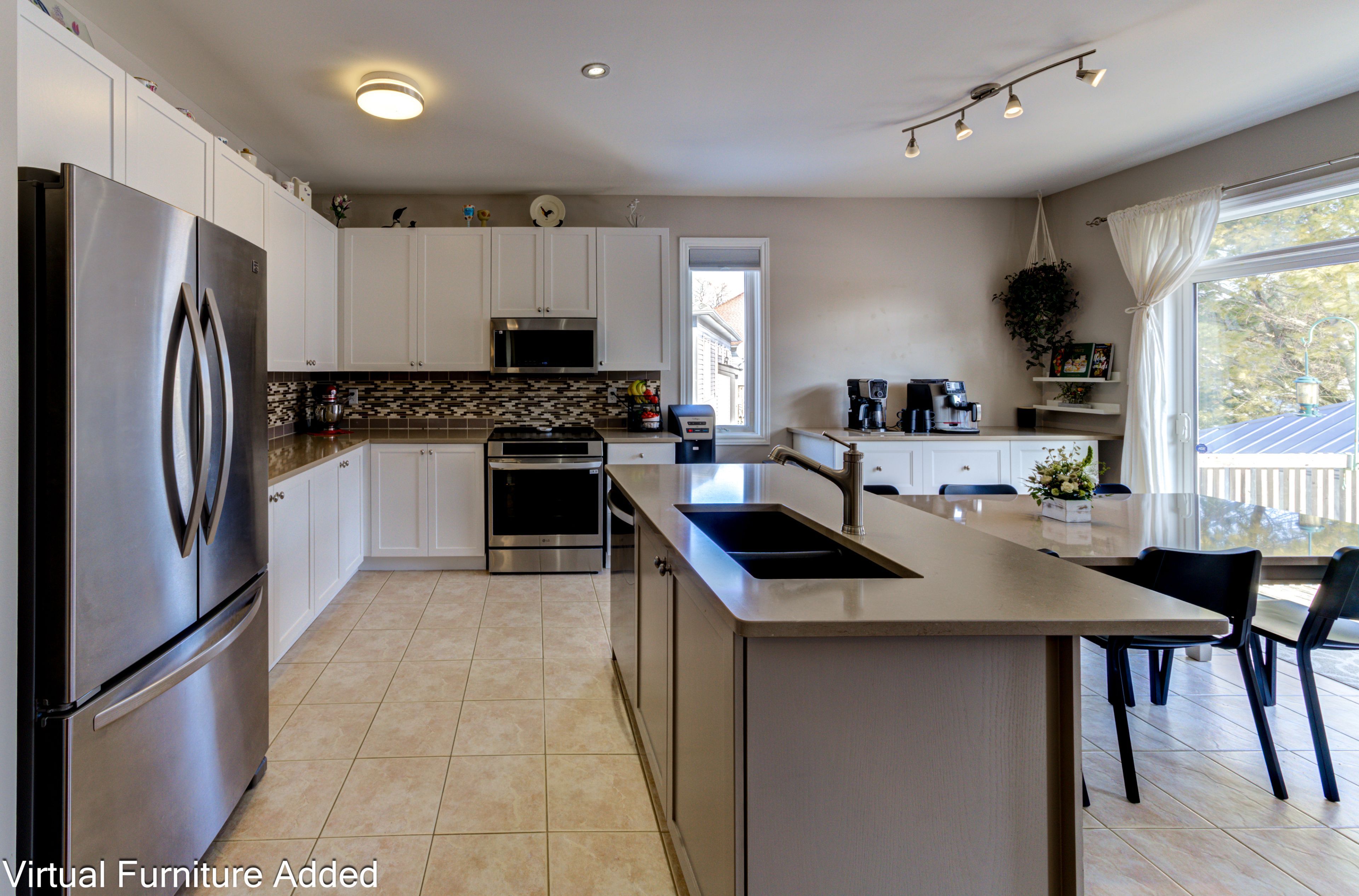 • Renovated kitchen with modern cabinetry and walkout to the backyard.