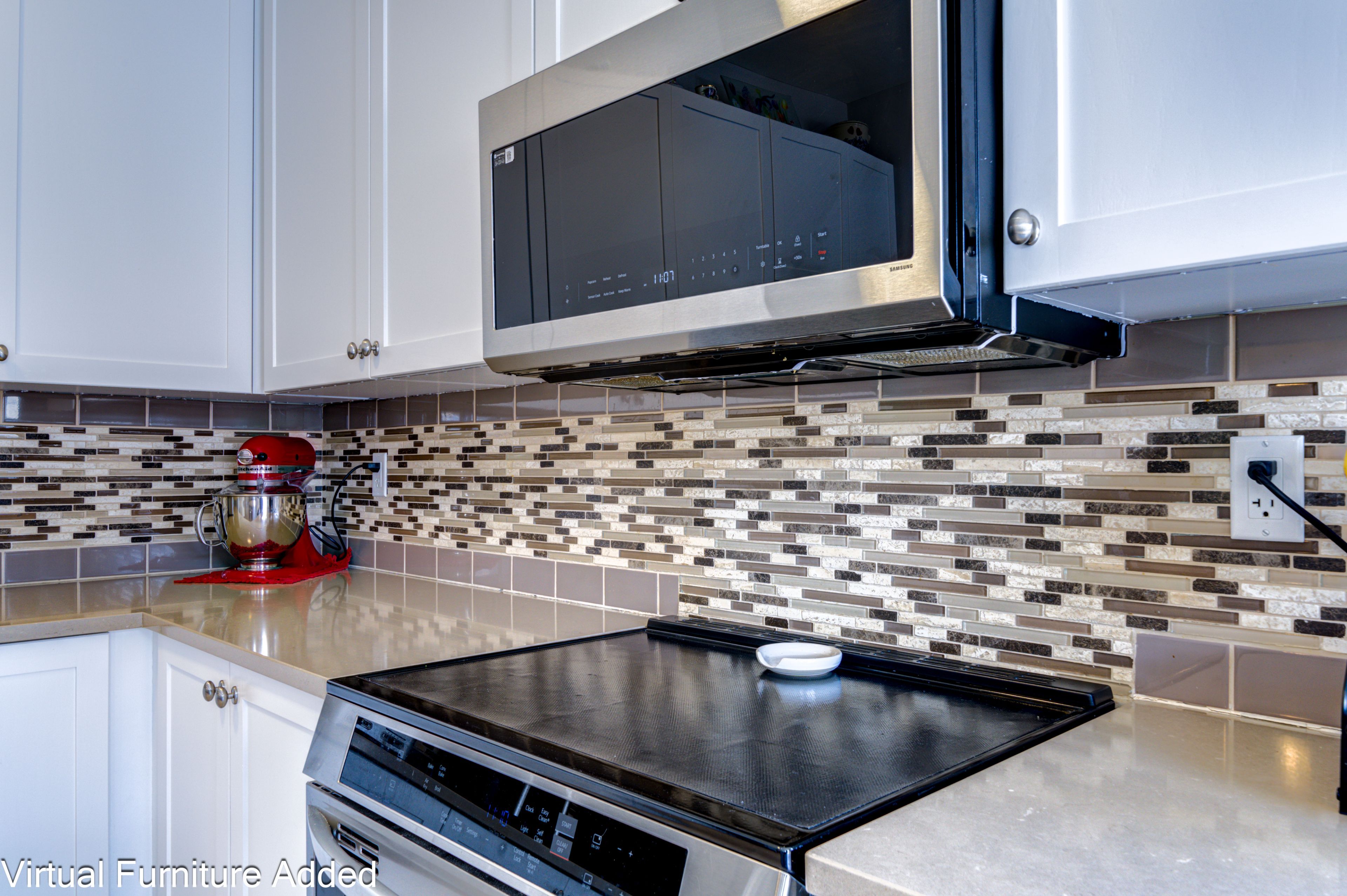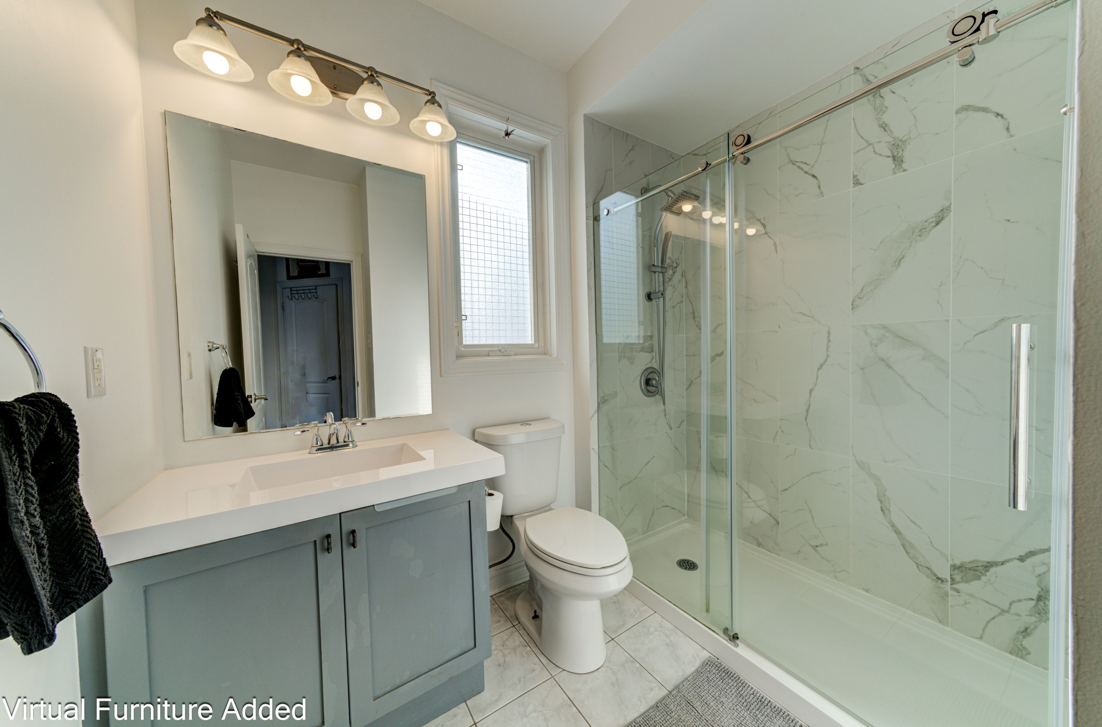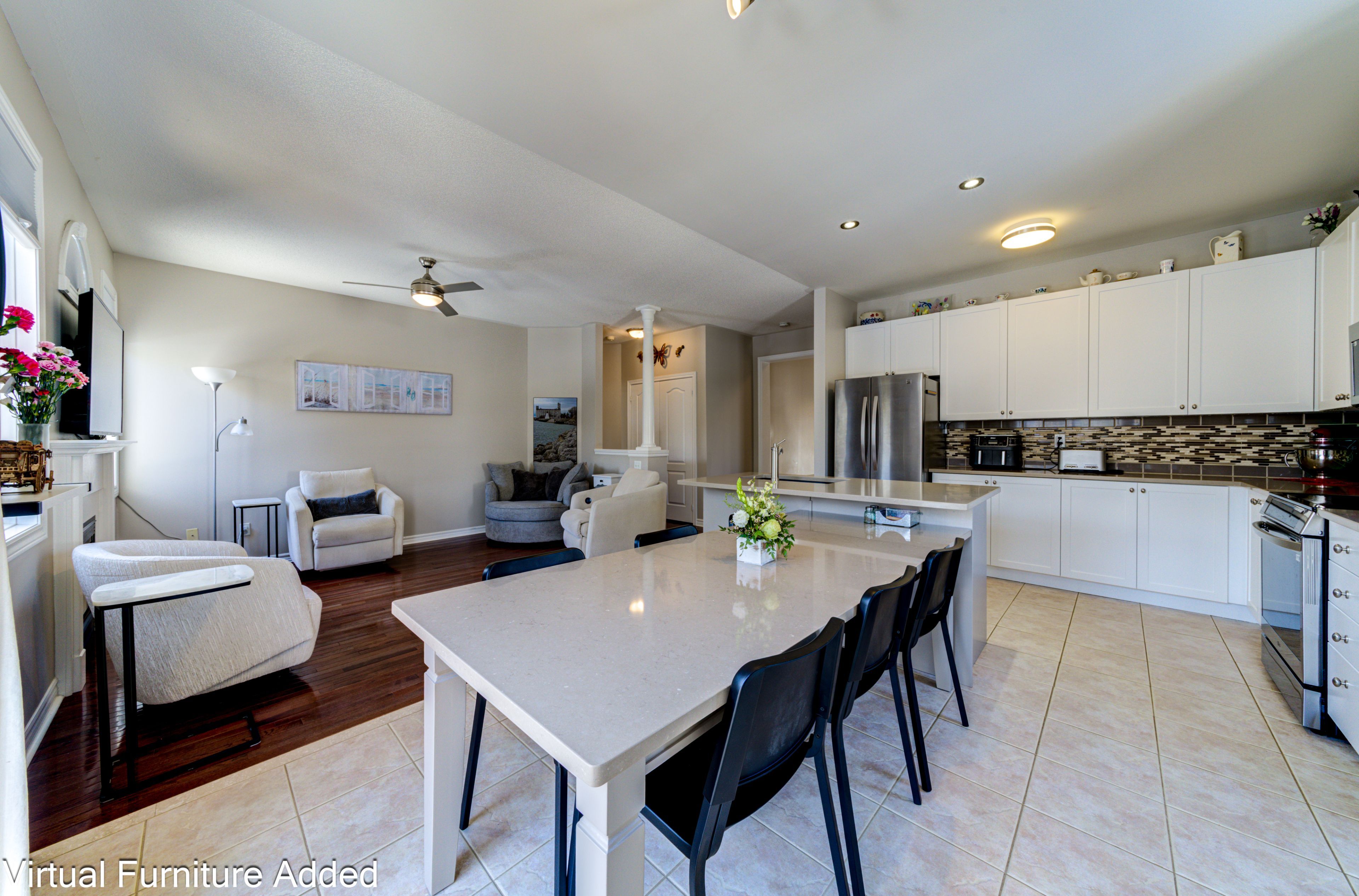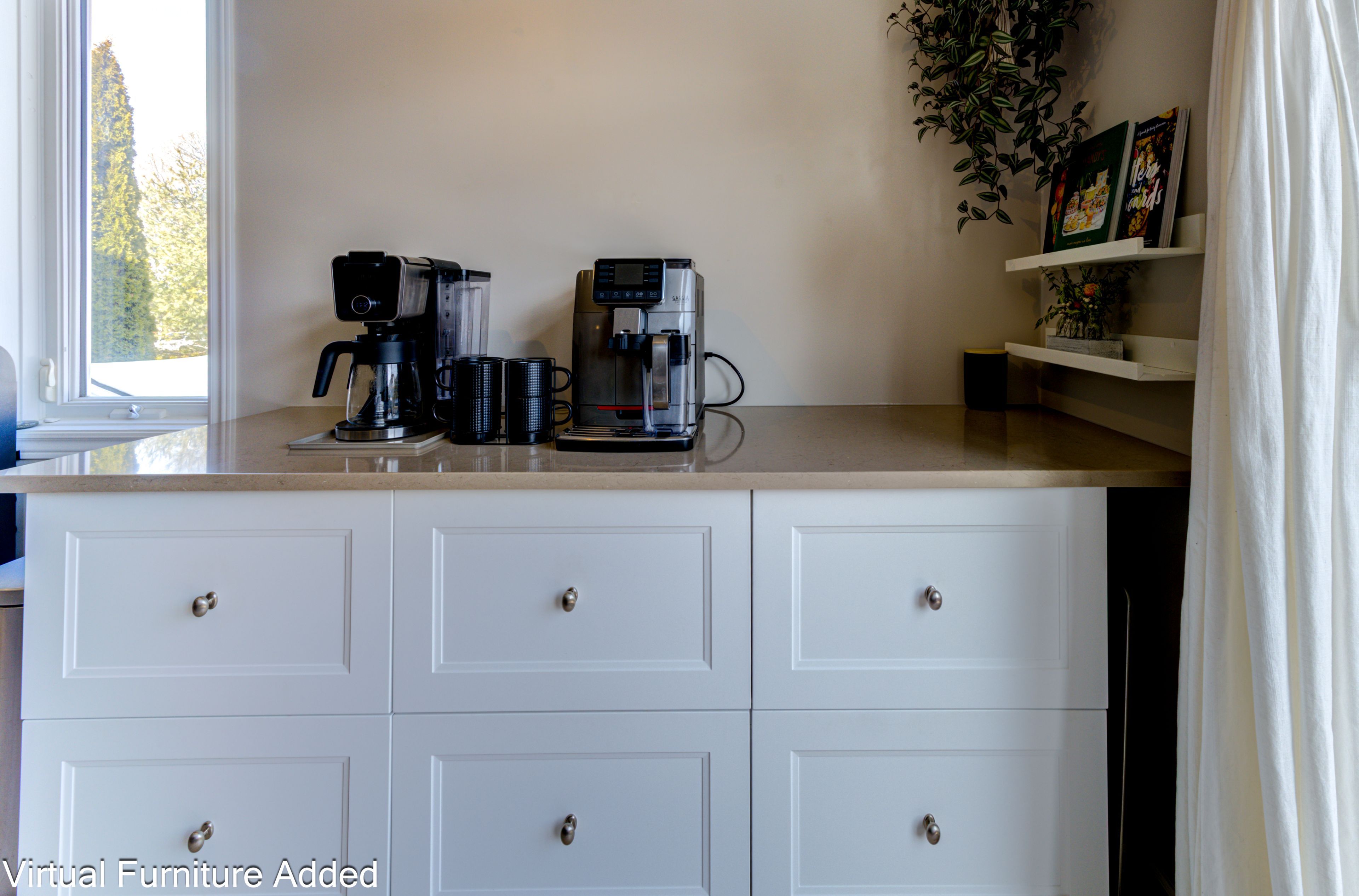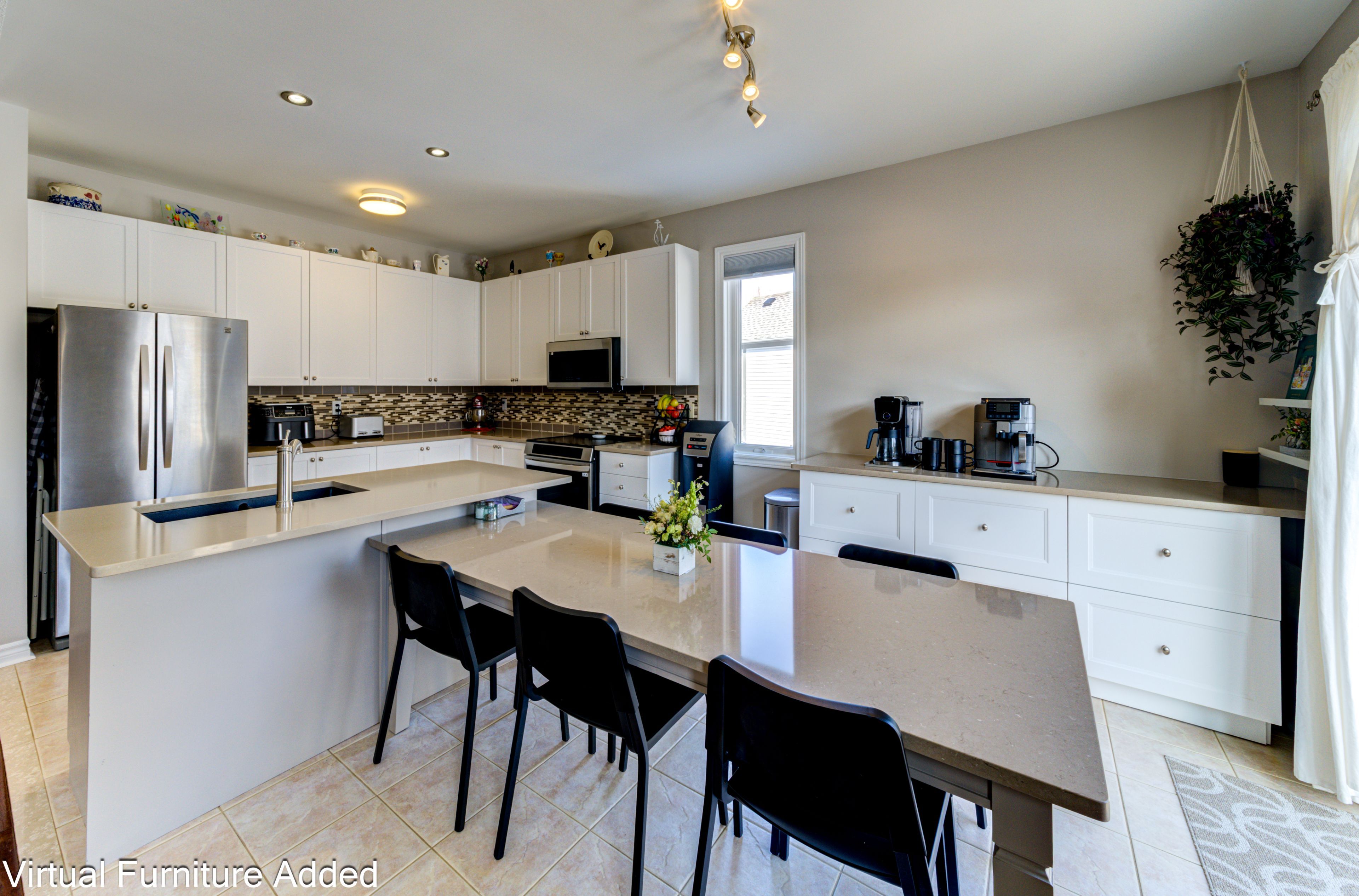 • Renovated kitchen with modern cabinetry and walkout to the backyard.