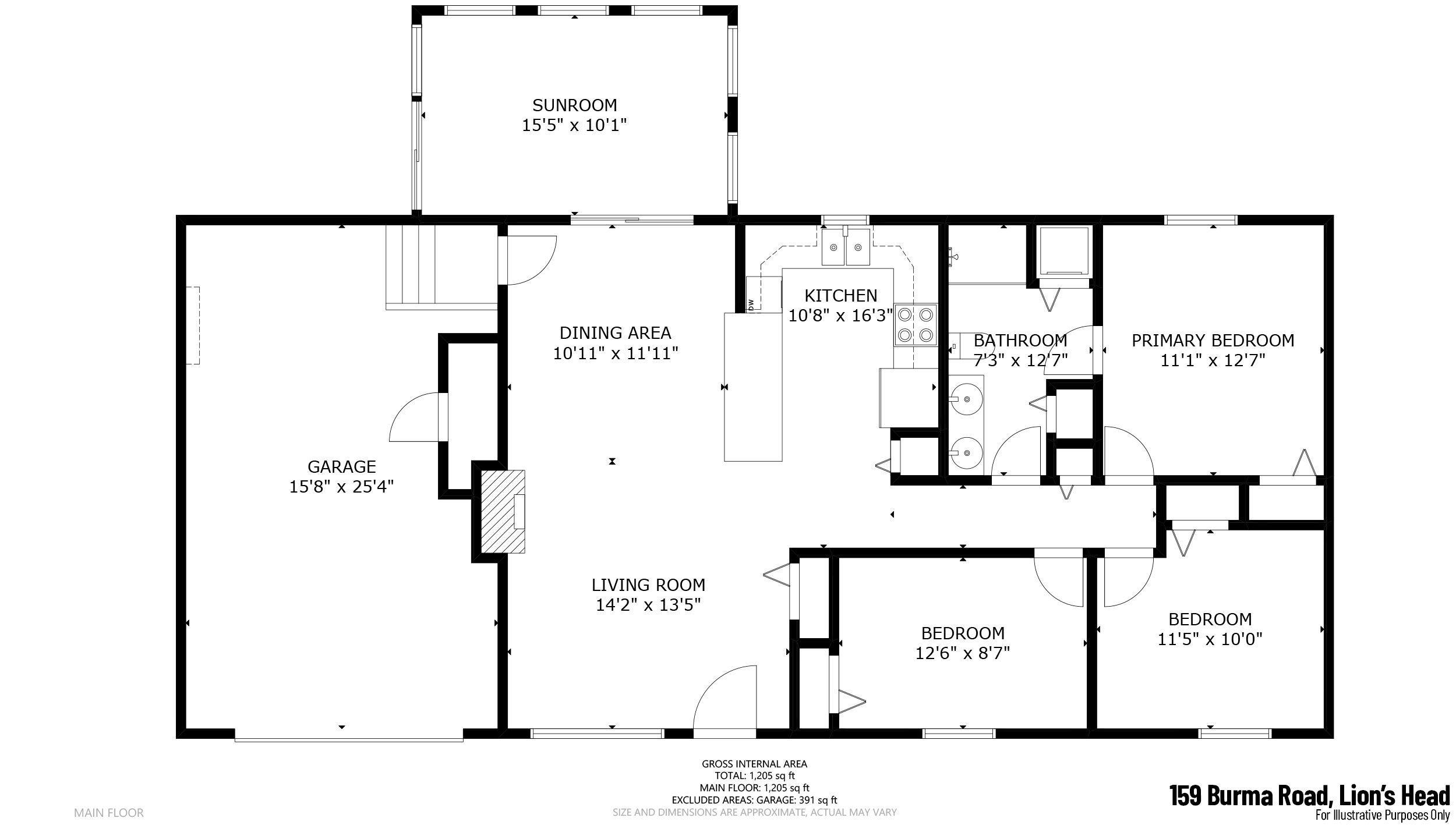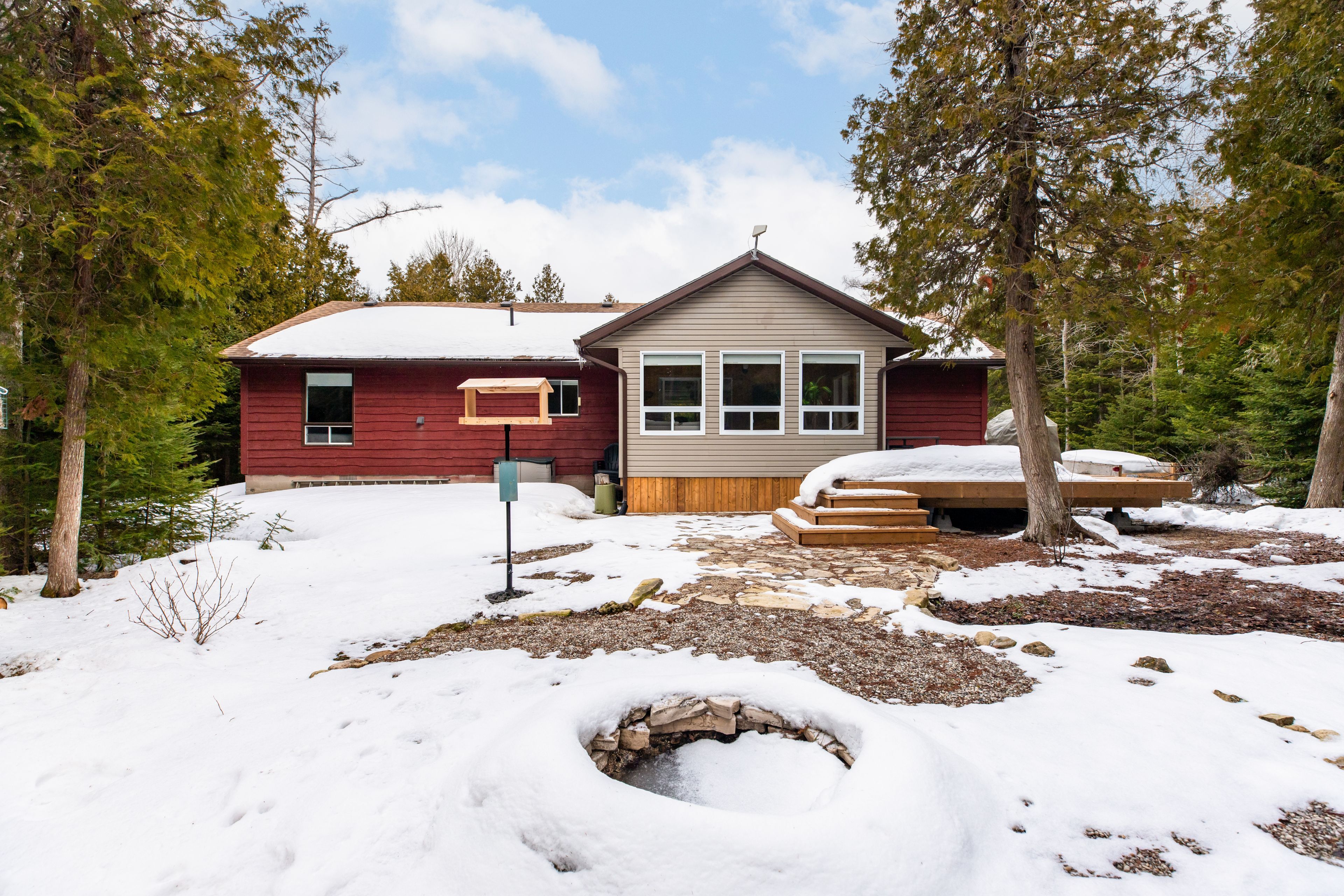 Welcome to 159 burma road-an inviting, move-in ready bungalow set on a beautifully private 2. 53-acre property, offering the perfect blend of comfort, updates, and natural surroundings. This well-maintained three-bedroom home has been extensively renovated and thoughtfully upgraded, showcasing pride of ownership throughout. Major improvements completed in 2018 include all-new electrical wiring with a 200-amp service, updated flooring, modernized kitchen, fresh drywall, and the addition of a cozy propane fireplace that anchors the open-concept living space. The bright and functional layout features a seamless flow between the kitchen, dining, and living areas-ideal for both everyday living and entertaining. Three comfortable bedrooms, along with a well-appointed four-piece bathroom with convenient in-suite laundry, make for easy single-level living. A charming three-season sunroom extends your living space and leads to an expanded rear deck, perfect for relaxing or hosting while enjoying the peaceful setting. Step outside to discover beautifully landscaped perennial gardens, a newly expanded deck, and a private firepit area tucked among the trees-an ideal spot for evenings under the stars. The attached single-car garage and paved driveway add everyday convenience, while the location offers the best of the bruce peninsula lifestyle. A public water access and boat launch are just down the road, with black creek provincial park nearby for nature lovers. Only a short drive to lion's head, you'll find shopping, a sandy beach, marina, trails, and essential amenities including a pharmacy, hospital, and clinic. Whether you're searching for a year-round residence, a peaceful retirement setting, or a four-season getaway, this property offers exceptional value and versatility. Situated on a paved, year-round municipal road with a generous lot measuring approximately 200 ft by 550 ft. A truly special offering-this is one you won't want to miss.