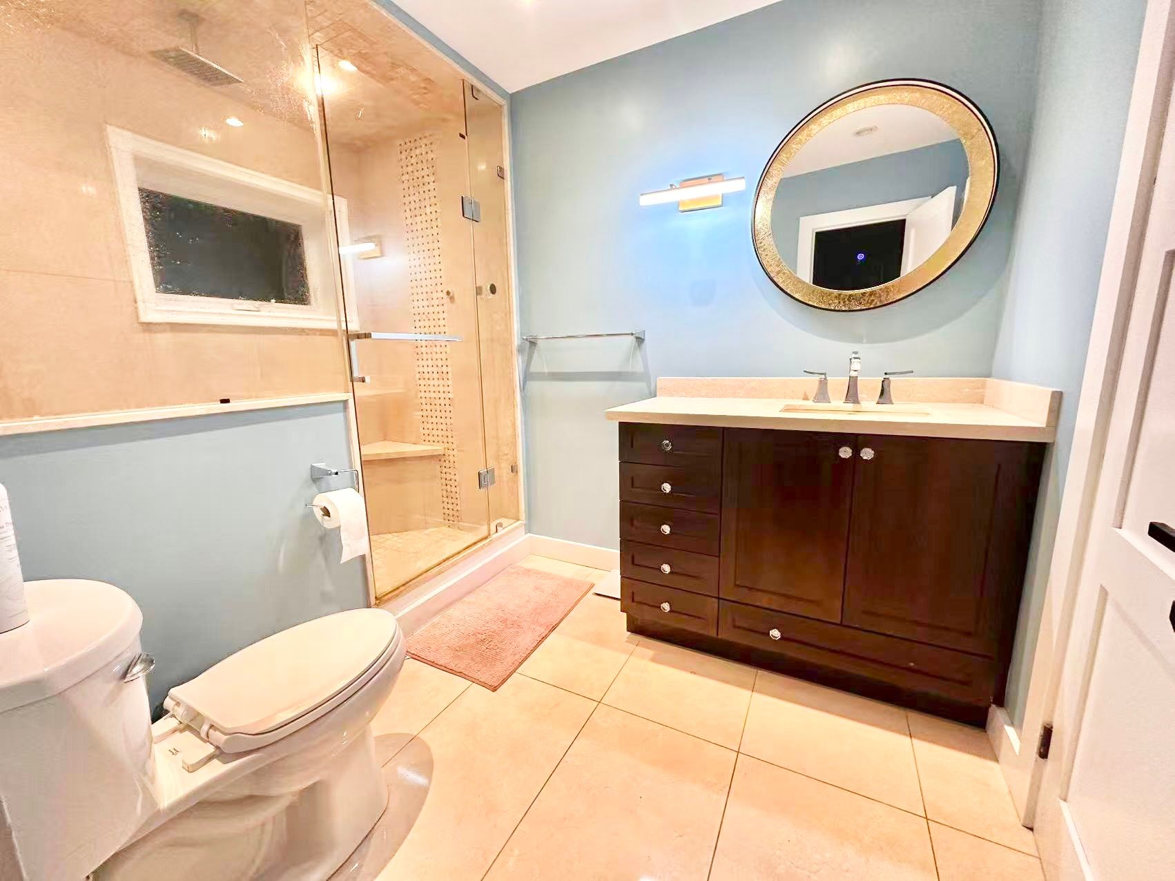 • Updated kitchen and two bathrooms featuring modern quartz counters.