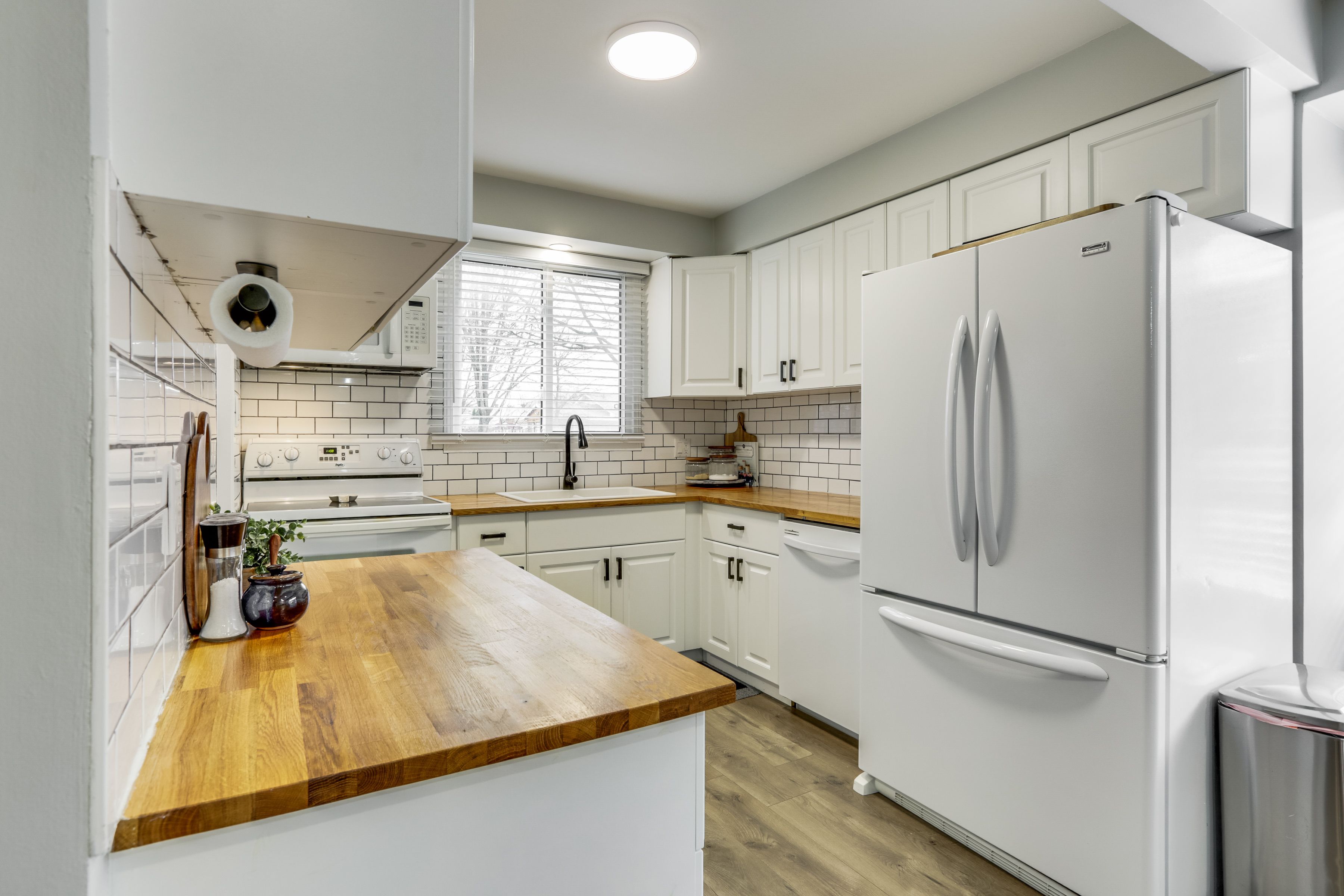 • Bright eat-in kitchen featuring newer light fixtures and fresh paint.