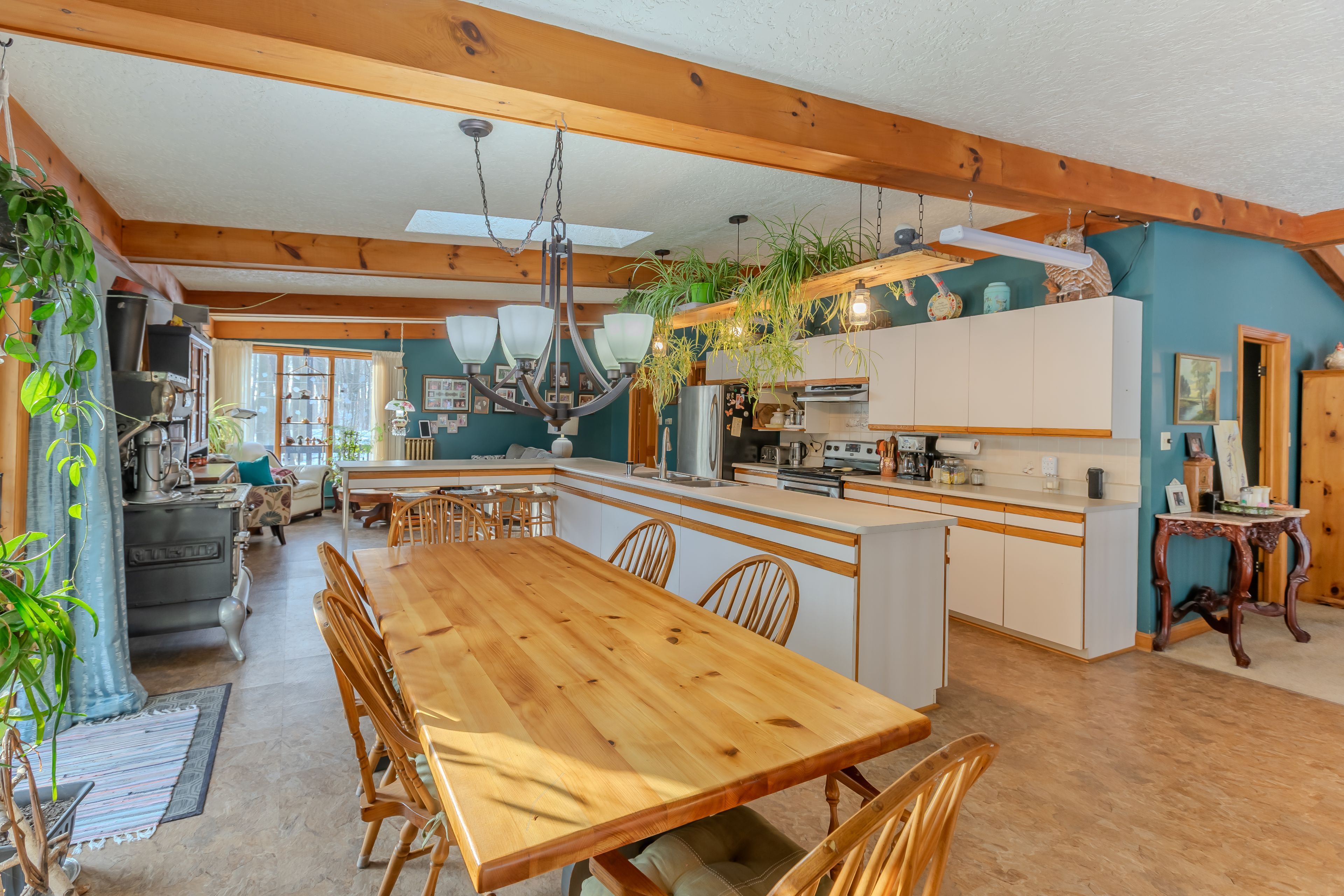 • Open-concept eat-in kitchen with stainless steel appliances and natural light.