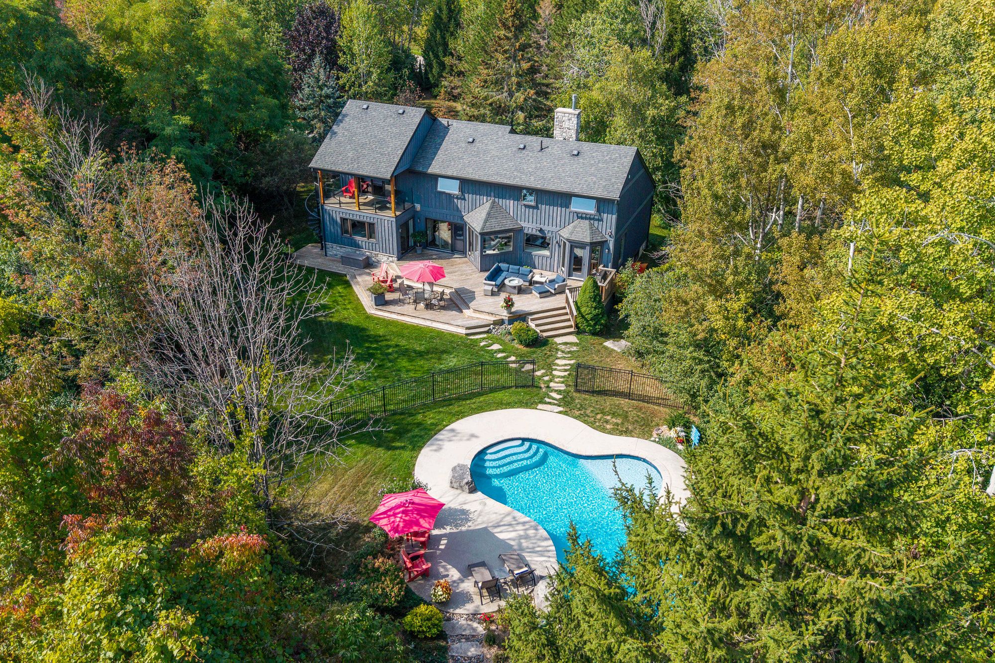 Nestled at the end of a quiet cul-de-sac and set on nearly an acre (0. 969), this exceptional 4-bedroom, 3-bathroom residence offers the perfect blend of privacy, luxury, and lifestyle. Backing directly onto the 14th hole of the prestigious georgian bay golf club, the property is surrounded by mature landscaping and serene natural beauty. Inside, sunlight pours through expansive windows, highlighting tranquil views of the gardens, pool, and fairways. The thoughtfully designed kitchen features caesarstone counters, induction cooktop, walk-in pantry, and warm hickory floors, flowing seamlessly into inviting living spaces anchored by two gas fireplaces. A built-in sonos sound system ensures your favorite music follows you throughout the home. The main floor includes a versatile bedroom with walkout access to the deck ideal as a guest suite or convenient primary. Upstairs, two spacious bedrooms accompany the luxurious primary suite, complete with spa-inspired ensuite, walk-in closet, and a private deck overlooking lush greenery perfect for morning coffee or evening relaxation. The newly renovated lower level expands the living space with fresh finishes, vinyl plank flooring, and a cozy fireplace. With direct walkout access to the backyard, its the ultimate après-ski lounge or retreat after a day on the course. Outdoors, the home shines as a private oasis designed for relaxation and entertaining. Pebble tec in-ground pool, hot tub, expansive deck, and fully fenced yard provide both comfort and peace of mind. Blending sophistication, comfort, and the best of georgian bay living, this one-of-a-kind retreat is a rare offering not to be missed.