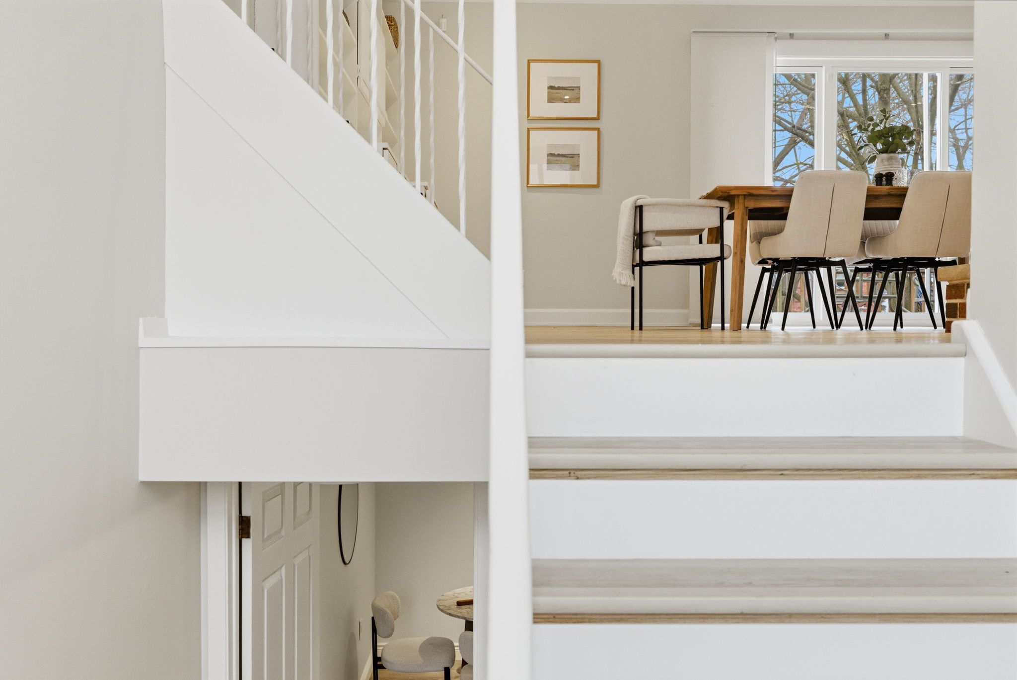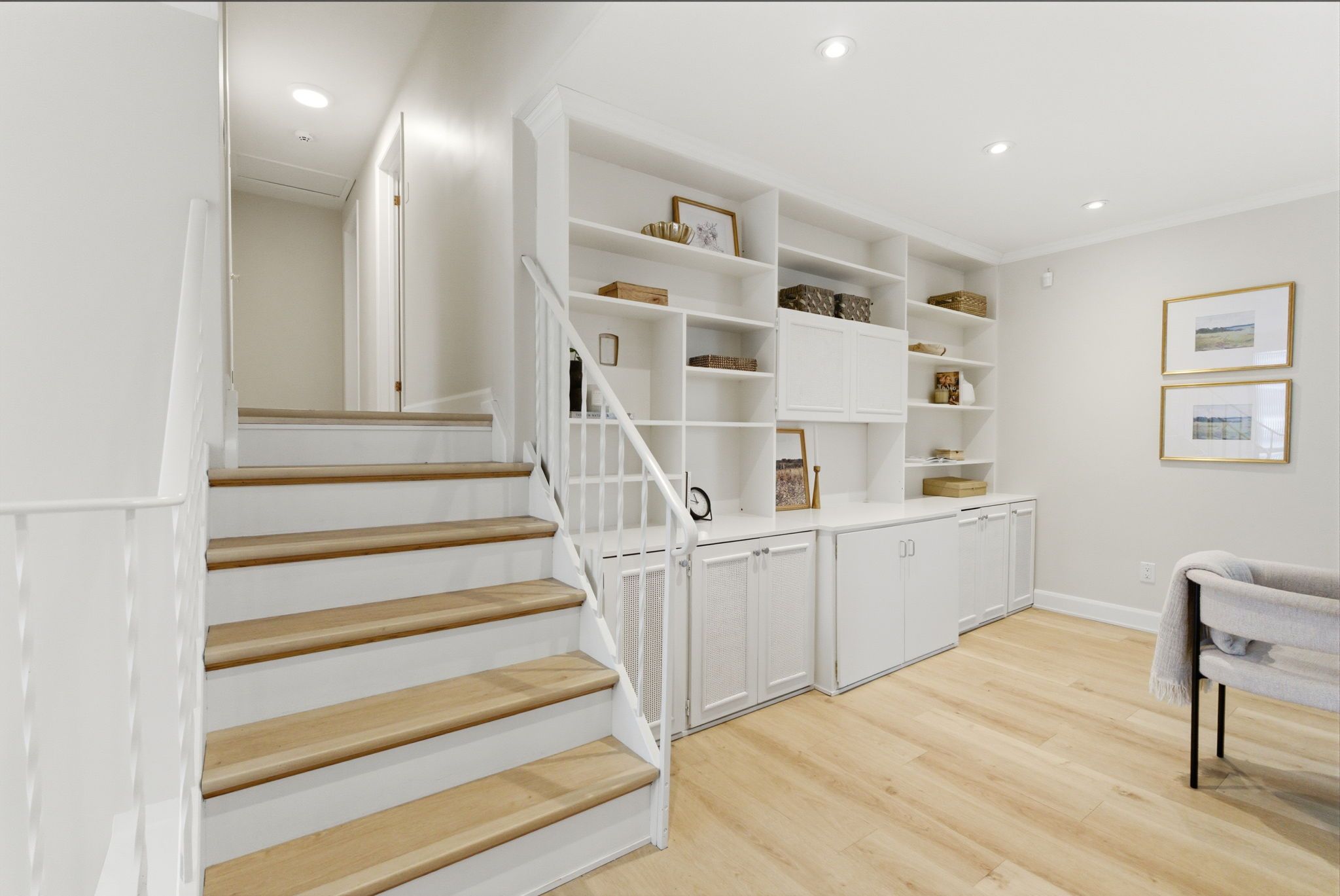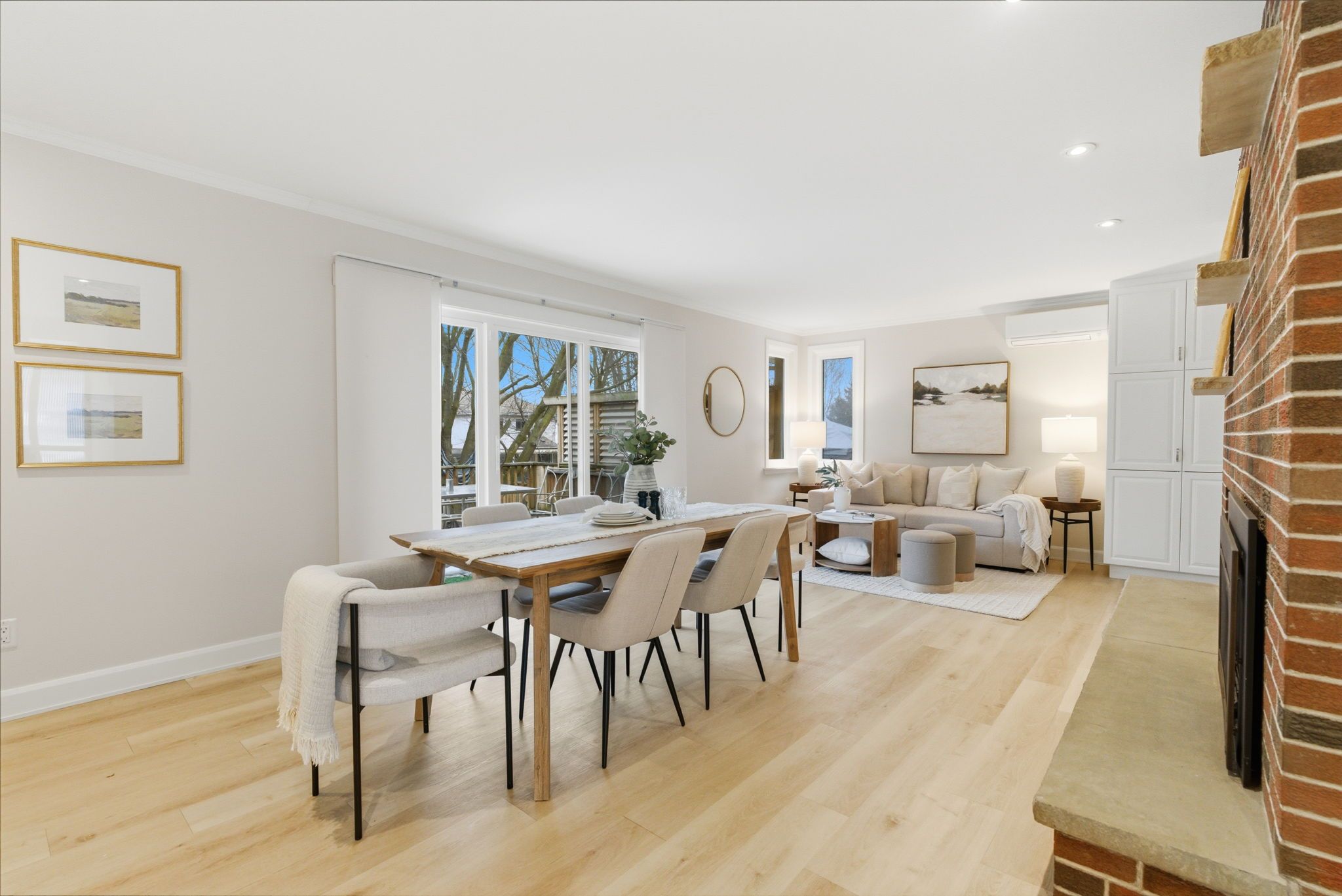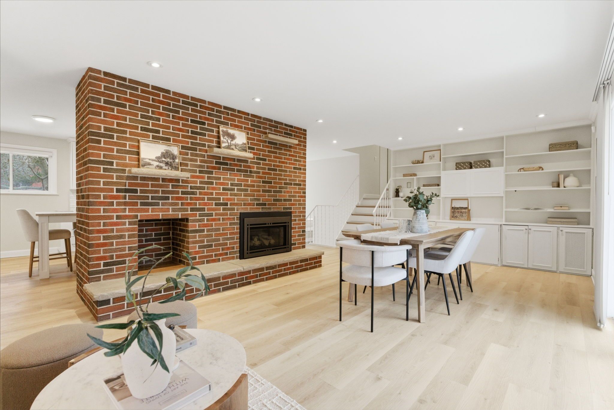 • Renovated kitchen features quartz countertops and extensive cabinetry space.