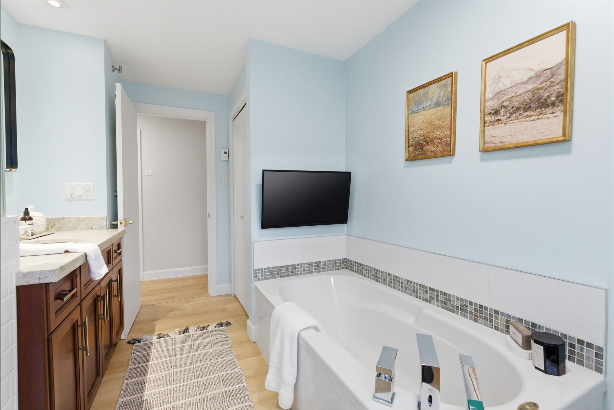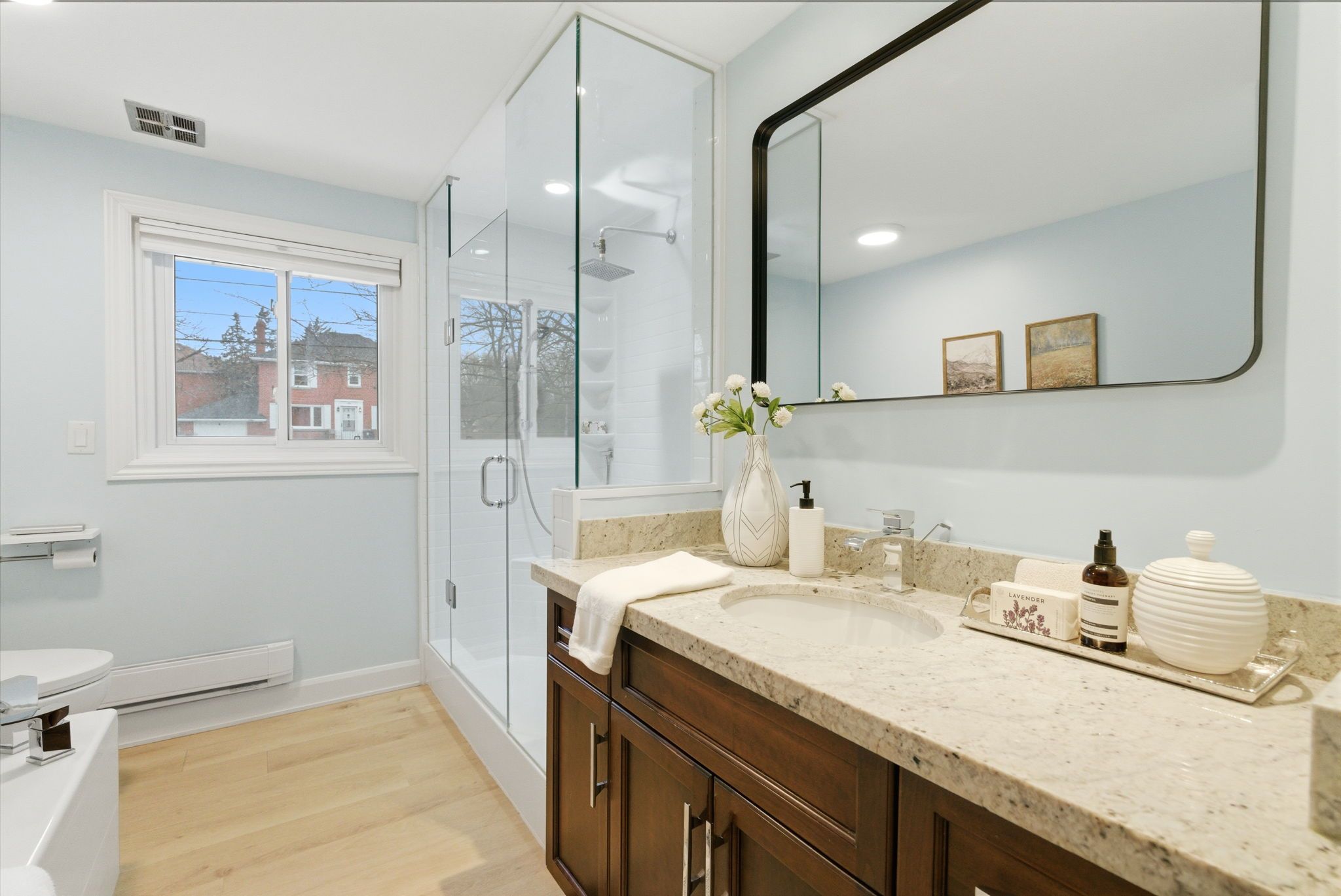 • Three well-sized bedrooms and a spacious bathroom with soaking tub.