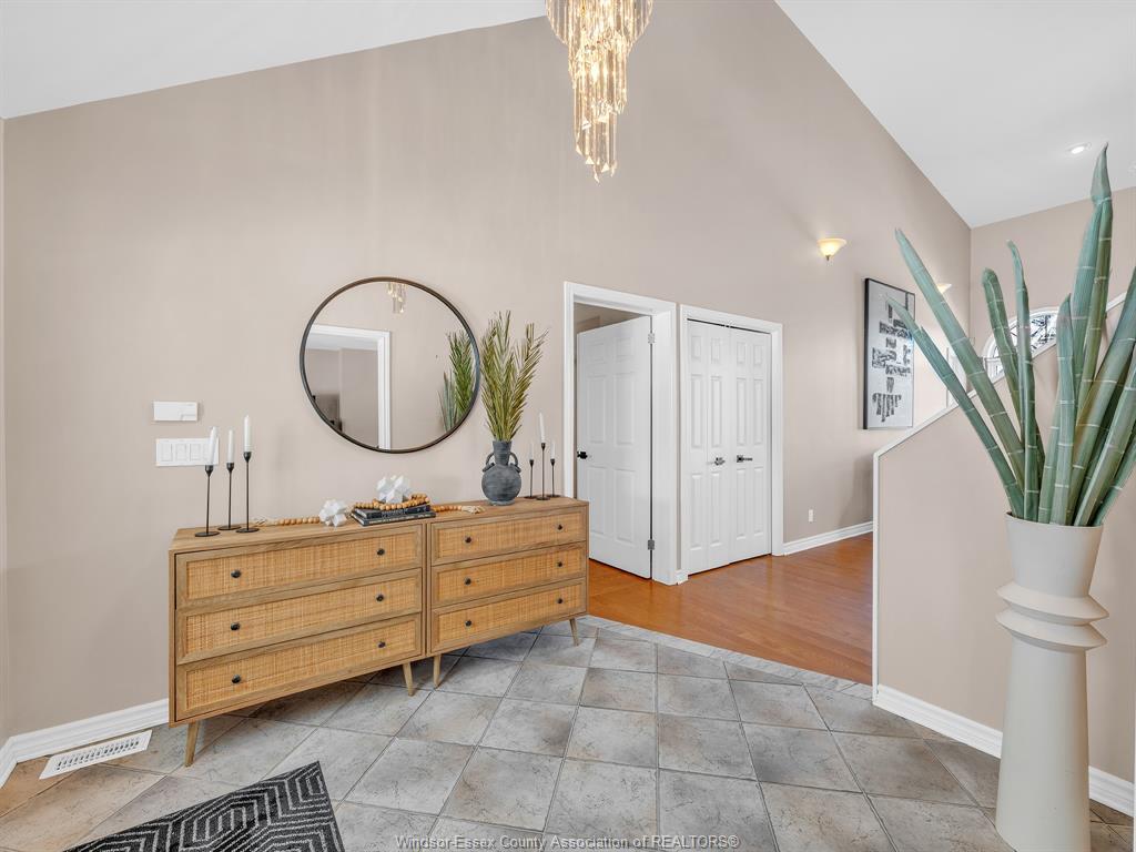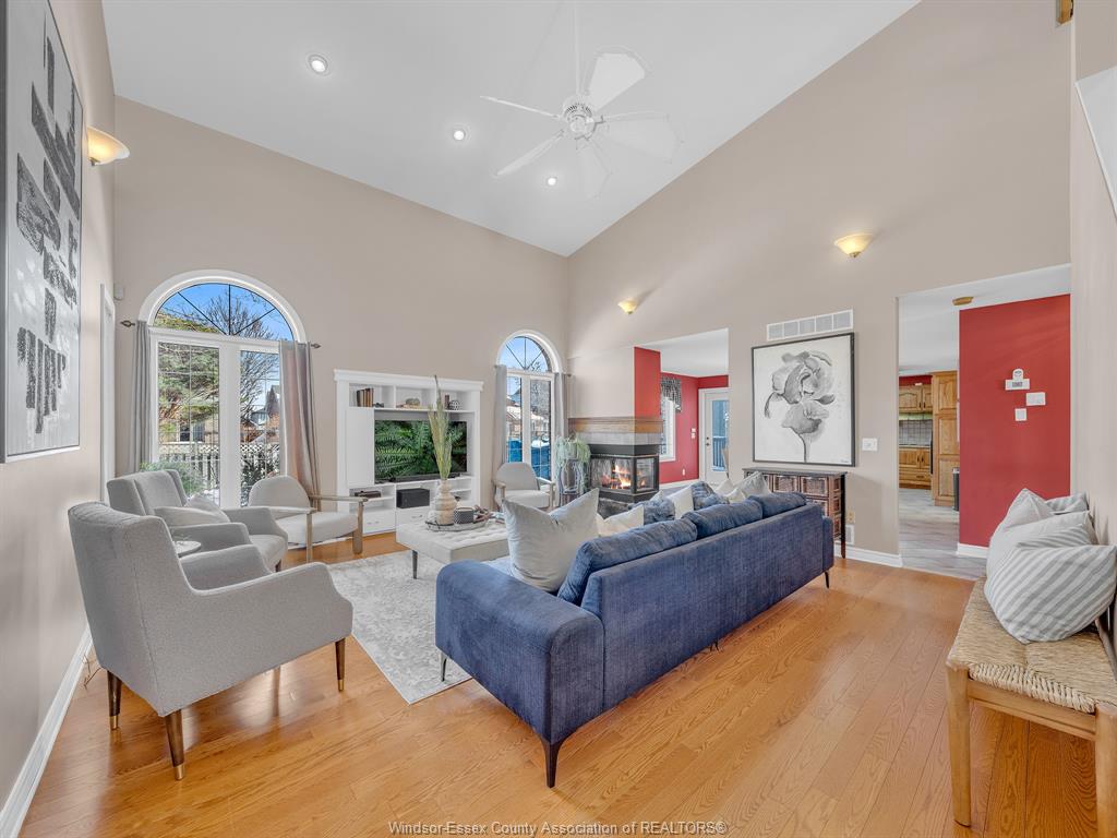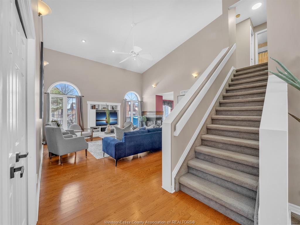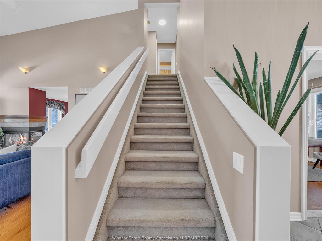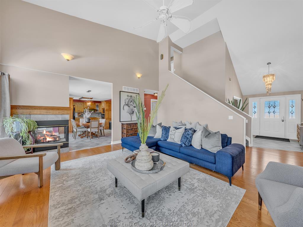 Welcome to this beautifully maintained 1 1/2-storey family home in the heart of lakeshore, where comfort, style, and location come together seamlessly. Step inside the inviting foyer and feel immediately at home. The thoughtfully designed main floor features a spacious primary bedroom complete with a walk-in closet and a private 4-piece ensuite, perfect for those seeking main-level living. The open-concept layout is ideal for both everyday living and entertaining, highlighted by a stunning 1 1/2-storey ceiling in the great room, anchored by a cozy dual-sided gas fireplace. The adjoining dining room flows effortlessly into the kitchen and open eating area, offering a bright and welcoming space for family meals and gatherings. A convenient mudroom/laundry combination, along with a main-floor 2-piece powder room, adds to the home’s practical appeal. Upstairs, you’ll find two generously sized bedrooms, providing comfortable spaces for family or guests. The unfinished yet pristine basement offers endless potential to design and customize to suit your lifestyle—whether a recreation room, home gym, or additional living space. Outside, enjoy excellent curb appeal with a landscaped yard, covered front entryway, double concrete driveway, and double garage. The large backyard is perfect for relaxing or entertaining, featuring a newer sun deck and plenty of room for kids and pets to play. Ideally located near schools, shopping, restaurants, scenic trails, the beach, e. C. Row, and more, this home truly offers the best of lakeshore living. Pride of ownership is evident throughout. This is a family home you’ll be proud to call your own.