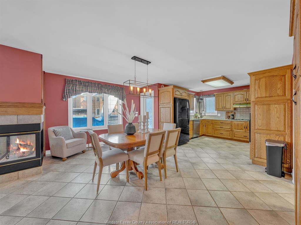 • Open-concept layout with a great room and dual-sided gas fireplace.