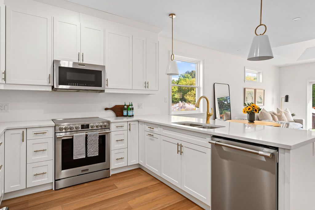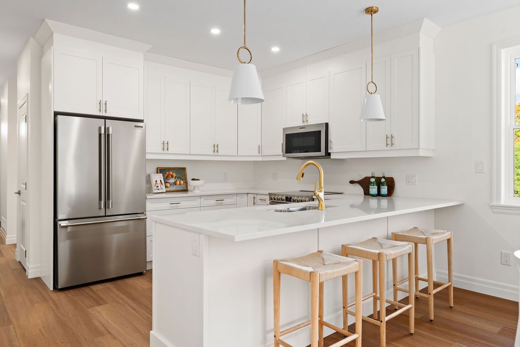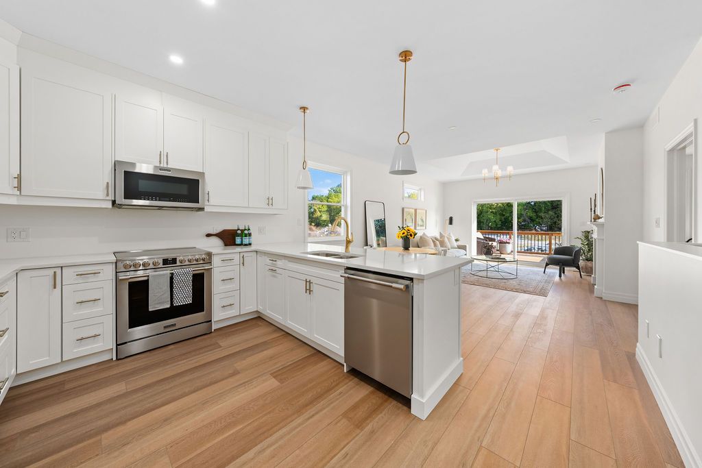 • Impressive kitchen with quartz counters and breakfast peninsula for entertaining.