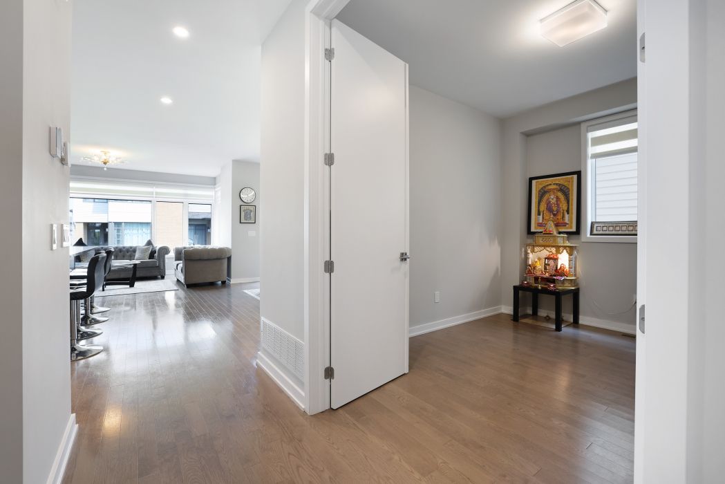 Luxuriate in this sun kissed, spacious stunner of a home located in the prime location of riverside south. This impressive and imposing home welcomes you with a grand foyer with tall ceilings and an elegant gallery. Beautiful and functional layout with a office/ flex space on the main that could be used in various ways, be it a meditation room, prayer room, kids play area or convert it into a cozy lounge, it's up to you! The warm and inviting living area and dining space accompanied with a kitchen that's a culinary haven with its upgraded long quartz countertop island is ideal for entertaining and hosting those memorable soirees and gatherings. The chef's kitchen is not just appealing to the eyes with its upgraded backsplash, quartz countertop and gas stove, the toe kick kitchen vacuum but also prioritizes functionality and efficiency! The sizable primary bedroom is the sanctum sanctorum of the home with its oversized walk in closet, the cozy nook in the corner and a luxurious 5 piece washroom with quartz countertop, his and her sinks, soak in tub and a separate glass shower and. This home boasts of generous size bedrooms with large windows, good sizes closets and a small loft area/ nook for an additional office area or whatever your heart desires! The laundry oasis on the second floor flaunts not only its size but the convenience it offers. The basement is partially finished with a generous sized family room which can be utilized as per your own needs, be it as a gym, playroom, home theatre, or a man cave, just let your imagination go wild! A 5th bedroom can be built with ease, without disturbing the family room as some part of the drywalling is already done around the egress window in the unfinished part. This substantial home features an attached two-car garage which is equipped with a 240-volt outlet, for your electric vehicle charging needs. This home is a true definition of comfort meets luxury with its warm inviting vibe and sophisticated finishes!