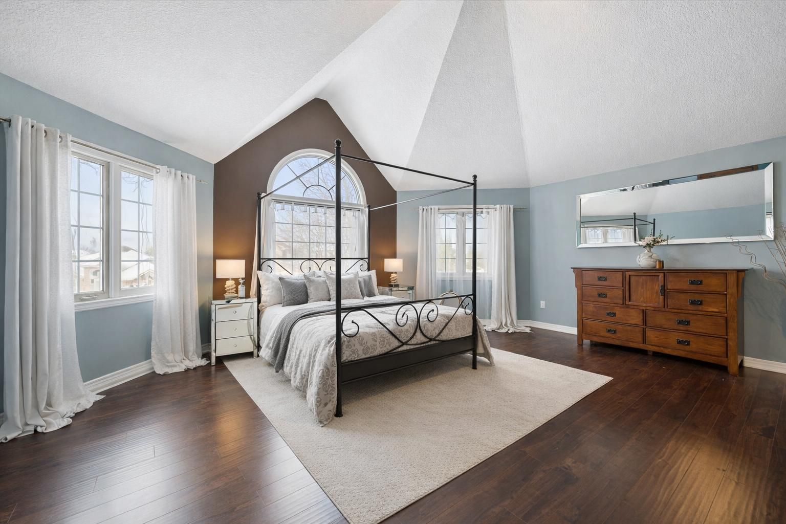 Executive 4-bdrm home set on large treed lot in one of guelph's most sought-after family neighbourhoods! Surrounded by mature trees & generous lot this property offers privacy, space & timeless appeal in an established community. Step inside to 2-storey foyer w/skylight that fills entrance w/natural light. Main living area offers soaring ceilings & wall of oversized windows. Rich hardwood floors adds warmth & flows seamlessly into dining room, ideal for hosting dinners, holidays & special occasions. Family room is anchored by elegant fireplace creating warm & inviting space. Oversized windows offer scenic views of backyard. This space opens to eat-in kitchen w/white cabinetry w/glass accents, stone backsplash, corian counters & top-tier s/s appliances w/gas stove. 2-tier breakfast bar offers seating for casual dining. Dinette area has sliding doors leading to back deck creating effortless indoor-outdoor flow. 2pc bath & laundry complete the level. Upstairs a generous loft overlooks the main living area & offers versatile space for office, playroom, secondary living area or teen retreat. Primary bdrm w/vaulted ceilings, w/i closet & ensuite w/modern dbl-sink vanity, soaker tub & w/i glass shower. 3 add'l bdrms all w/hardwood & oversized windows share 4pc main bath w/skylight & shower/tub. Finished bsmt w/rec room, 3 large windows, pot lighting, 3pc bath & b/i bar, ideal for entertaining! Bonus room provides flexibility & works well as office, gym or playroom w/potential to add a window & create 5th bdrm! New furnace & ac installed in summer 2025! Relax on huge deck overlooking fully fenced backyard surrounded by mature trees. Perfect setting for entertaining, family gatherings or quiet peaceful evenings. Short walk to colonial dr park & entrance to network of trails. Walking distance to sir isaac brock ps one of guelph's top-rated schools & st. Ignatius of loyola catholic school. Mins from restaurants, groceries, fitness, lcbo & more. Easy access to 401 for commuters