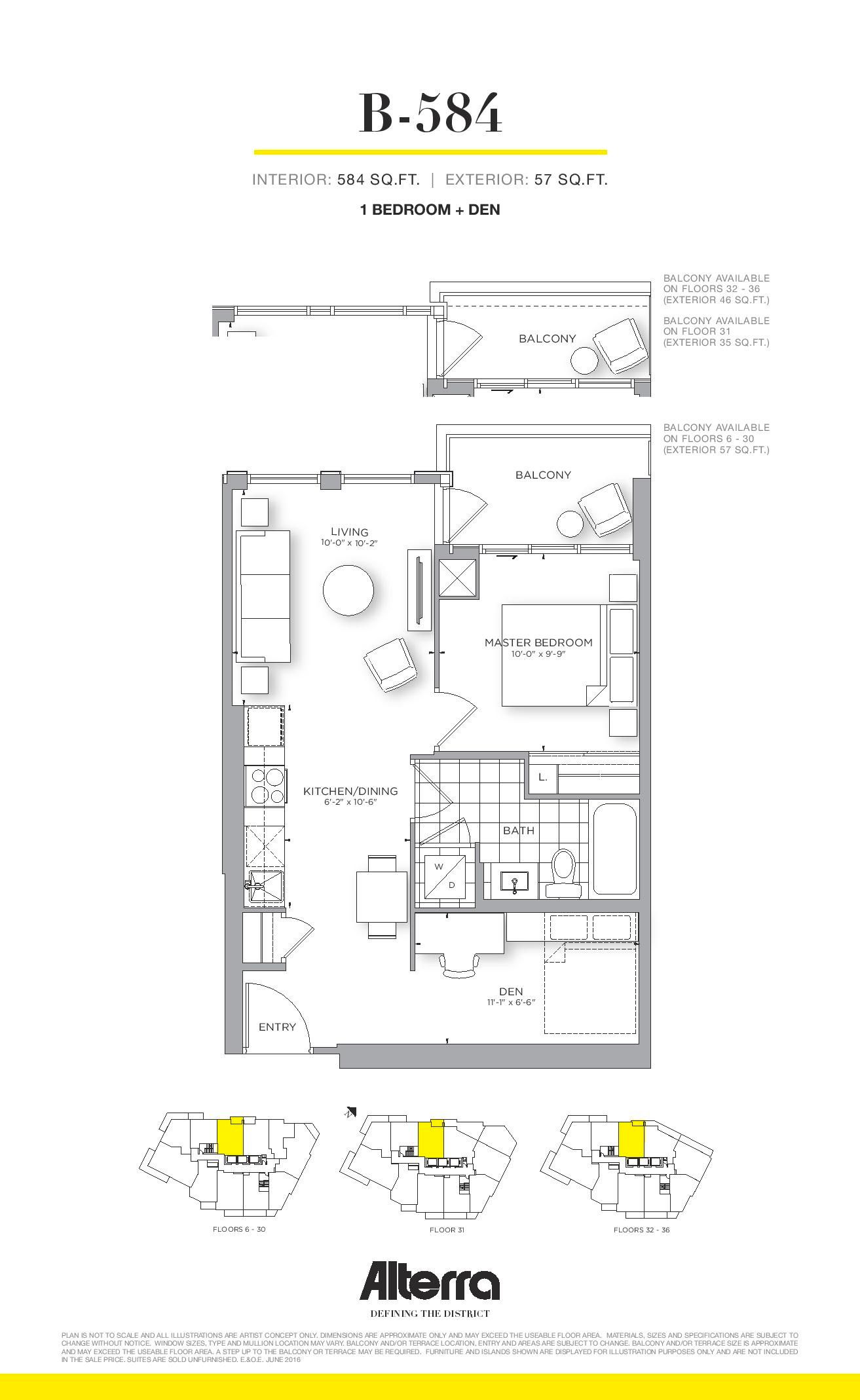 • Bright unit with floor-to-ceiling windows and open balcony for great city views.