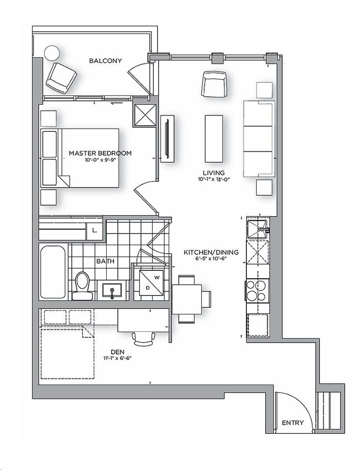 • Stylish 1+1 bedroom condo with flexible den for office or second bedroom.