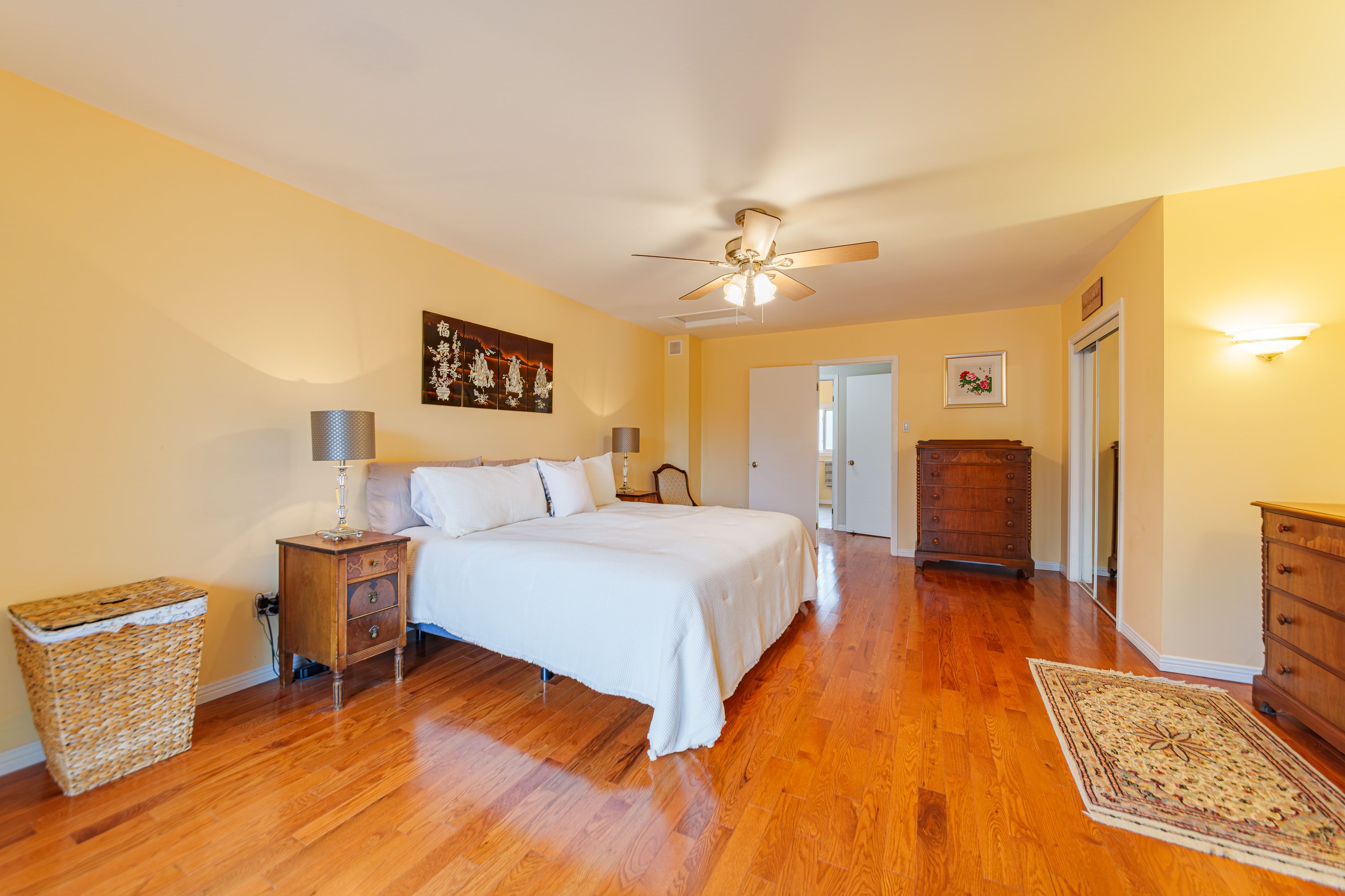 • Impressive primary suite with private lounging area and two closets.
