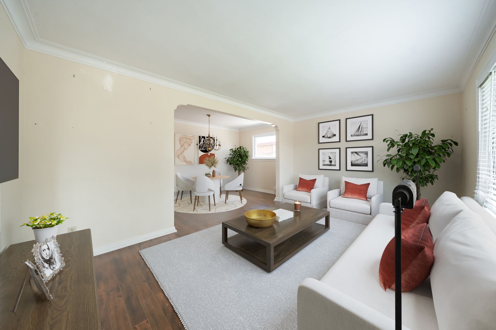 • Hardwood floors and large windows create a welcoming atmosphere.