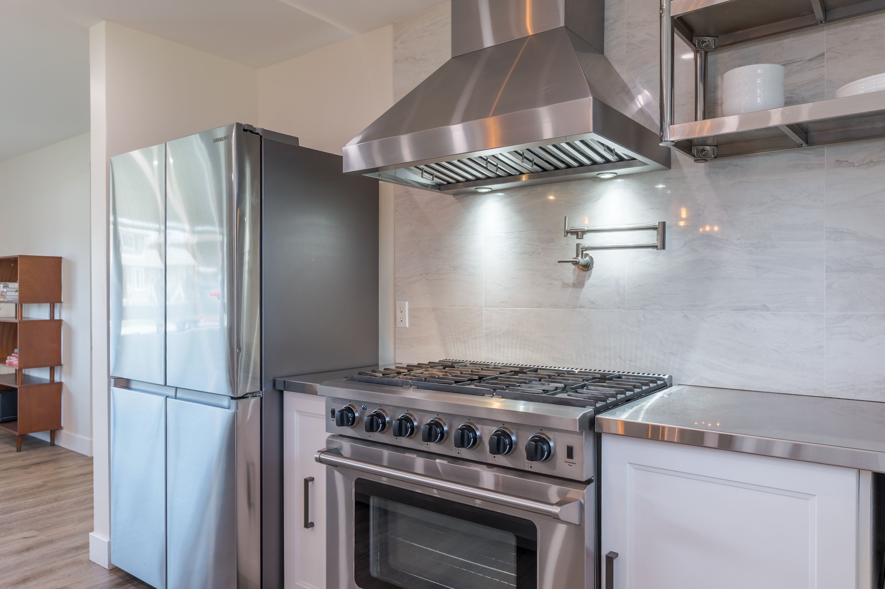 • Custom kitchen featuring oversized island and premium appliances.
