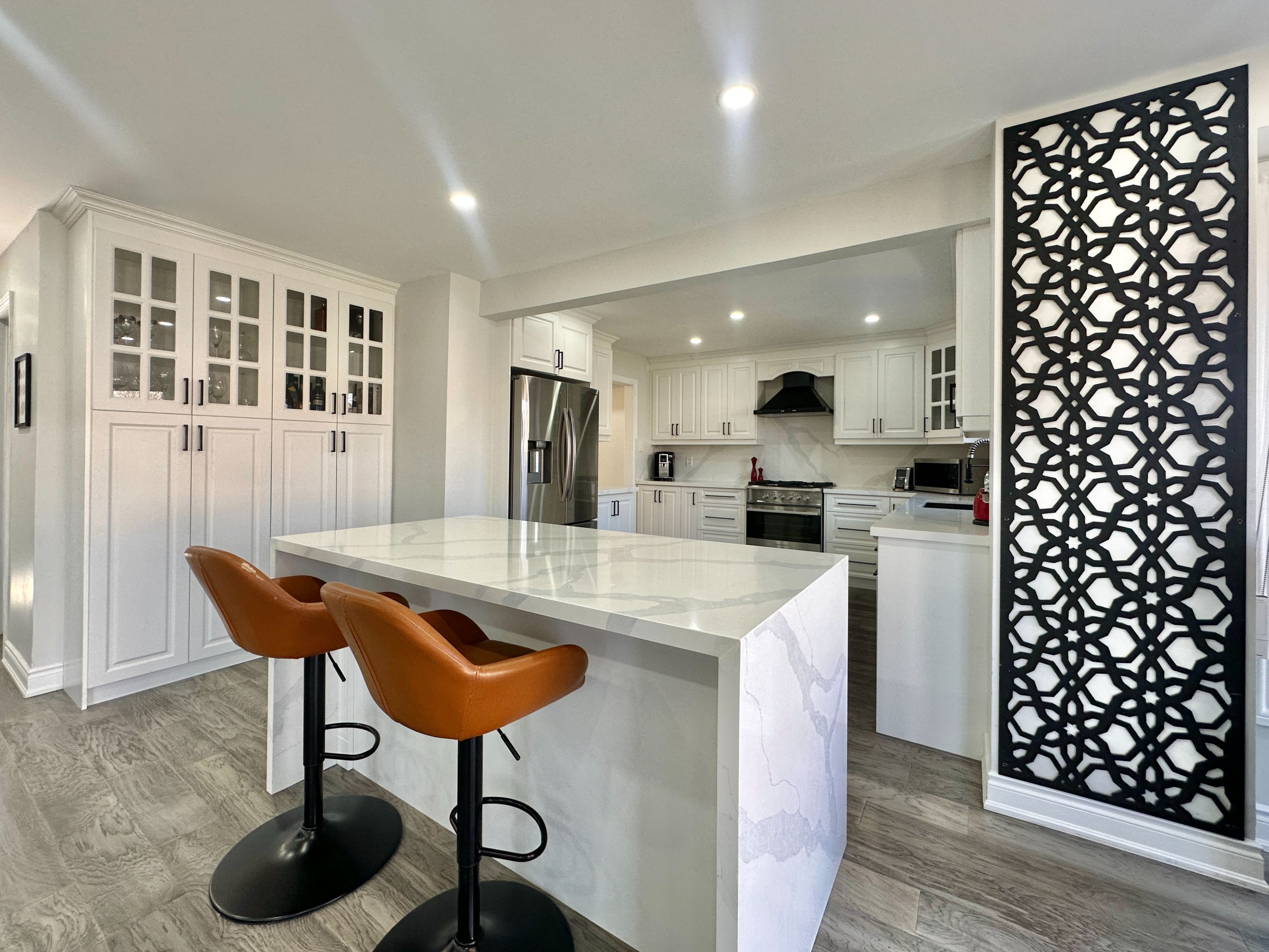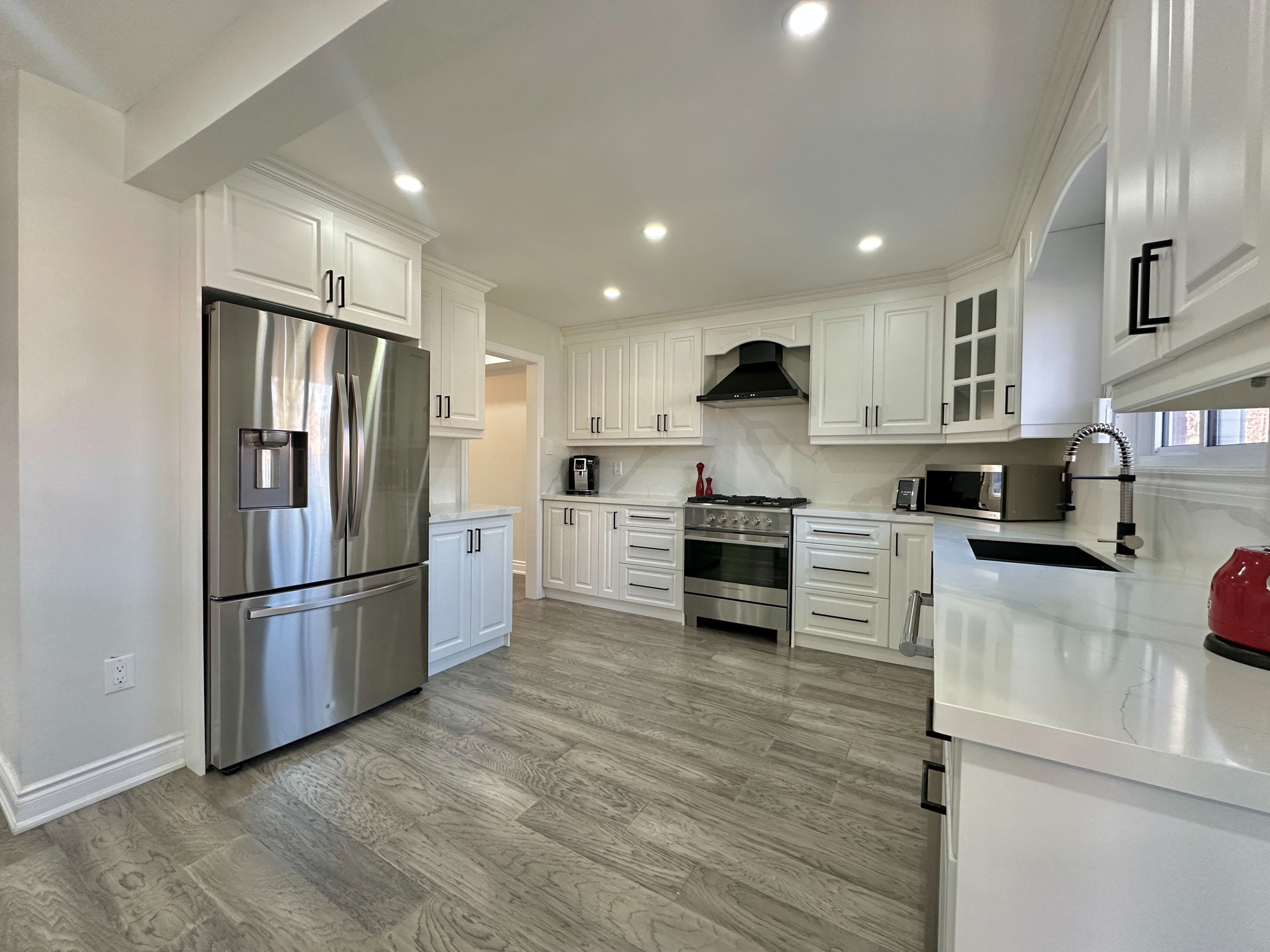 • Modern kitchen with stainless steel appliances and inviting breakfast area.