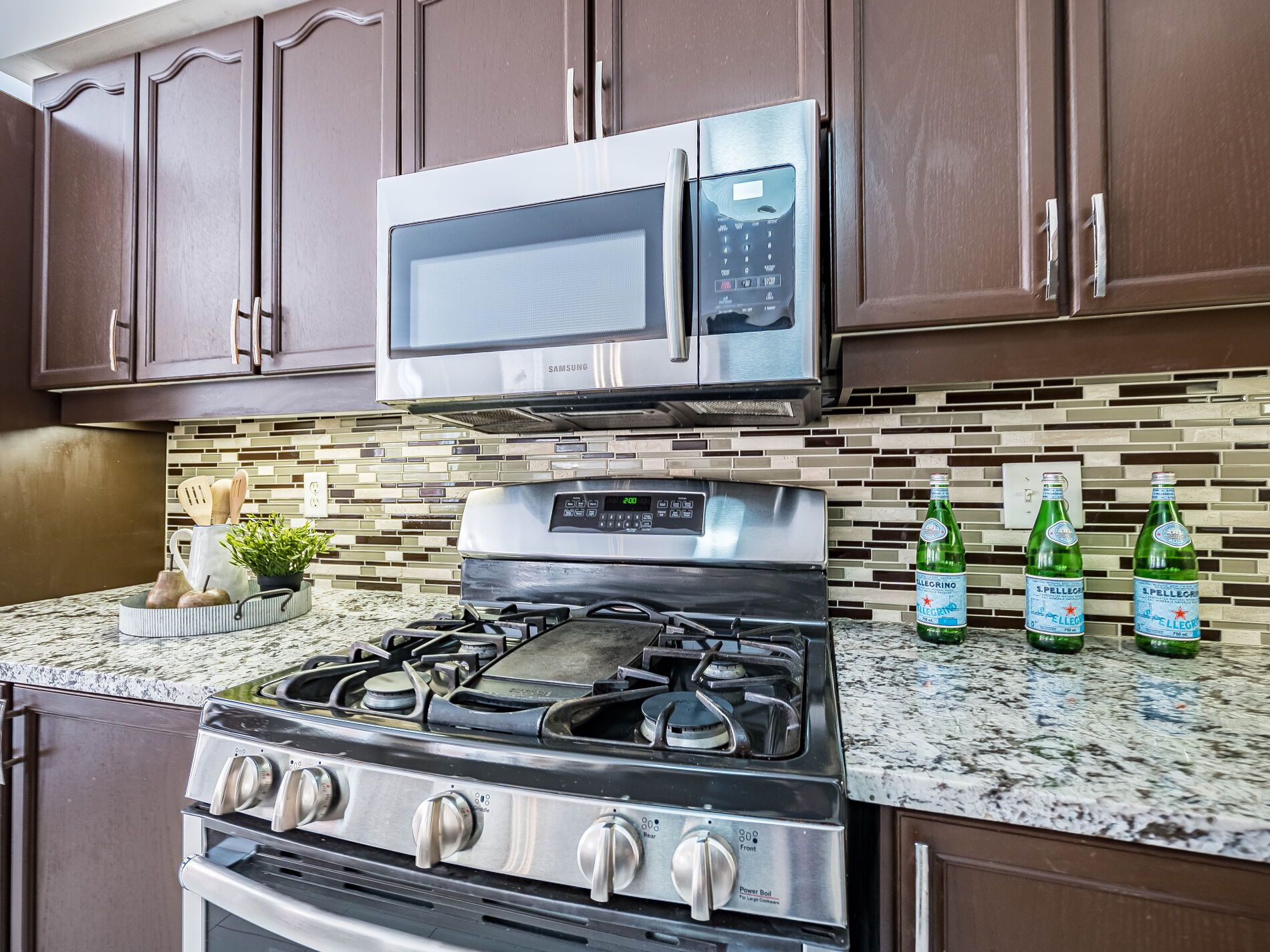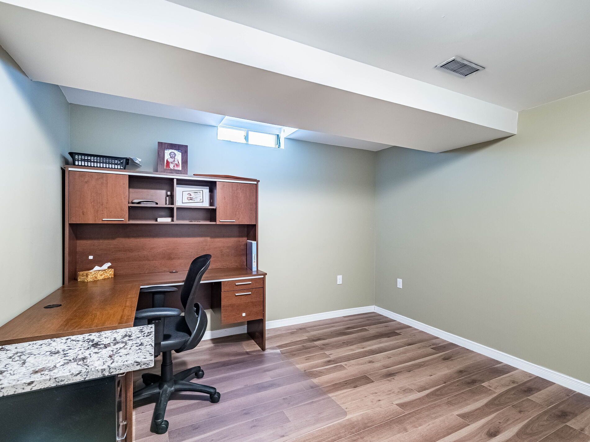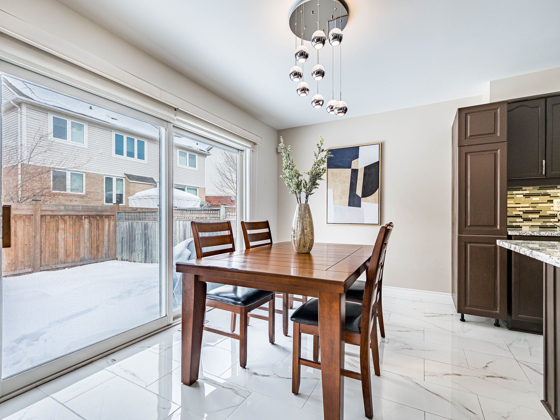 • Chef's eat-in kitchen with granite countertops and a walkout to the backyard.
