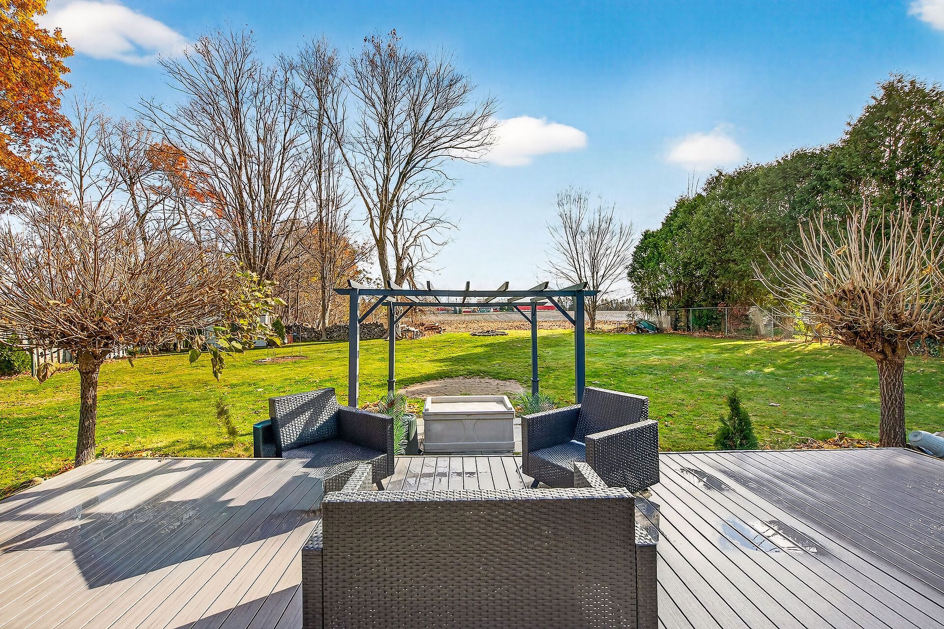 • Entertainer's dream yard with composite deck and serene country views.