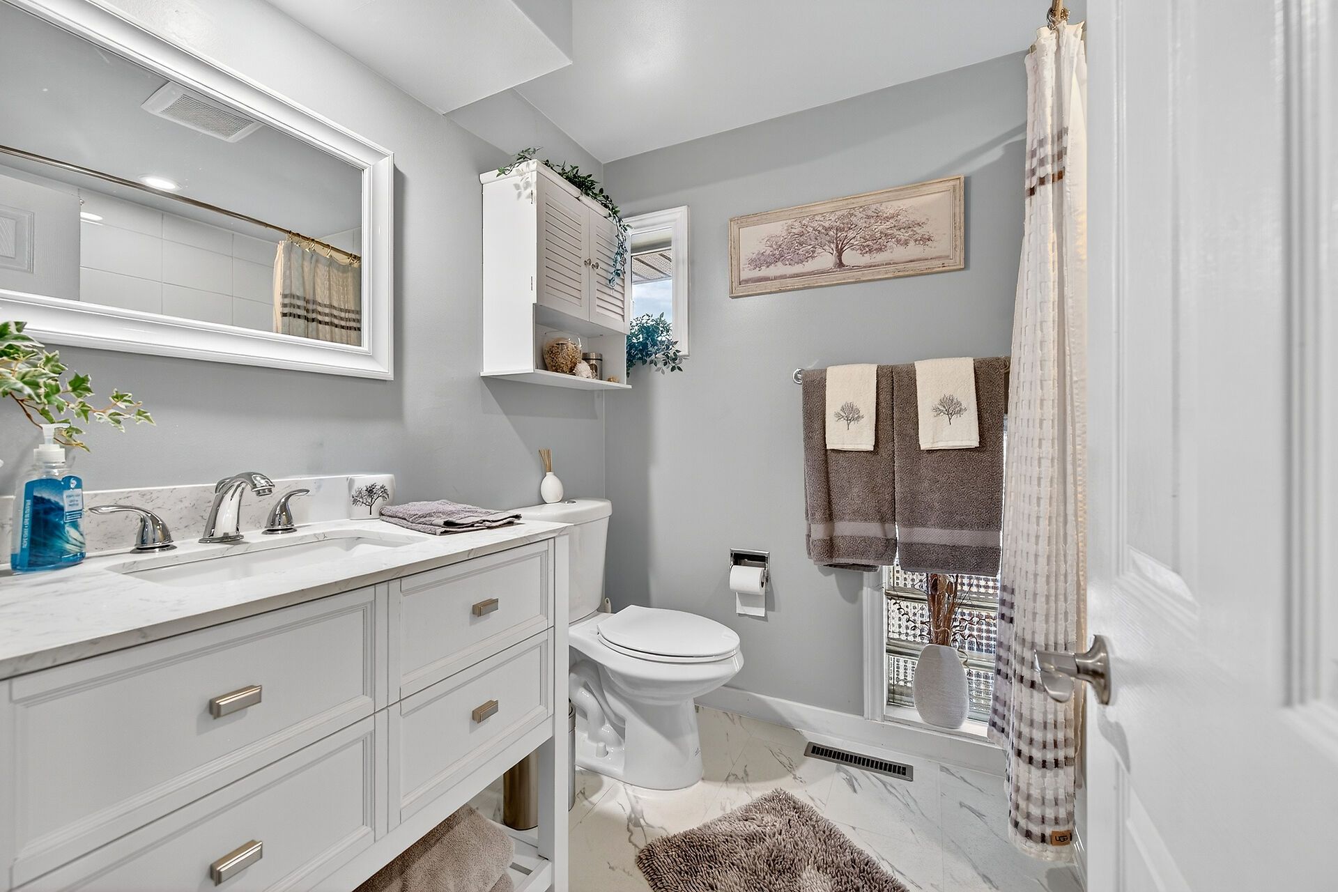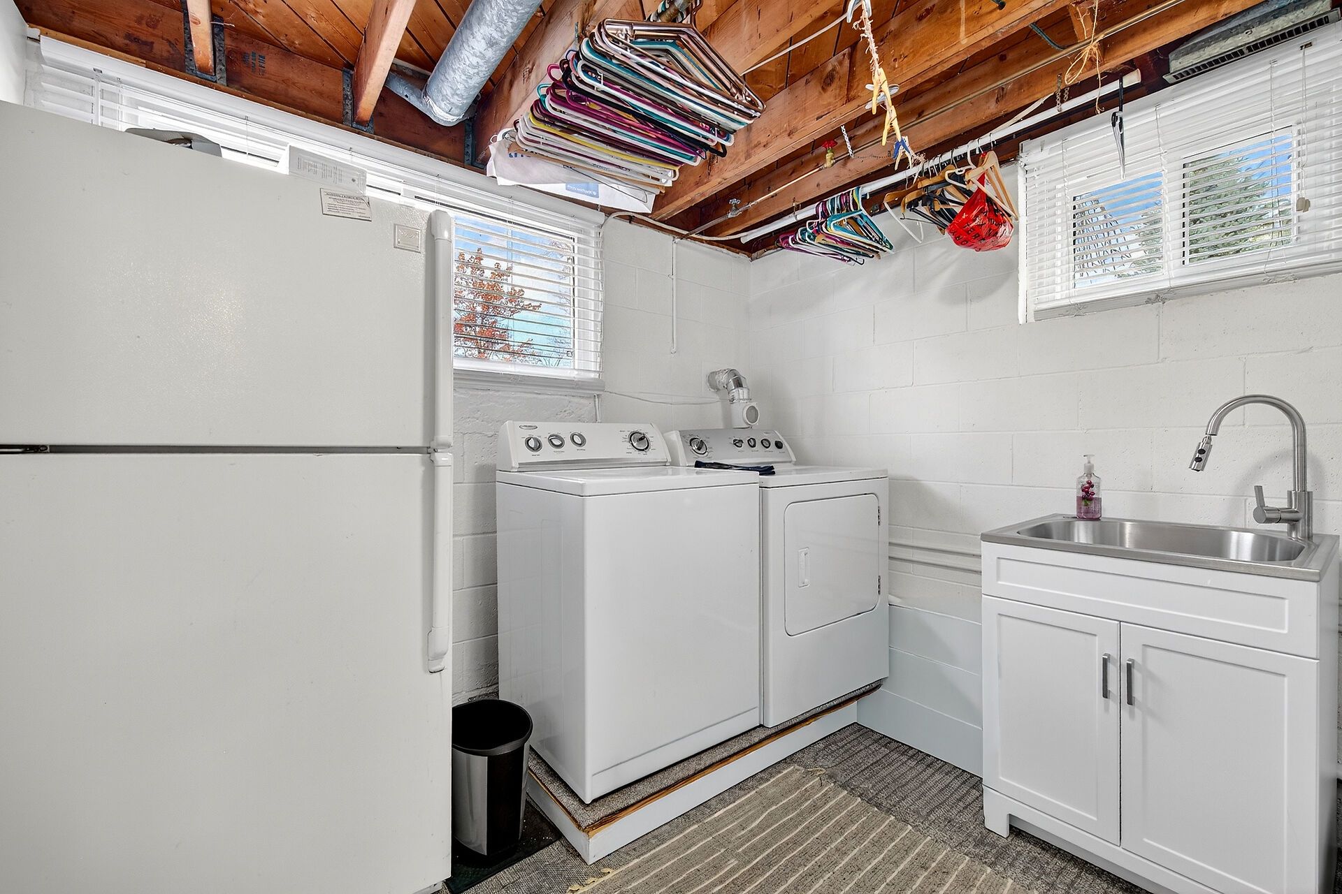 • Finished basement includes rec room, additional bedroom, and extra bathroom.