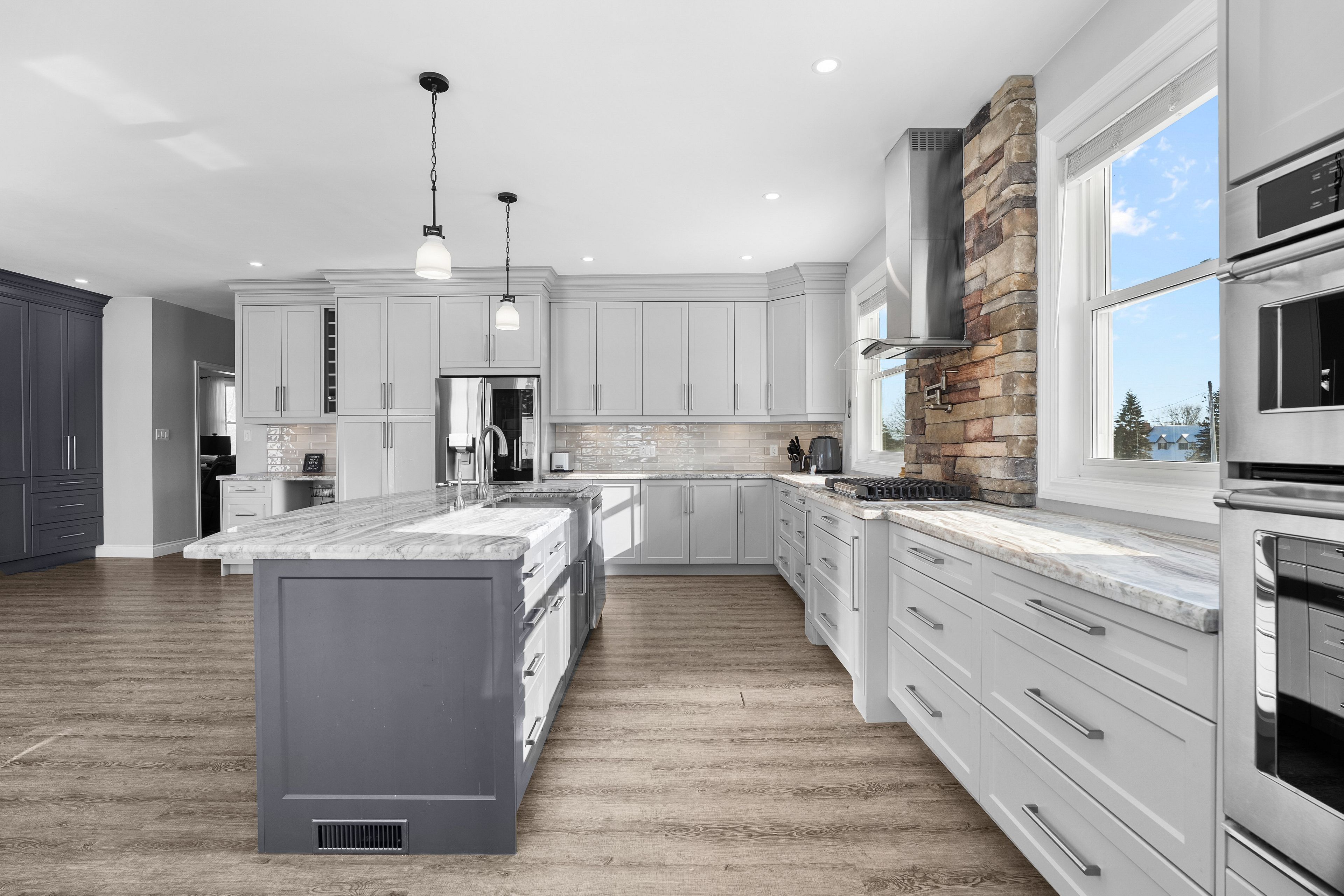 Beautiful oversized bungalow with 3+1 spacious bedrooms, 4 baths, and an expansive finished basement, set on just under an acre. A perfect blend of rural tranquility and modern convenience, located minutes from port perry & uxbridge. Enjoy privacy without sacrificing access to amenities. Functional open-concept layout with smooth ceilings throughout, featuring a meticulously updated kitchen with a large quartz island, premium propane cooktop, built-in wall oven & high-end appliances. The kitchen also offers a floor-to-ceiling pantry, pot lights, instant hot-water pot filler, and a sun-filled eat-in dining area with walkout to the backyard patio. A cozy gas fireplace anchors the open living and dining space. The primary suite is a luxurious retreat with walk-in closet, 5-piece ensuite, and direct access to the covered hot tub for year-round relaxation. Two additional bedrooms and a 4-piece bath complete the main floor. The finished basement with above-grade windows offers flexible space for multi-generational living or entertaining, with additional bedroom(s), full bath, a den, second fireplace, and plenty of storage. True backyard oasis with landscaped grounds, fenced patio, and in-ground pool. Additional features include an invisible dog fence, fire pit, mature trees, and an extra-deep insulated, heated double garage with extended workspace. Paved driveway parking for 8+ vehicles. Plus, a 20kw hard-wired generator powers the home during outages. Your dream bungalow awaits!