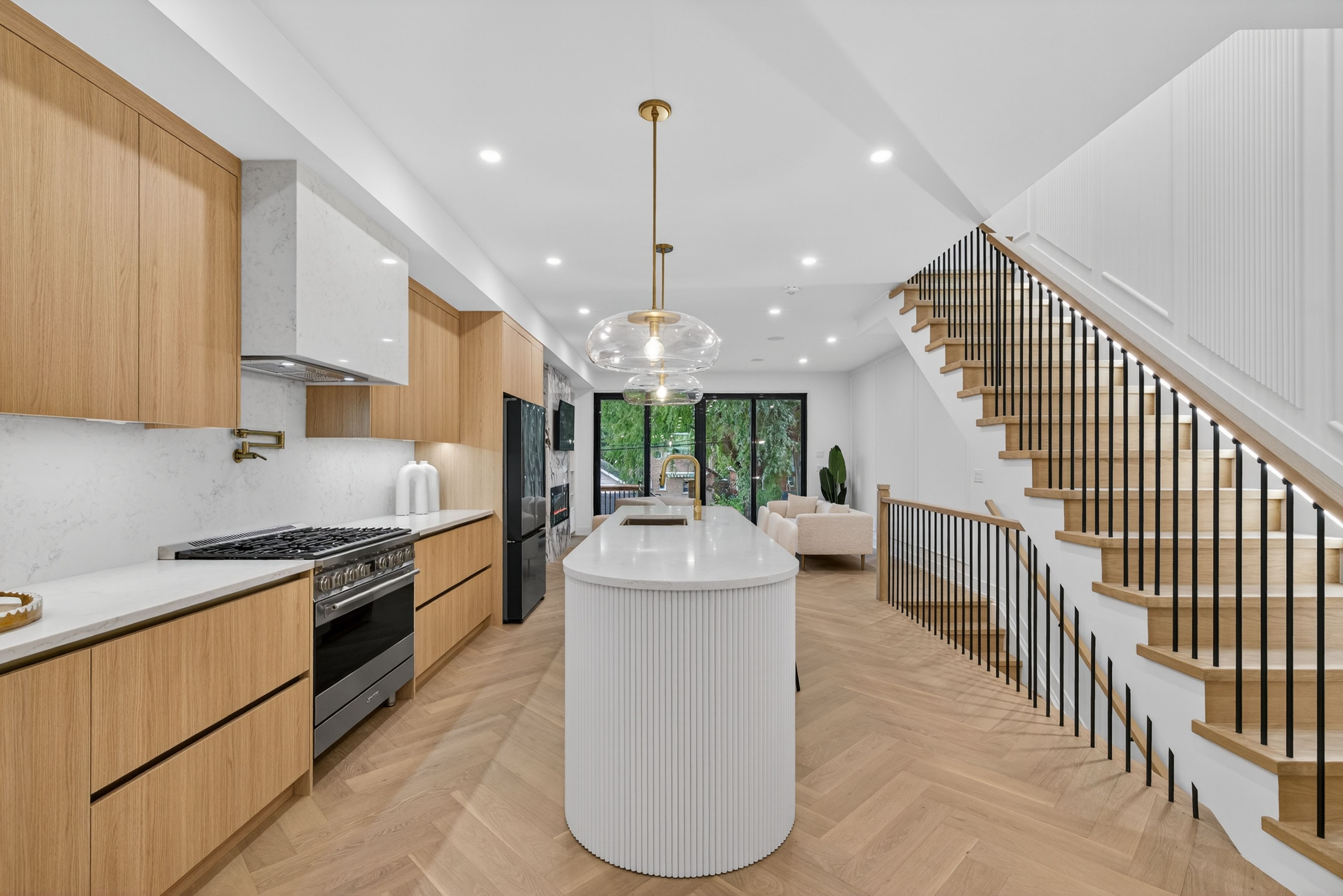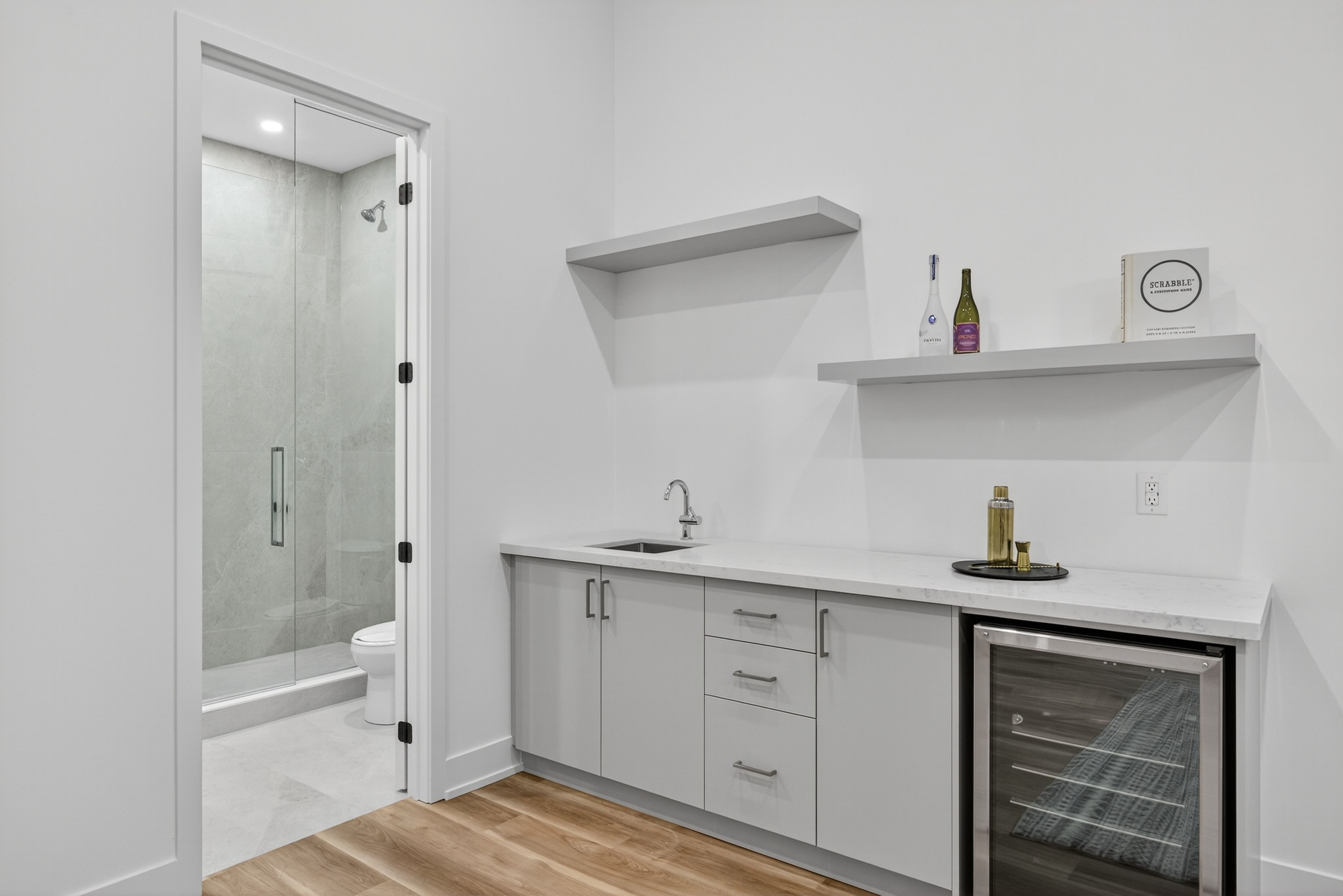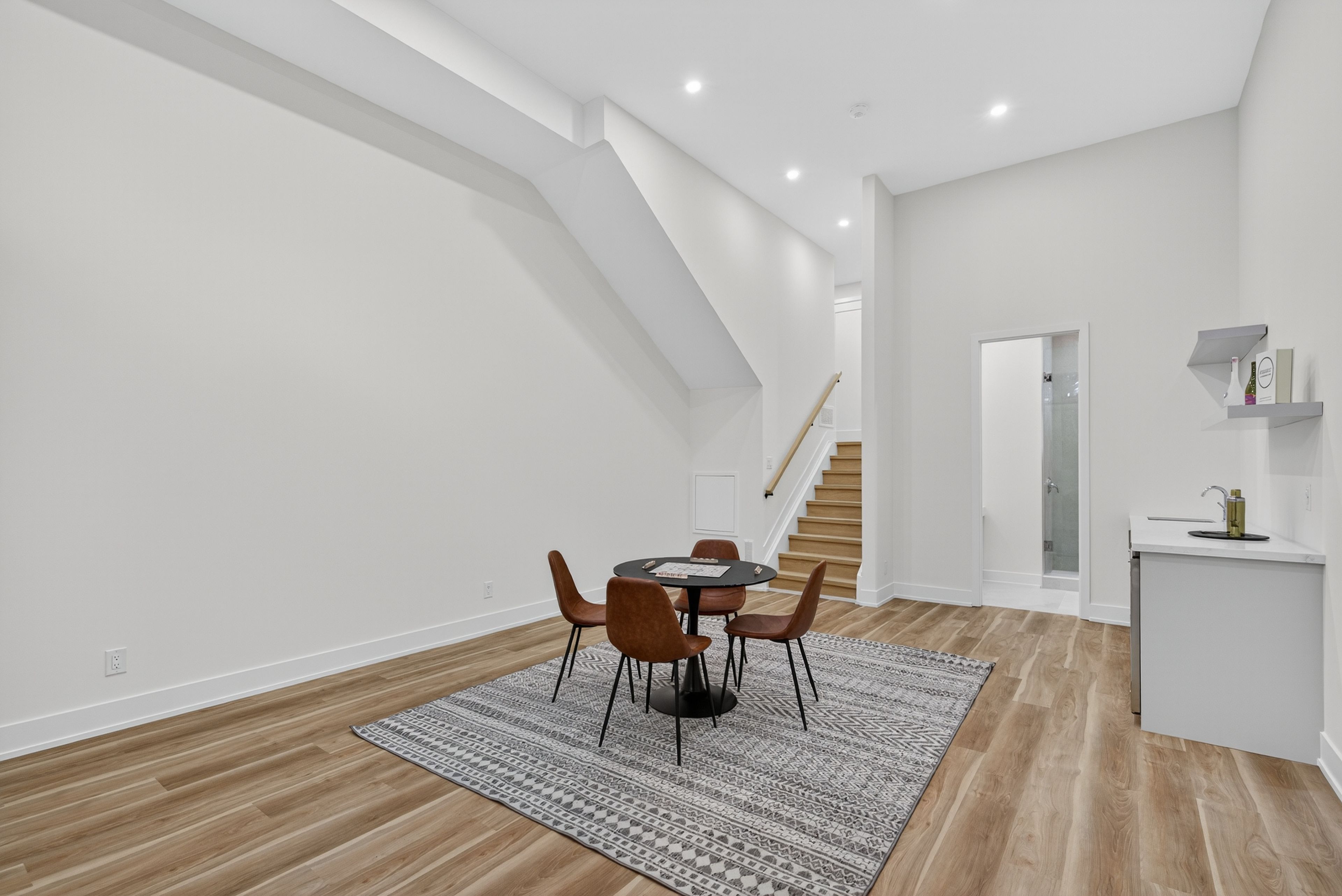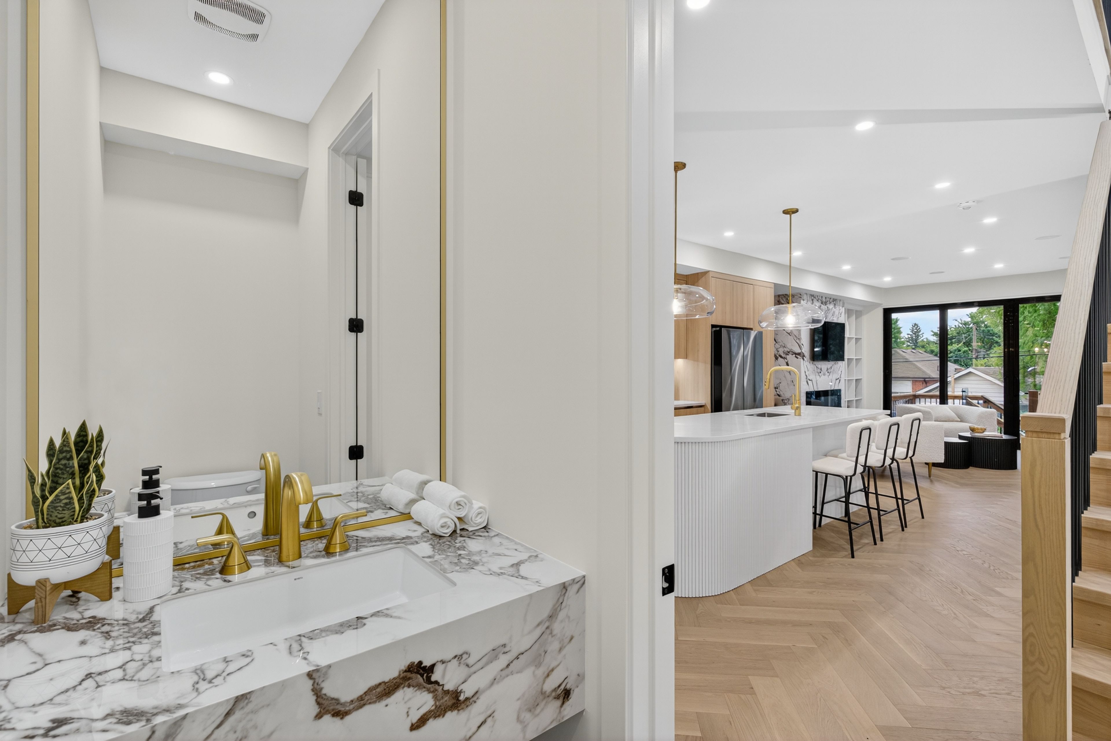 • Walkout basement with a stylish bar, great for hosting.