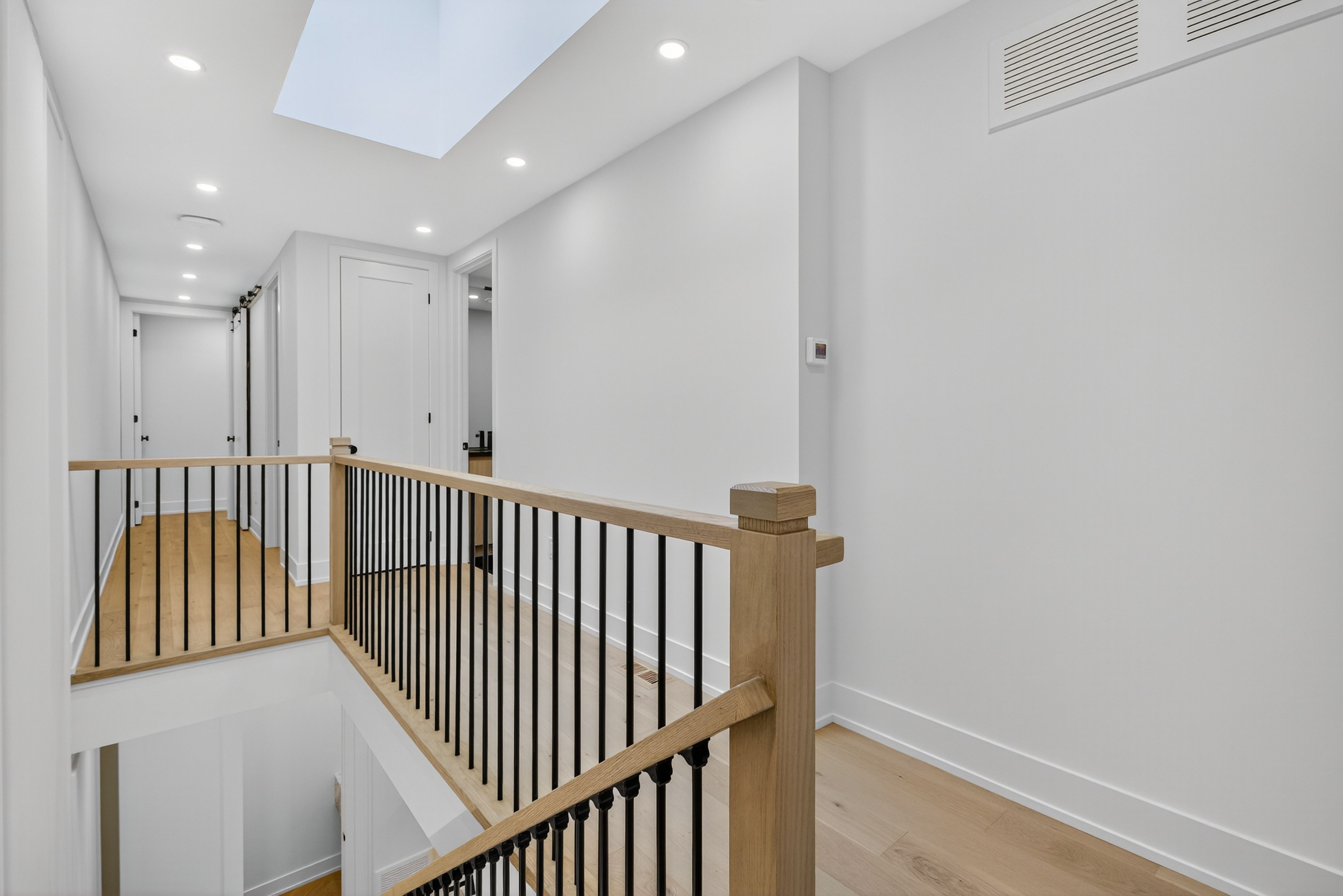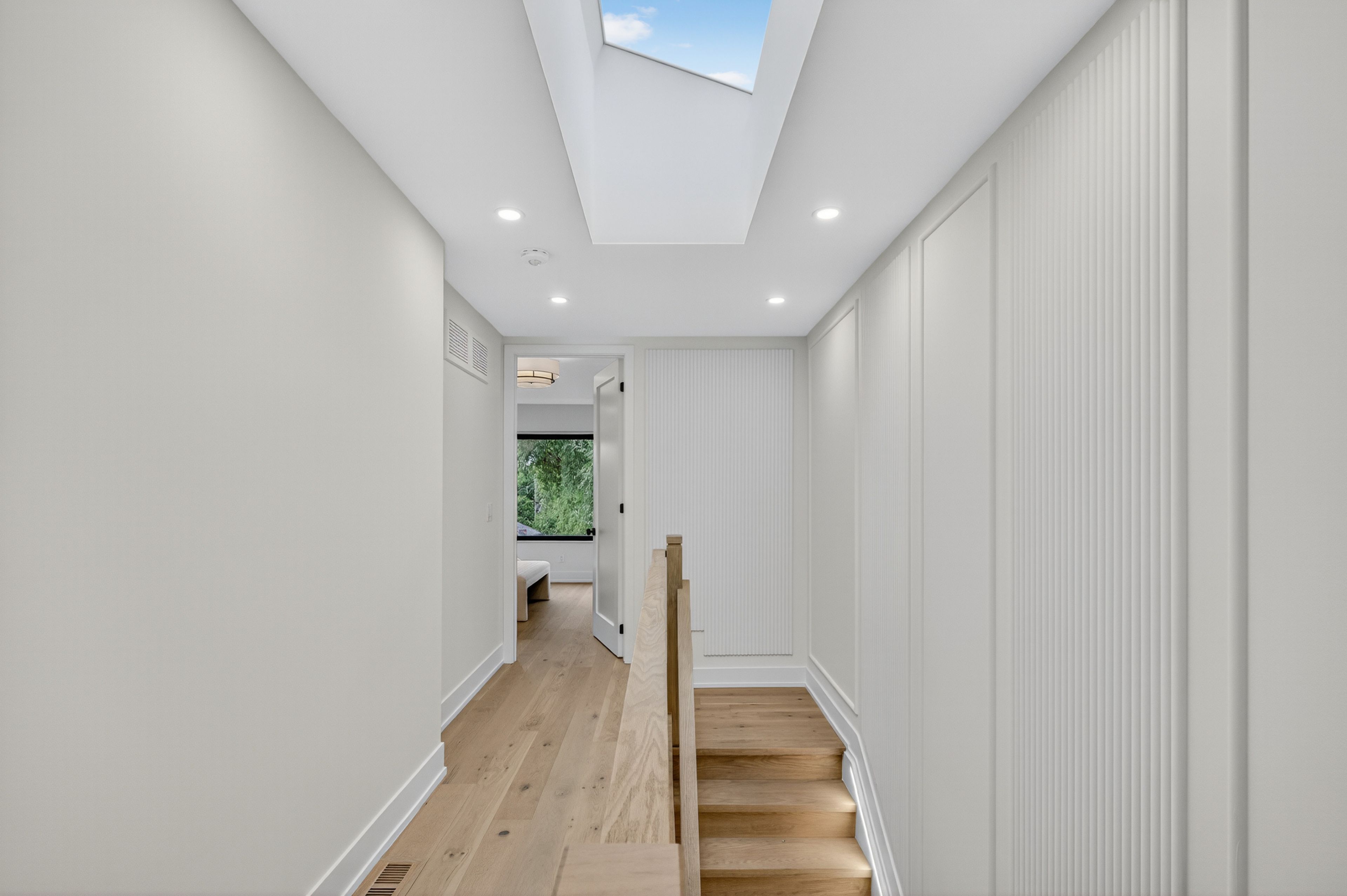 • Bright interior with skylights and herringbone hardwood floors.
