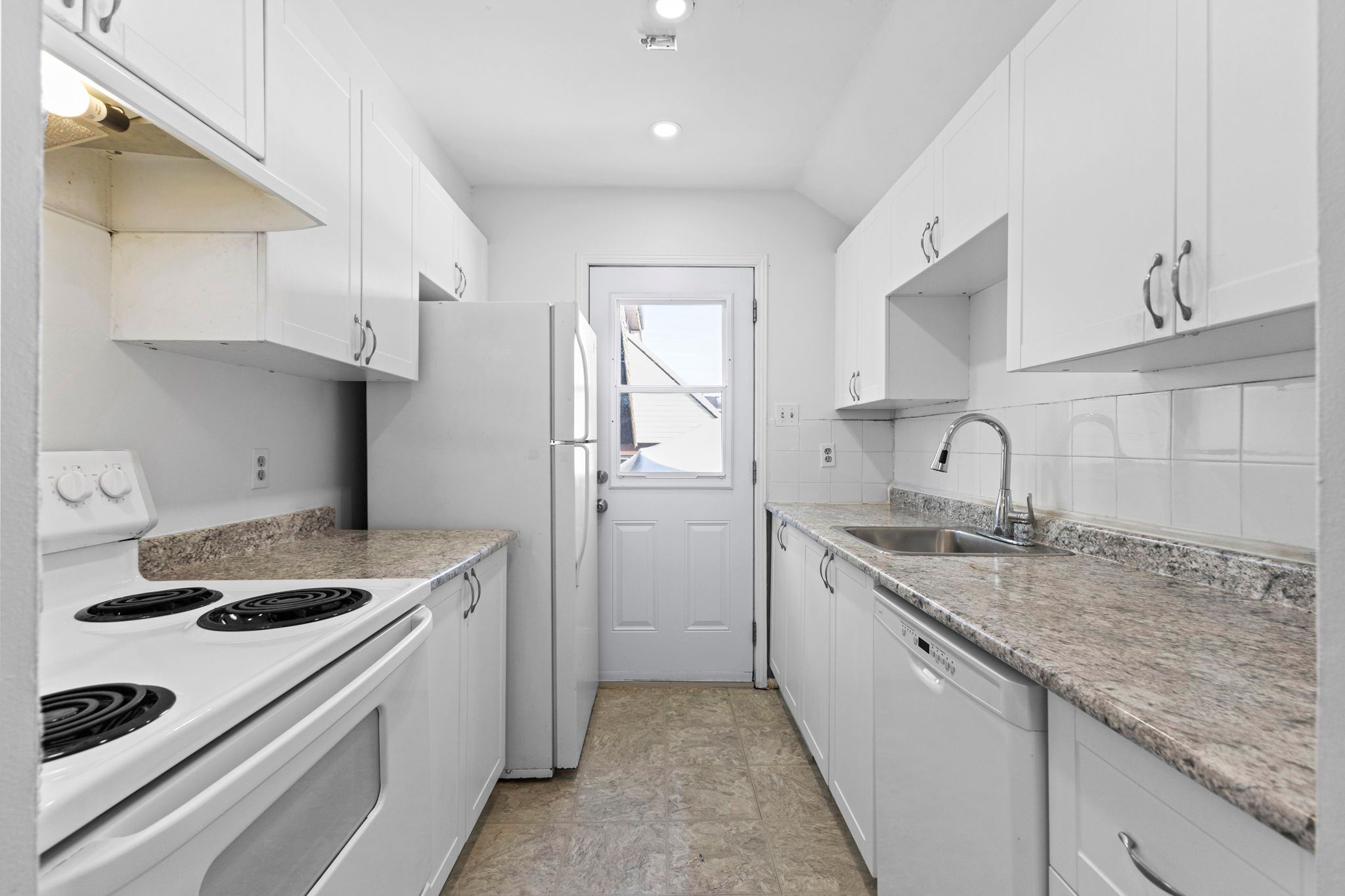 • Galley kitchen with direct access to the backyard.