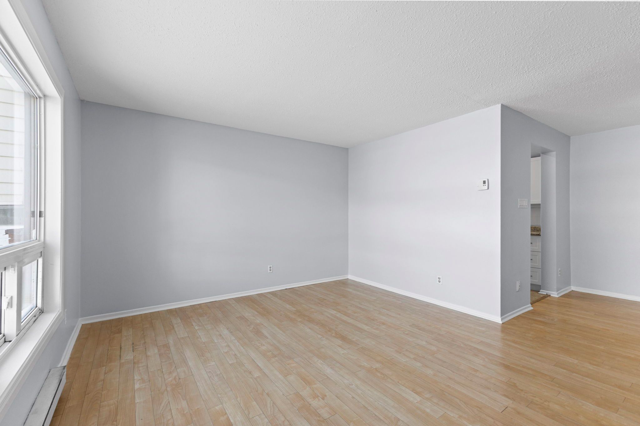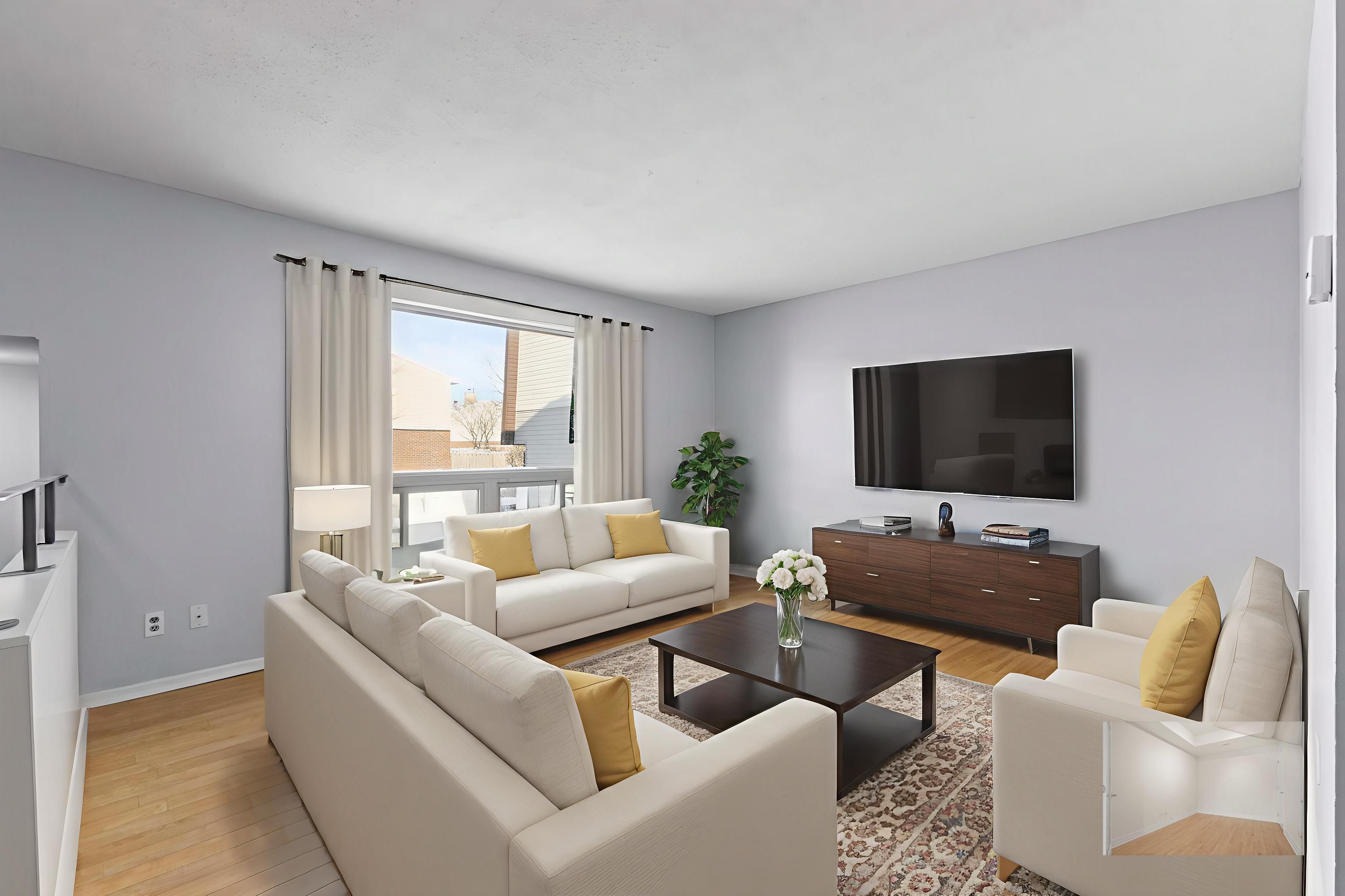 • Bright living room with large window for natural light.