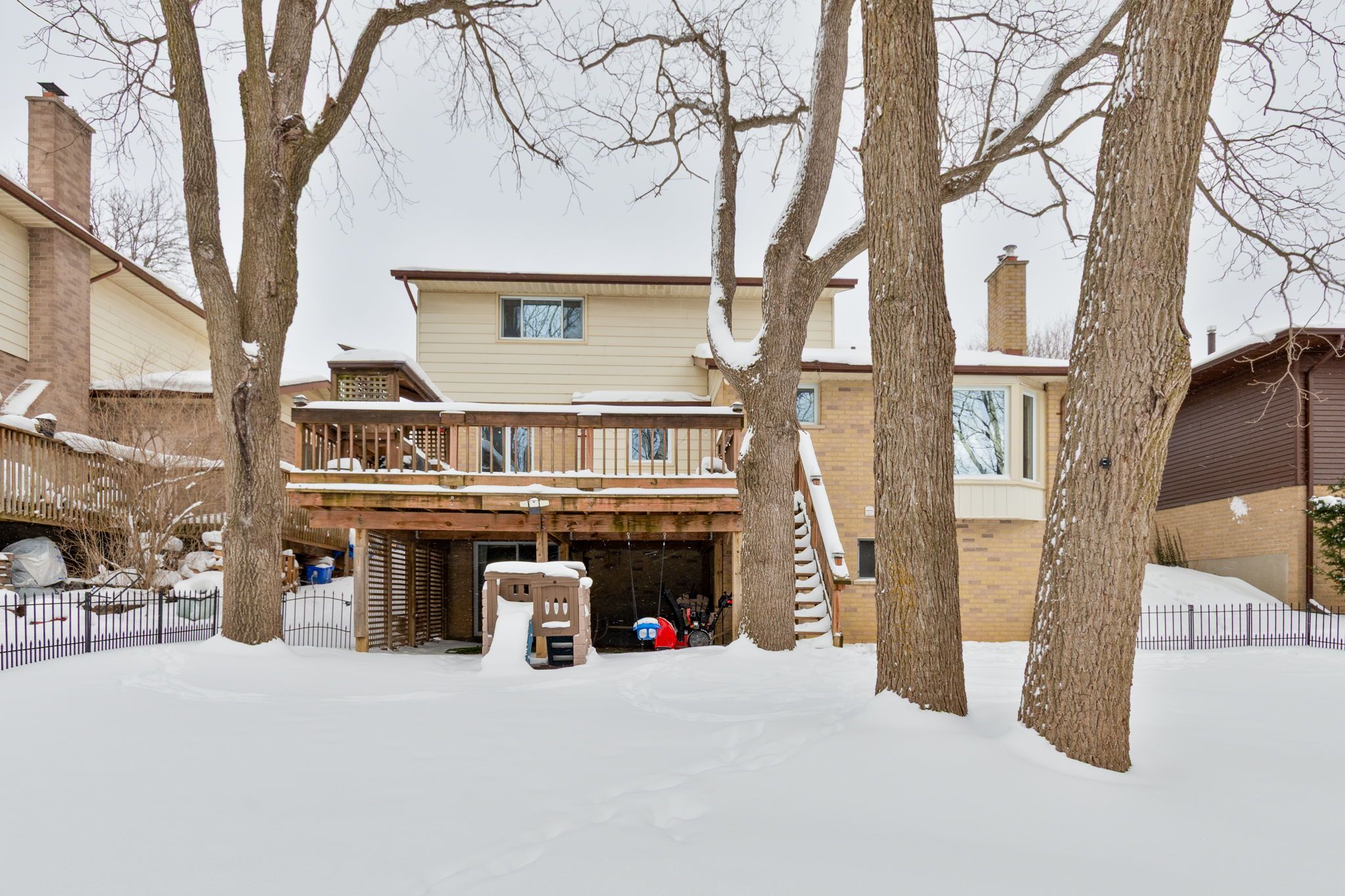 Welcome to 16 acorn crescent, ideally located on a quiet crescent backing onto the scenic medway valley with beautiful ravine and creek views. This well-maintained north-west london home offers three spacious bedrooms on the upper level, complete with a convenient cheater ensuite. The main floor features a functional kitchen with eat-in island, a bright great room highlighted by a wett-certified wood-burning brick fireplace and bay window that captures west-facing sunlight and serene ravine views. Additional living space includes a formal dining room, a secondary living room, and a practical mudroom with laundry and direct access to an oversized back deck-perfect for entertaining. The lower level offers two bonus rooms with walk-out access to the backyard, providing flexible space for a home office, gym, or playroom. Set on a rare west-facing ravine lot, this home is ideal for a growing family, a dog's dream and offers a peaceful natural setting rarely found in the city. A must-see property!