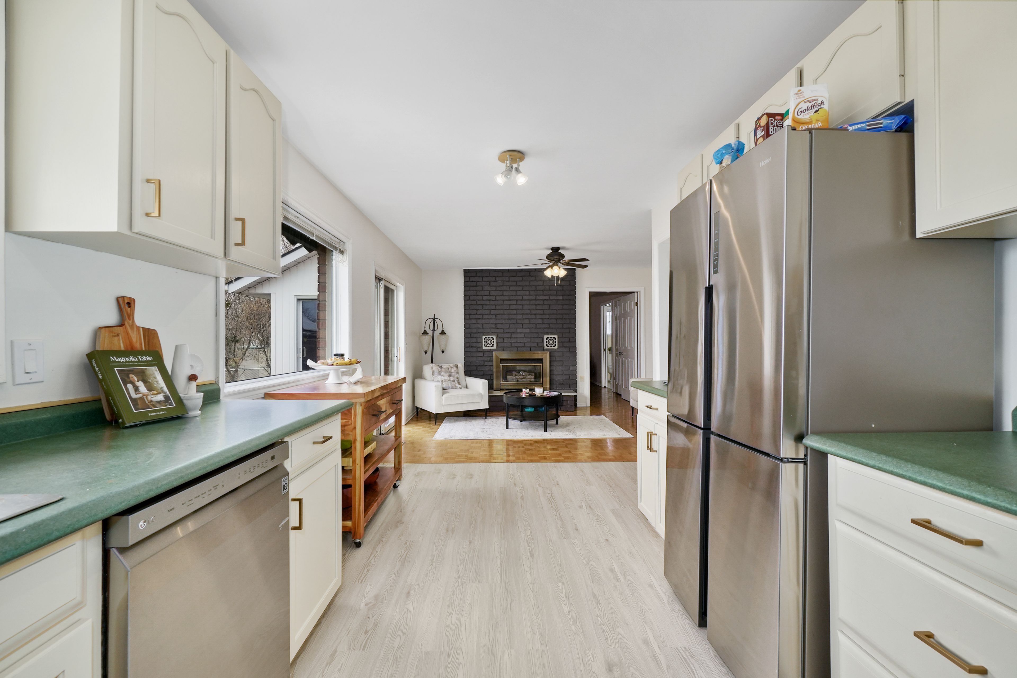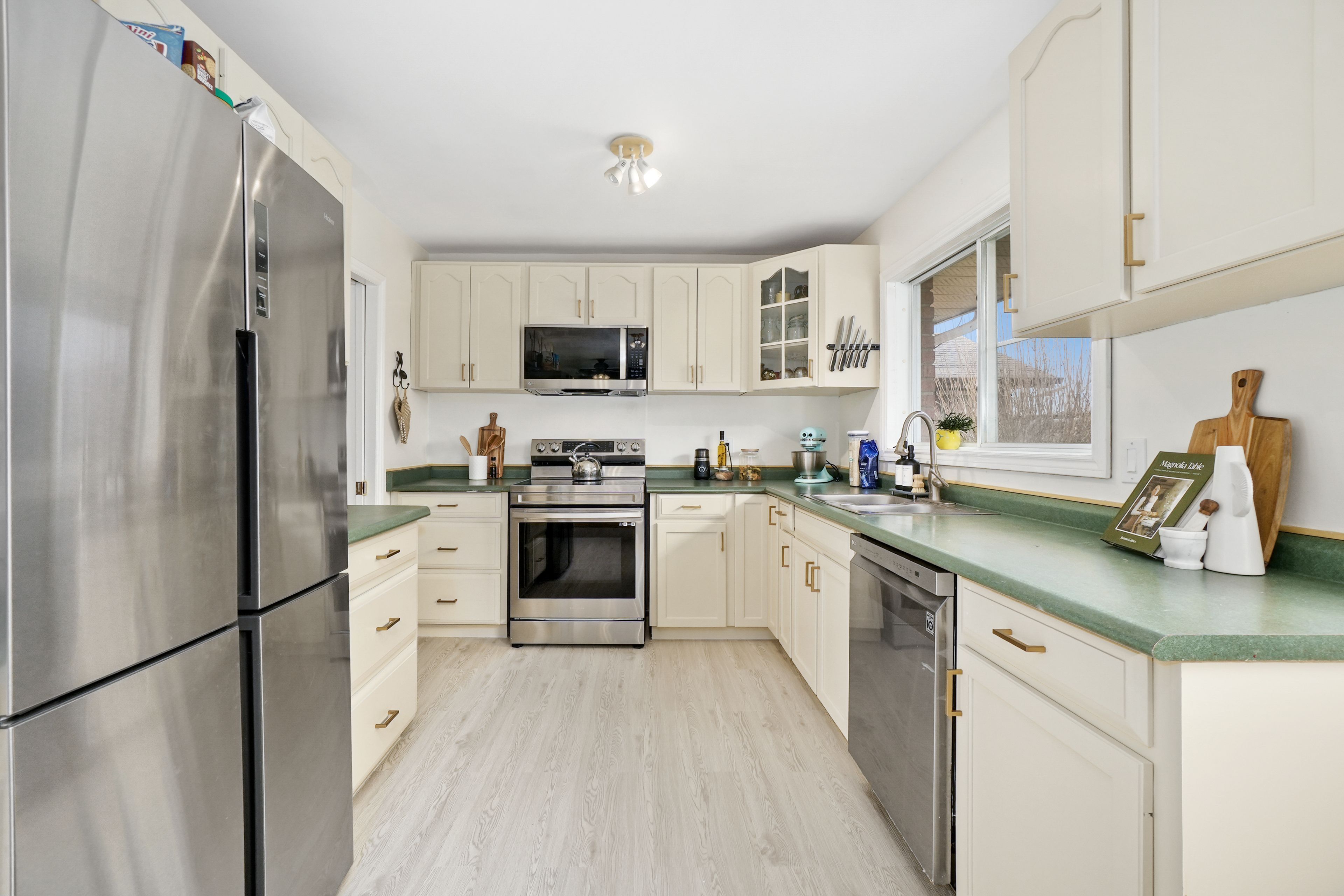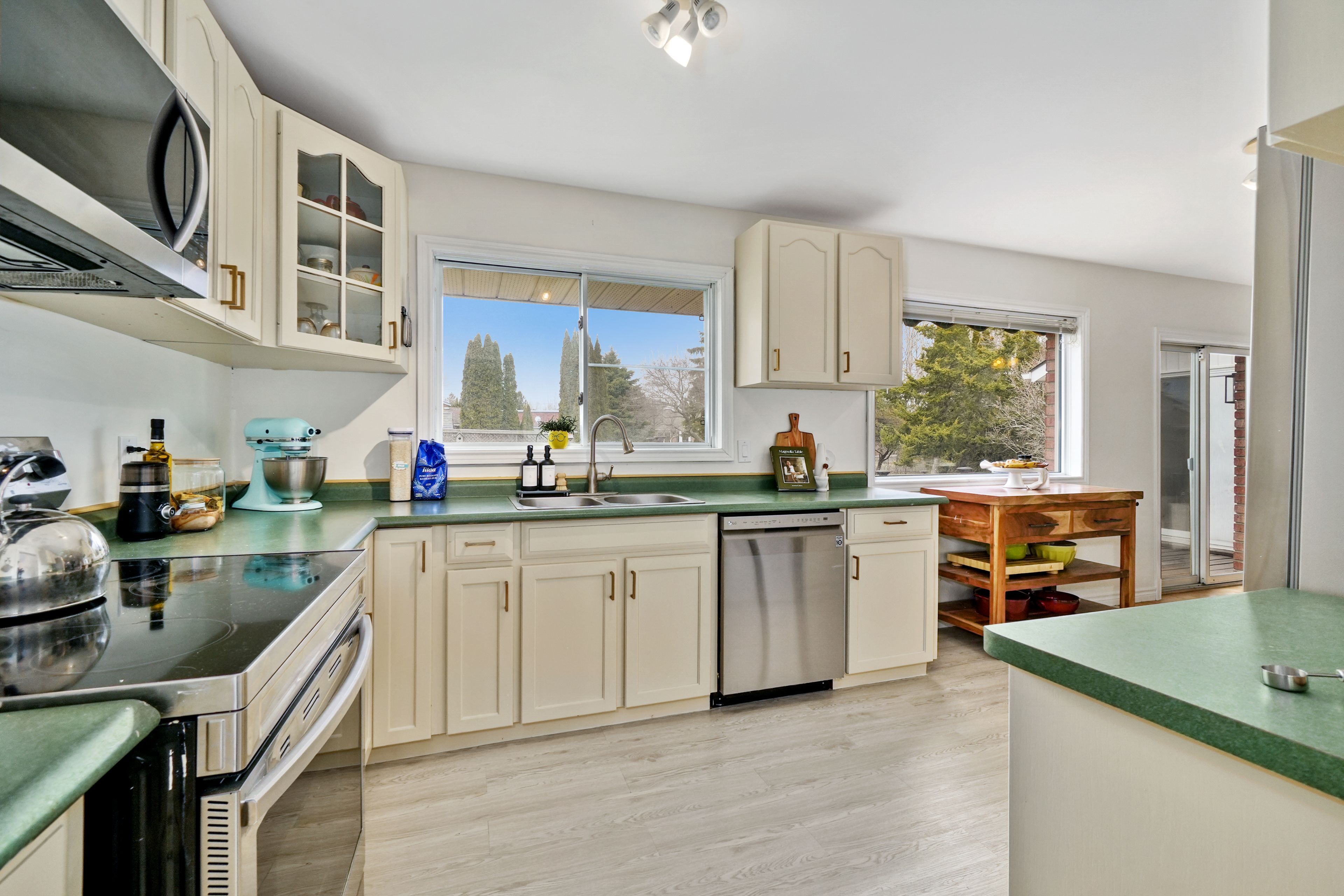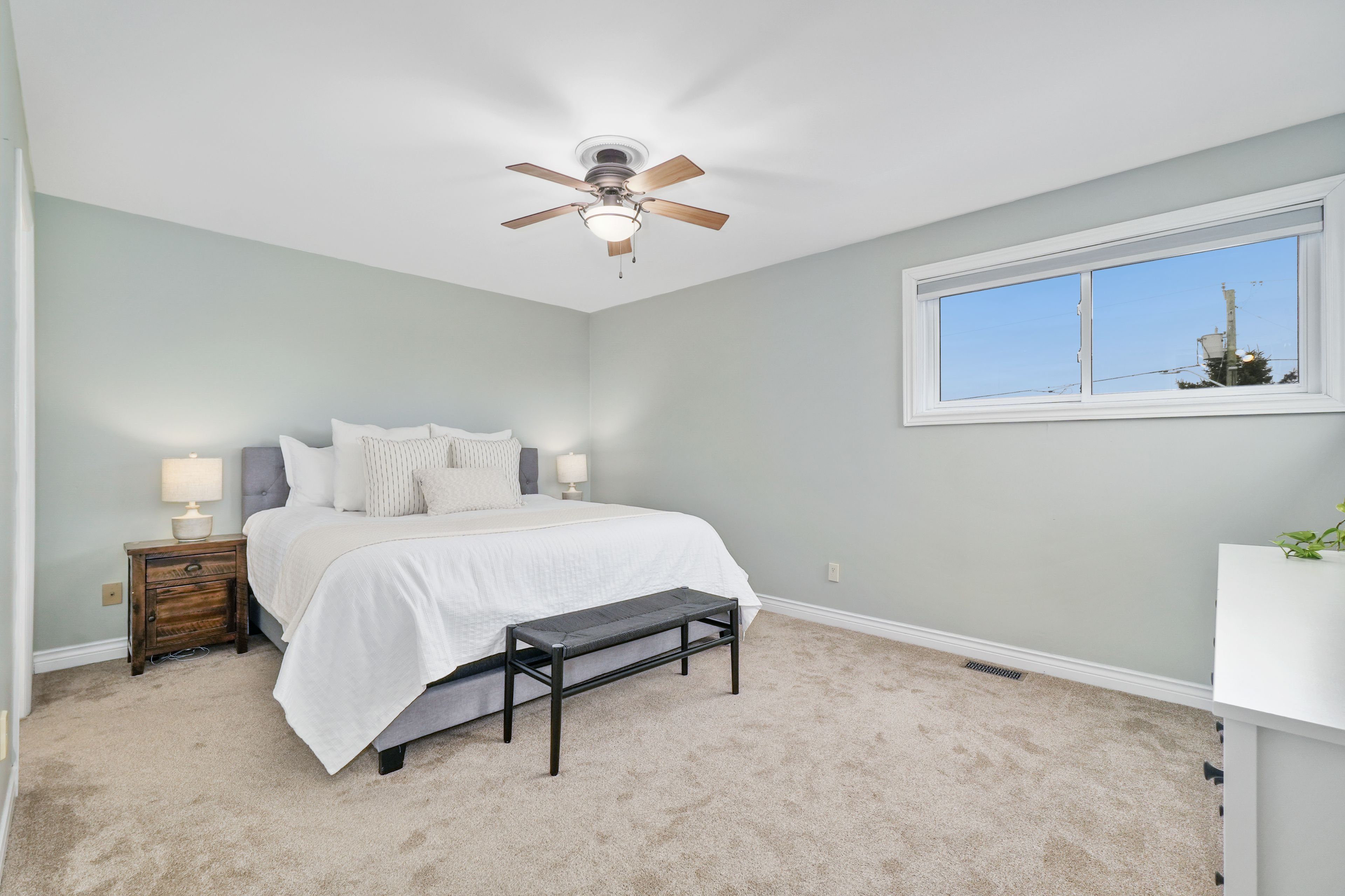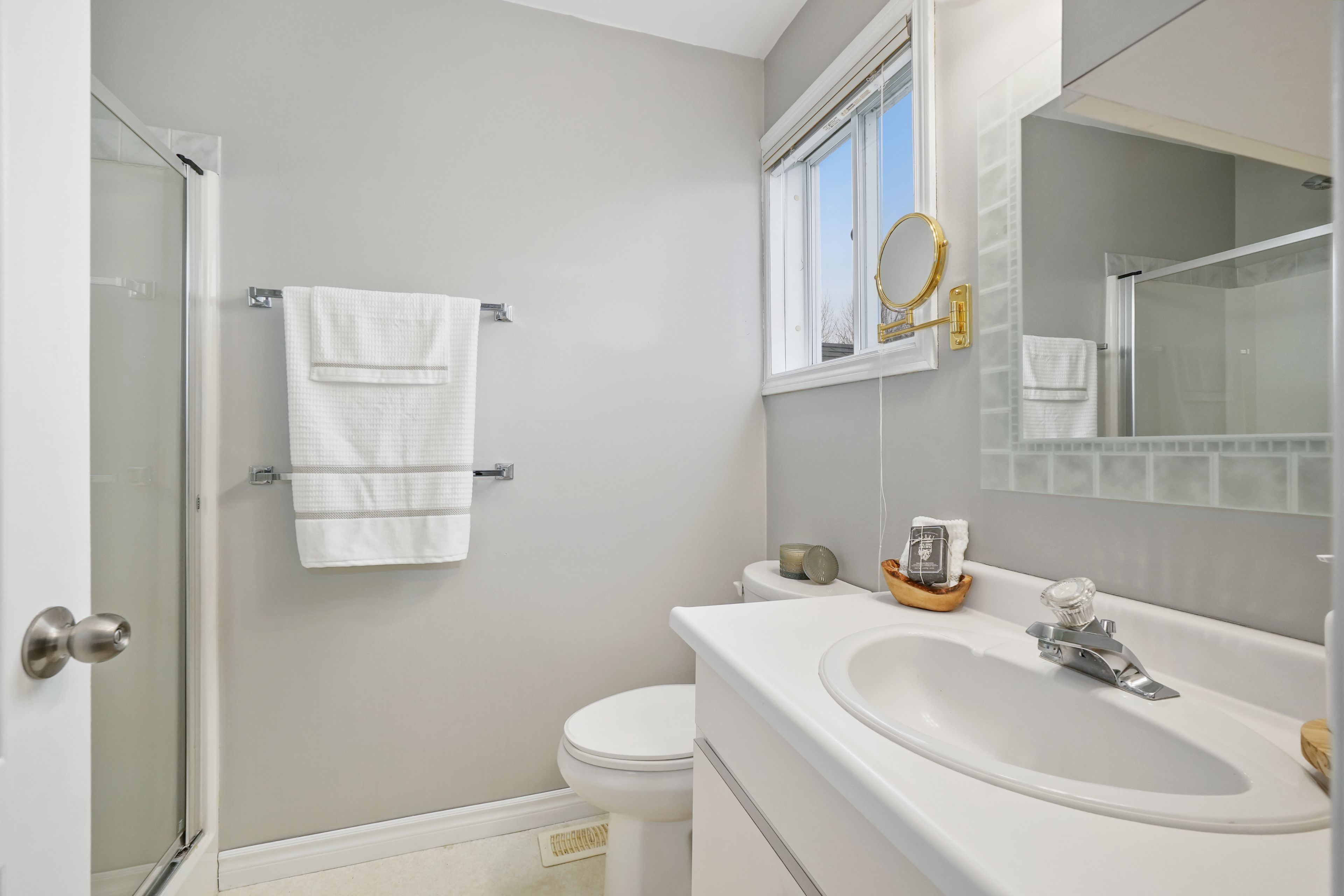 Just steps from the shores of lake ontario, this spacious two-storey home offers a rare combination of size, versatility, and deeded water access, making it an exceptional opportunity for larger families or multi-generational living at an attainable price point. The welcoming front entry opens into a bright living room with vaulted ceilings and hardwood floors, flowing effortlessly into a generous dining area for larger gatherings. The kitchen is filled with natural light from two large windows and features built-in stainless steel appliances, ample cabinetry, and expansive counter space, seamlessly connecting to the cozy family room. A natural gas fireplace anchors the space, while a walkout leads to the back deck-perfect for indoor-outdoor living. One of the home's most valuable features is the main-level primary suite, offering comfort and privacy with dual closets, a private walkout and an ensuite with an accessible shower-ideal for extended family members or those needing main-floor living. A guest bathroom and convenient laundry with direct garage access complete this level. Upstairs, a private bedroom suite with lake views and its own ensuite provides an ideal retreat at the end of a long day. Two additional bedrooms and a full bathroom ensure everyone has their own space. The lower level adds even more flexibility, featuring a fifth bedroom or home office, generous storage and excellent potential for a full in-law suite-perfect for multi-generational living or future customization. Outside, the fully fenced yard is designed for both relaxation and entertaining, with a sprawling deck, bbq patio, and a lower-level deck with hot tub area. With deeded lake access and a private boat slip, you'll enjoy breathtaking views, scenic waterfront walks, and a lifestyle that feels like a retreat, while still being minutes from amenities and highway 401. A rare opportunity to secure space, flexibility, and waterfront living-without the premium price tag.
