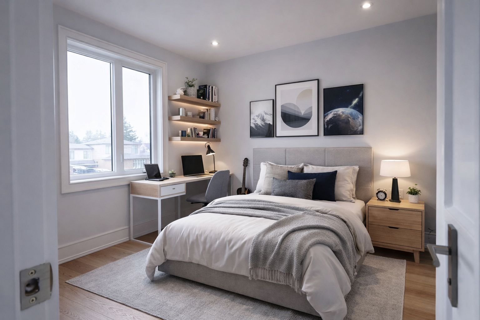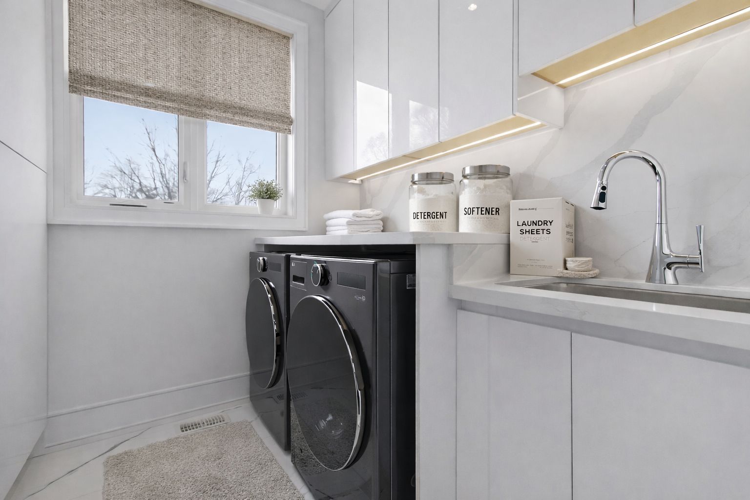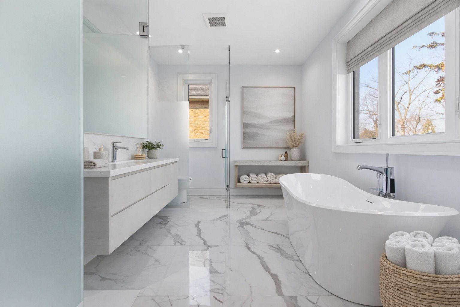• Bright open-concept layout with high ceilings and large windows.