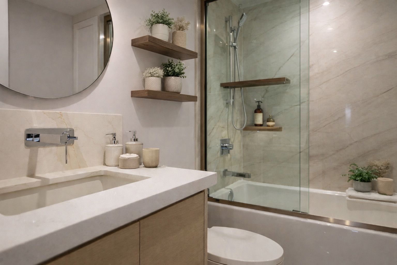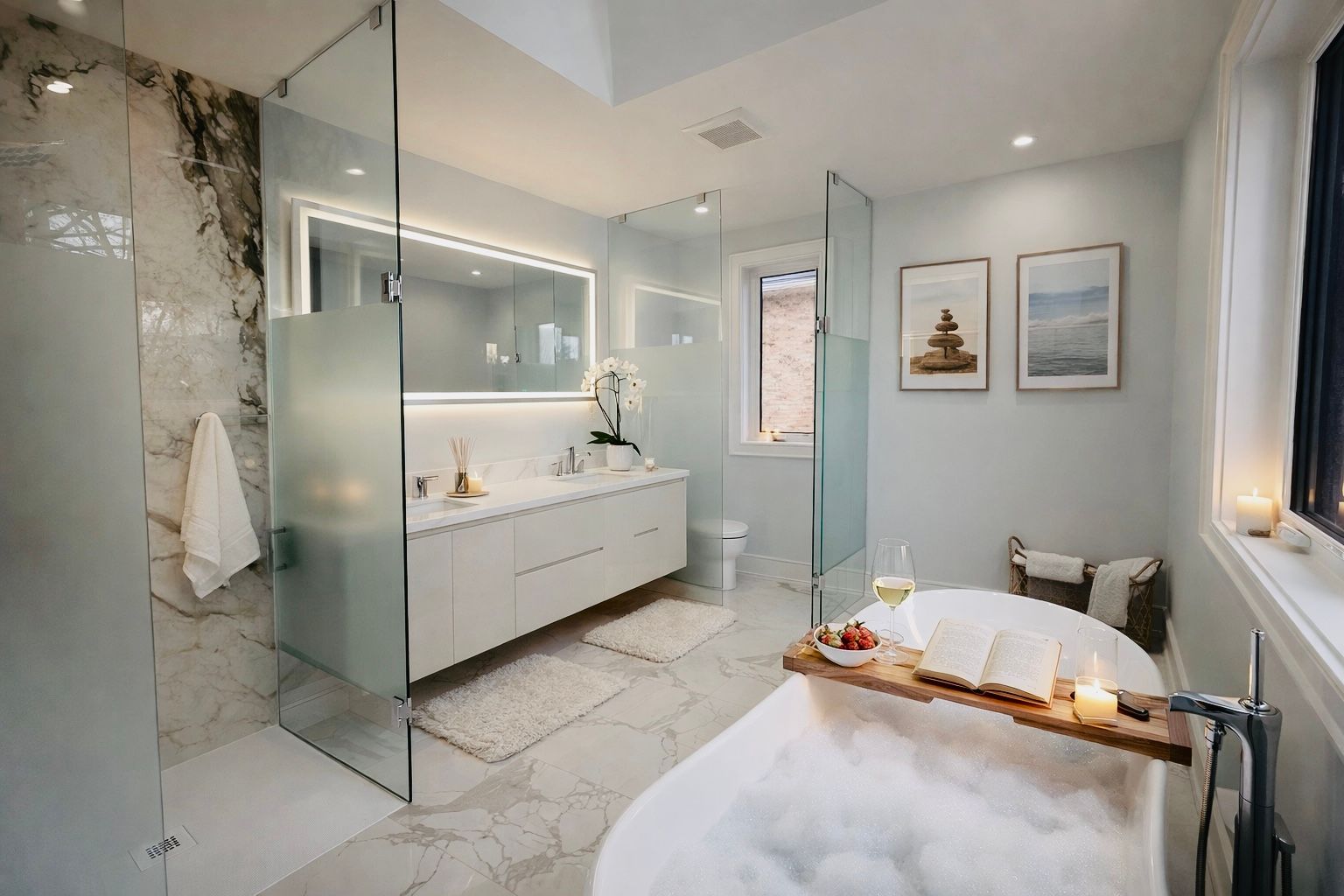 • Four spacious bedrooms and six stylishly designed bathrooms.