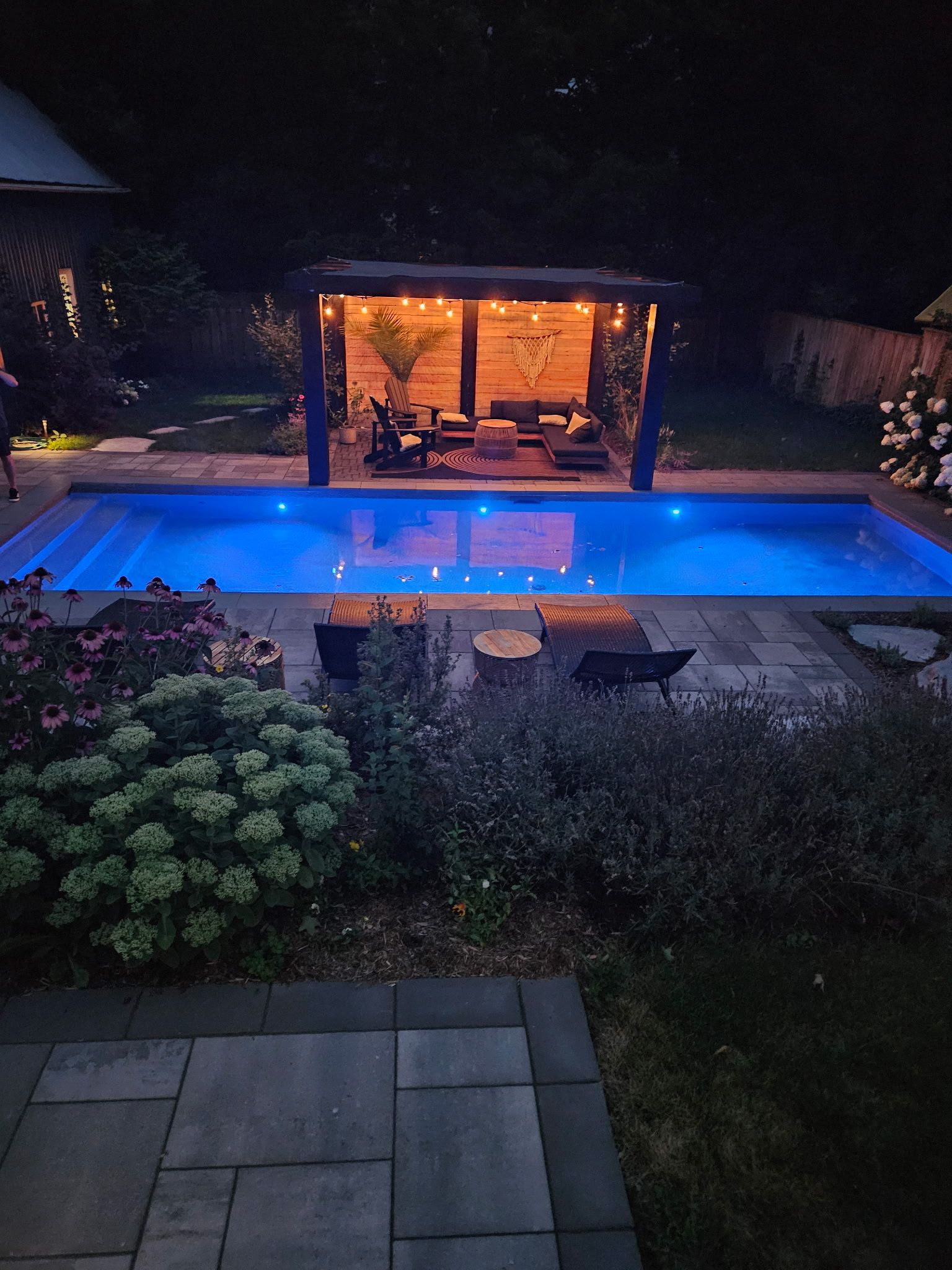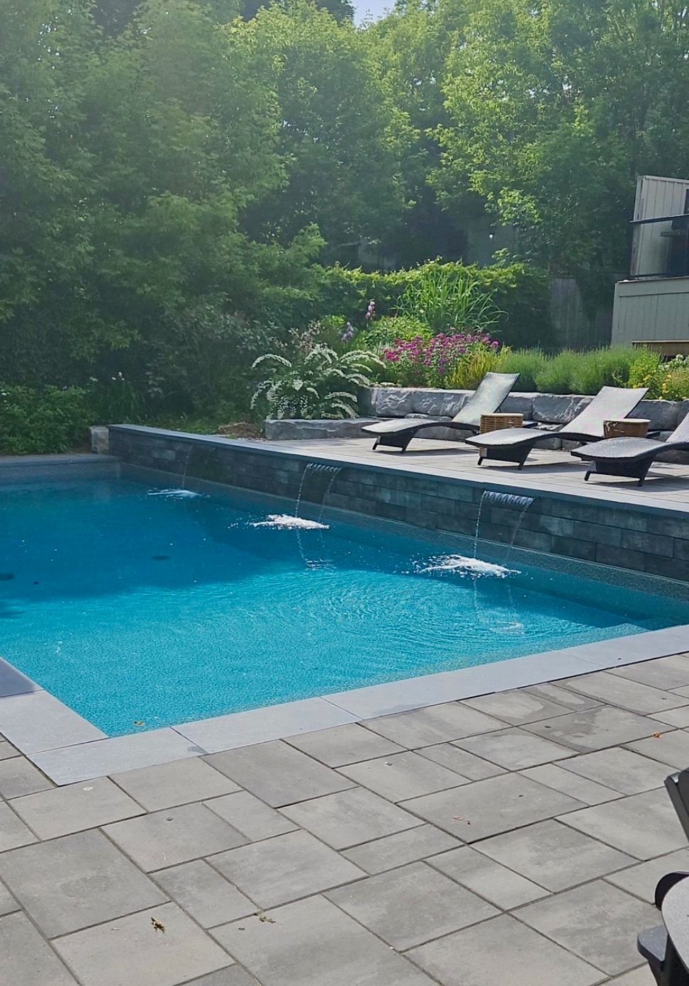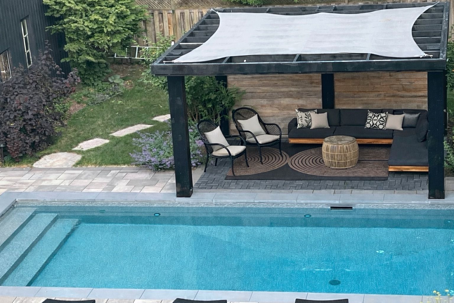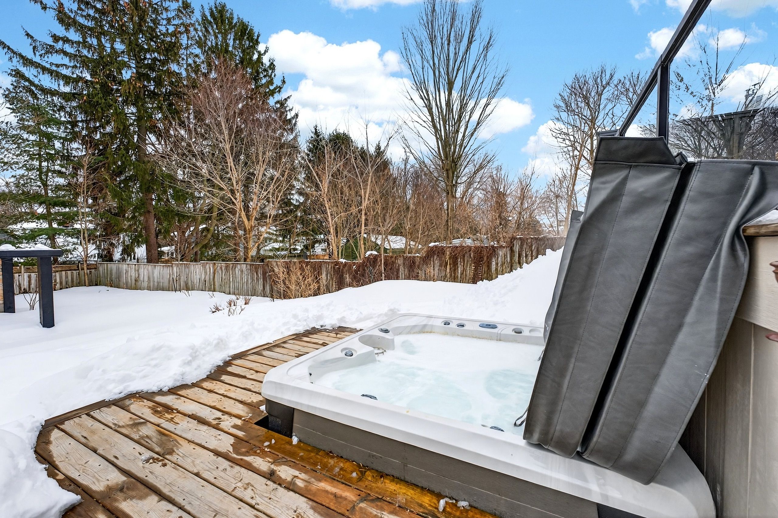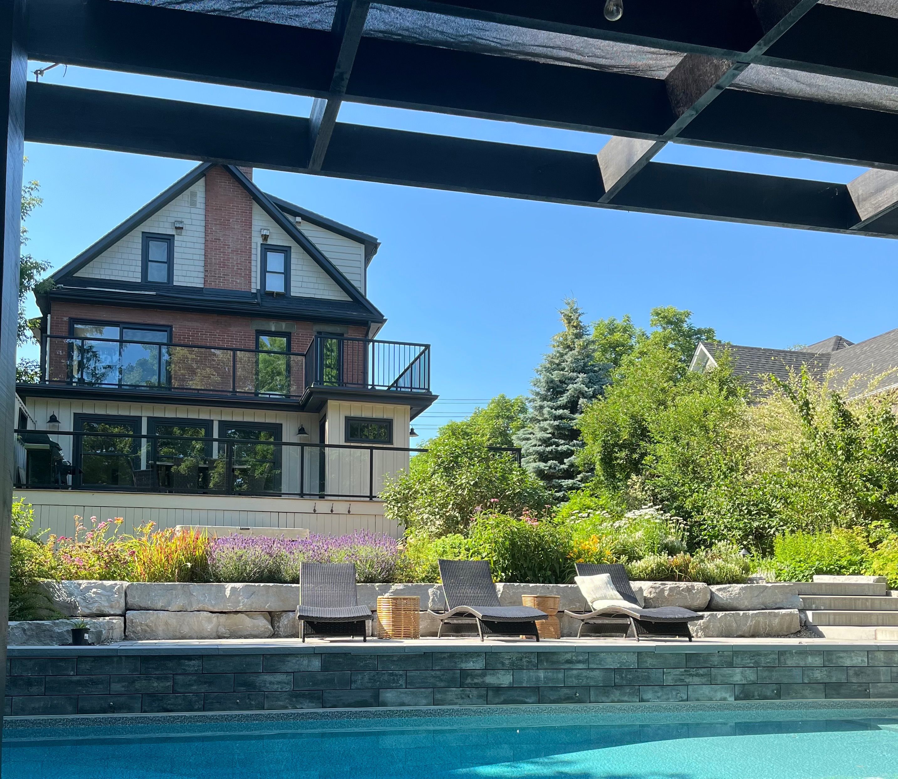 • Stunning backyard features an in-ground pool, hot tub, and beautiful landscaped terraces.