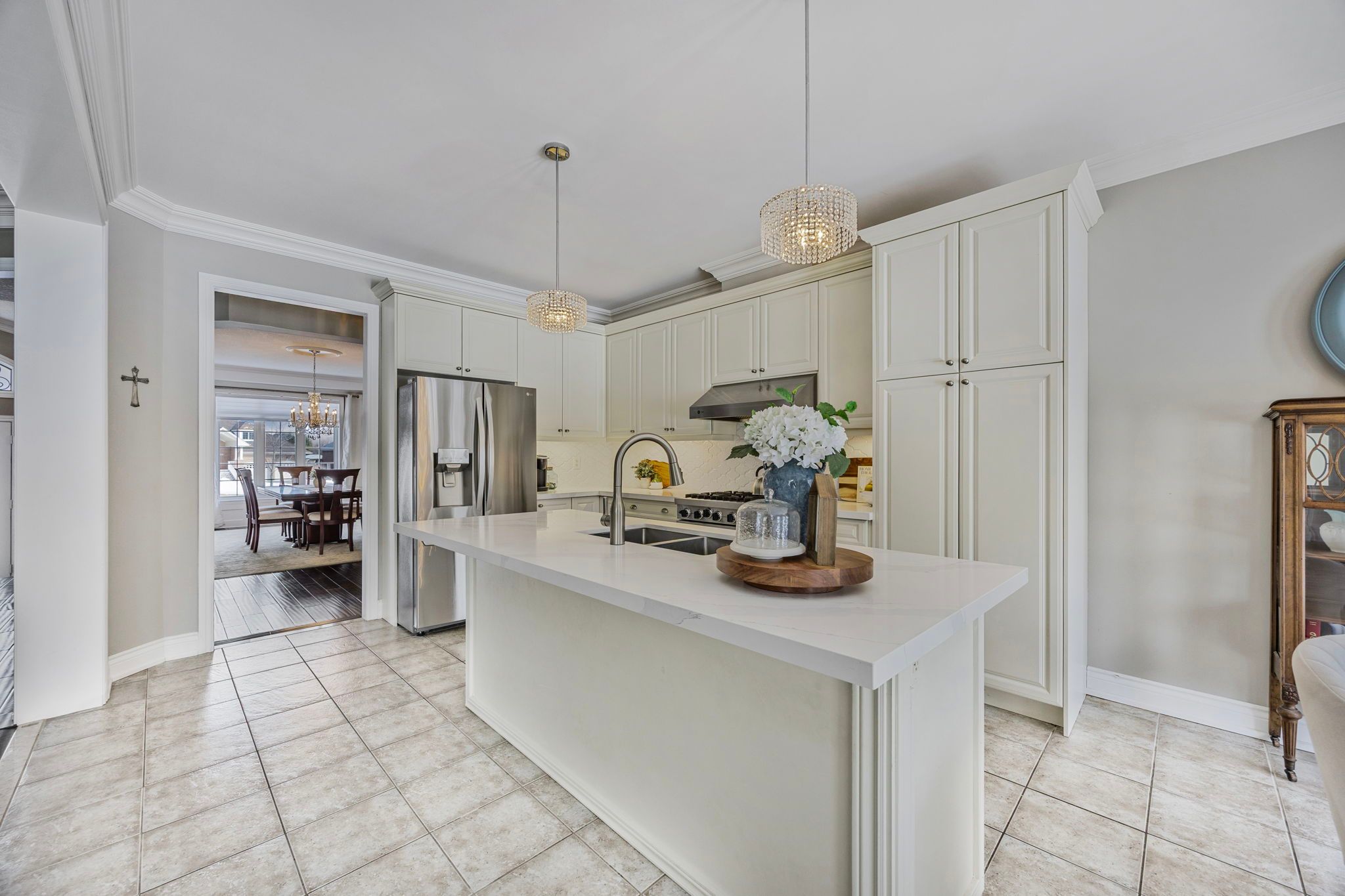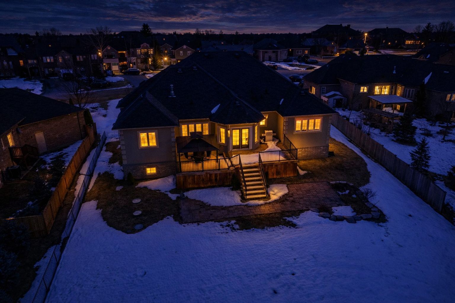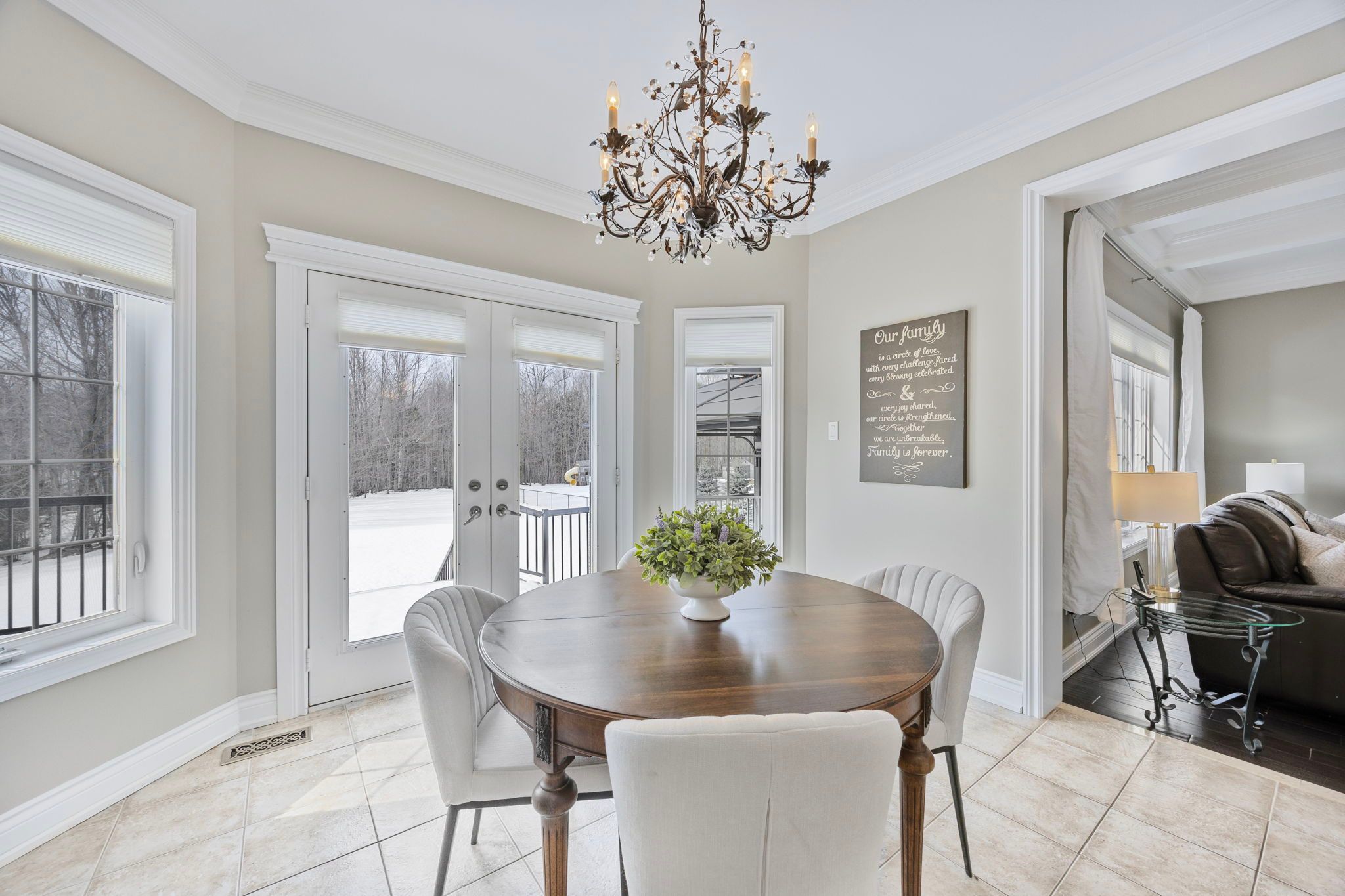 Step into this impressive raised bungalow in wasaga beach's prestigious wasaga sands estates, set on a rare ravine lot surrounded by expansive estate properties. Offering over 2,500 sq ft on the main floor, this remarkable residence boasts incredible curb appeal, dual entrances, and a massive driveway leading to a spacious three-car garage. The backyard is a private retreat featuring an oversized deck and patio with picturesque views of macintyre creek and tranquil trails. Inside, you'll find refined details such as wainscoting, hardwood floors, and 8-inch cornice moldings. The family room is enhanced by a beautiful coffered ceiling and fireplace, while the kitchen shines with quartz countertops and a premium viking stove. The open-concept layout flows effortlessly to the backyard, perfect for entertaining. The primary suite is complemented by three additional bedrooms, one of which serves as a versatile space ideal for an office, or nursery. A practical mudroom offers easy access to the garage and second entrance. With 9' ceilings throughout, ample natural light, and an unfinished basement featuring 10' ceilings and a bathroom rough-in, this home presents endless opportunities. Enjoy peaceful living just minutes from shops, restaurants, the beach and blue mountain resort. 9ft ceilings on main, hardwood floors, newer carpet in bedrooms, mud room with man door to garage & to front entrance, elegant wainscotting throughout, walk in pantry, coffered ceilings, 8" cornice molding, 10ft ceilings in bsmt & above grade windows, quartz counters, double deck, backing onto macintyre creek +trails.