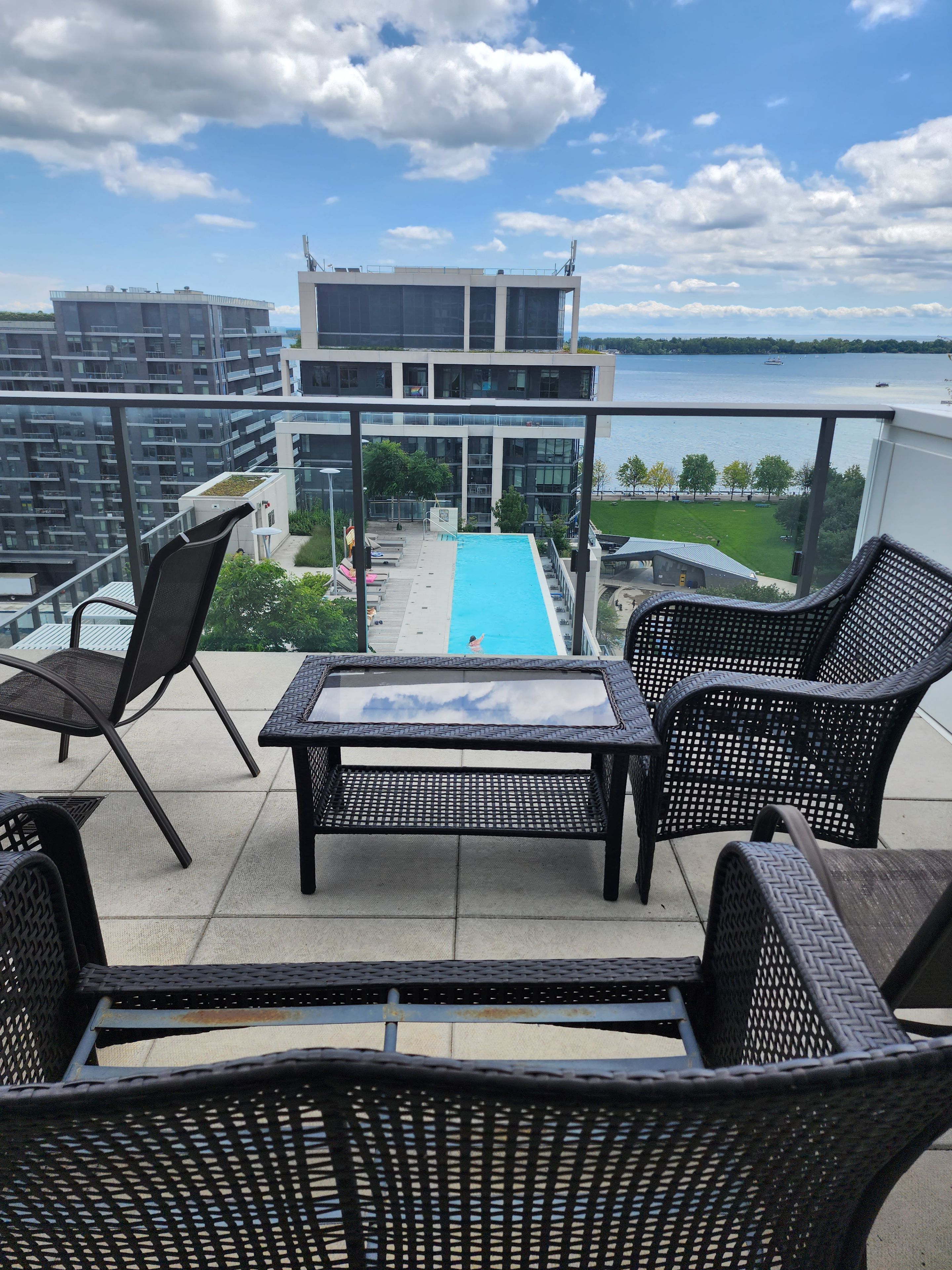 An elegance, comfort, right to the waterfront and moments from the sugar beach. Exceptional, stunning and relaxing view on swimming pool and to the lakefront, all year round resort living, enjoy the convenience of being steps away from sky dom, ripley's aquarium, cn tower, toronto harbour front area, grocery stores, the city's best restaurants, centeral island, and transit options. Next to the boardwalk, trails, and ferry terminal for those weekend adventures. This beautifully furnished executive rental features two spacious bedrooms, one with its own ensuite bathroom. Large closets with orgnaizers, a powder room, and a stunningwaterfront terrace complete and side balcony make this unit perfect for enjoying sunset dinners or entertaining friends. The interior is designed with style and sophistication in mind, featuring high-end finishes and designer furniture throughout. The chefs kitchen boasts top-of-the-line stainless steel appliances and a breakfast bar. Make 1209 monde your new home and experience luxury living in a vibrant, dynamic community. **extras** fantastic building amenities include an outdoor pool, indoor hot tub, sauna, gym, party room, 24 hr concierge, visitor parking.