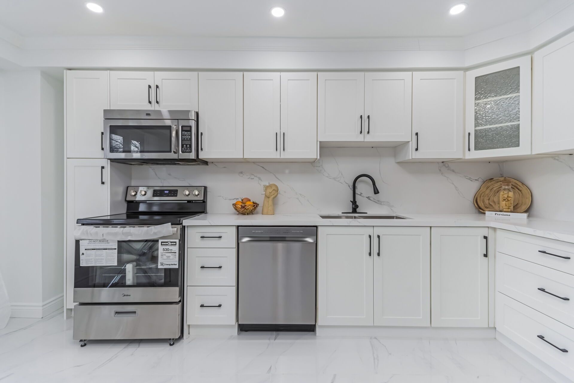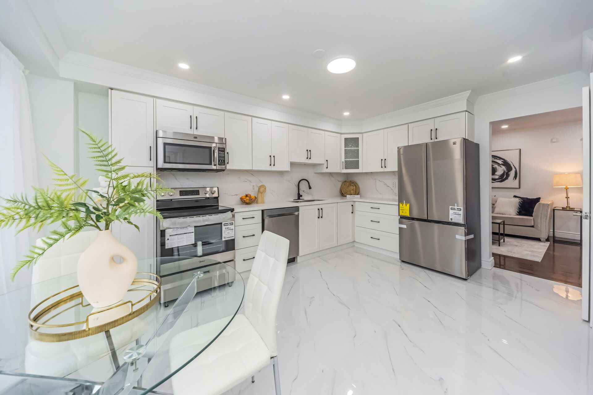 • Upgraded kitchen with quartz countertops and new stainless steel appliances.